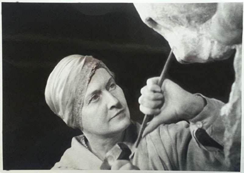 Anna Hyatt Huntington sculpting jaguars for The Bronx Zoo