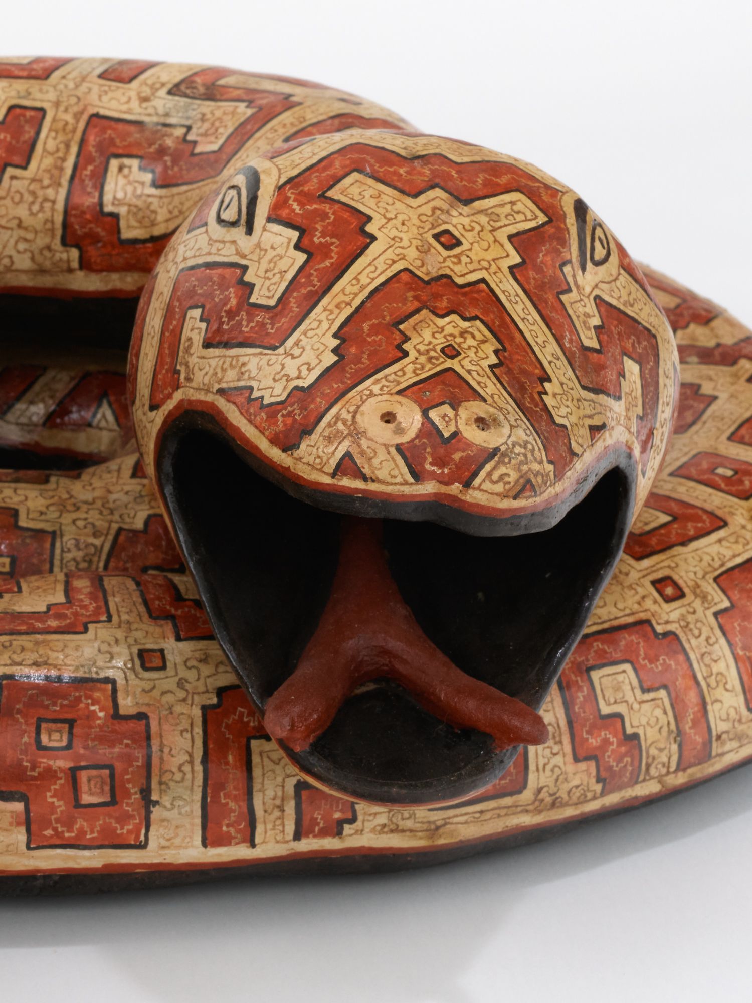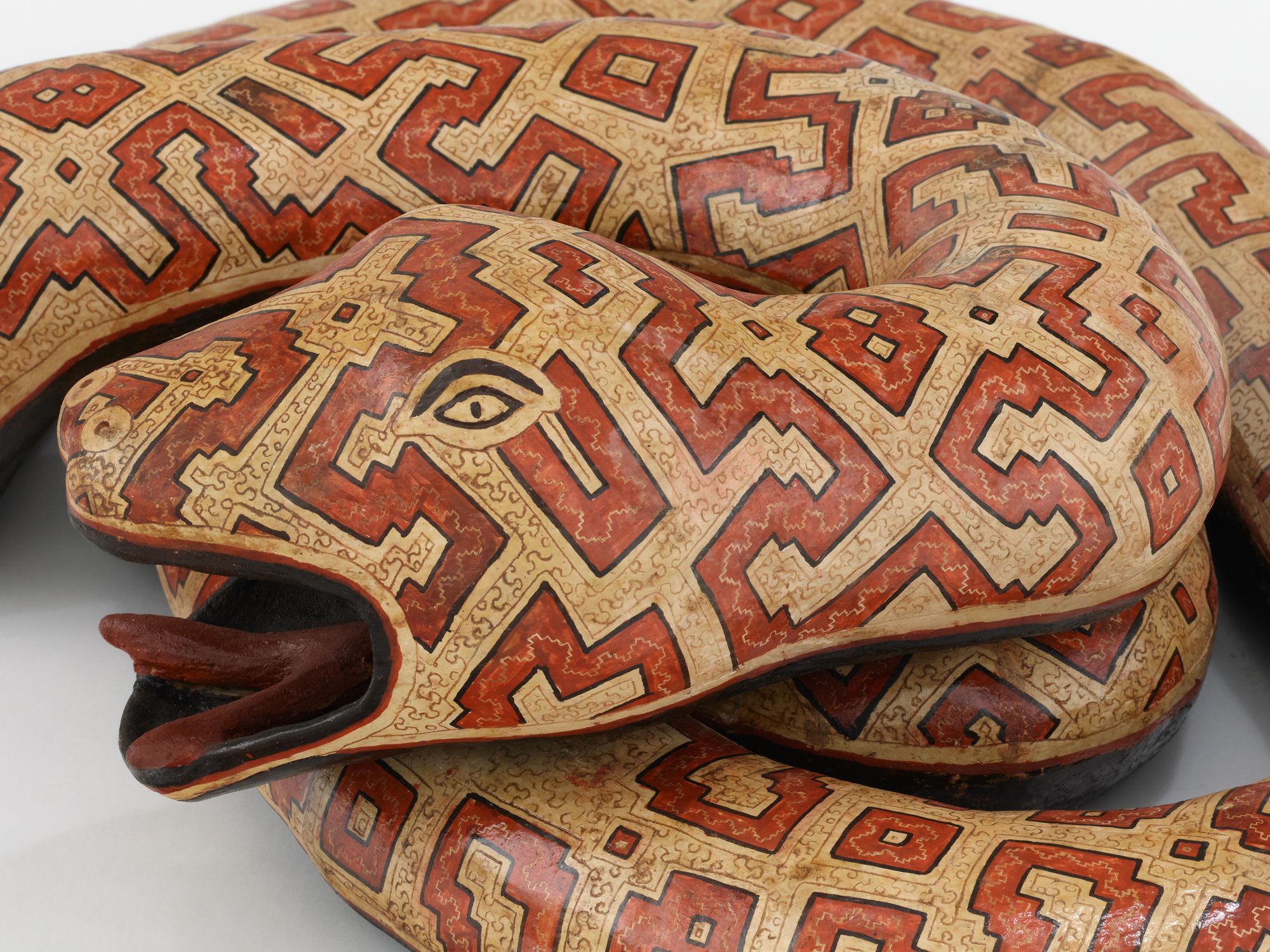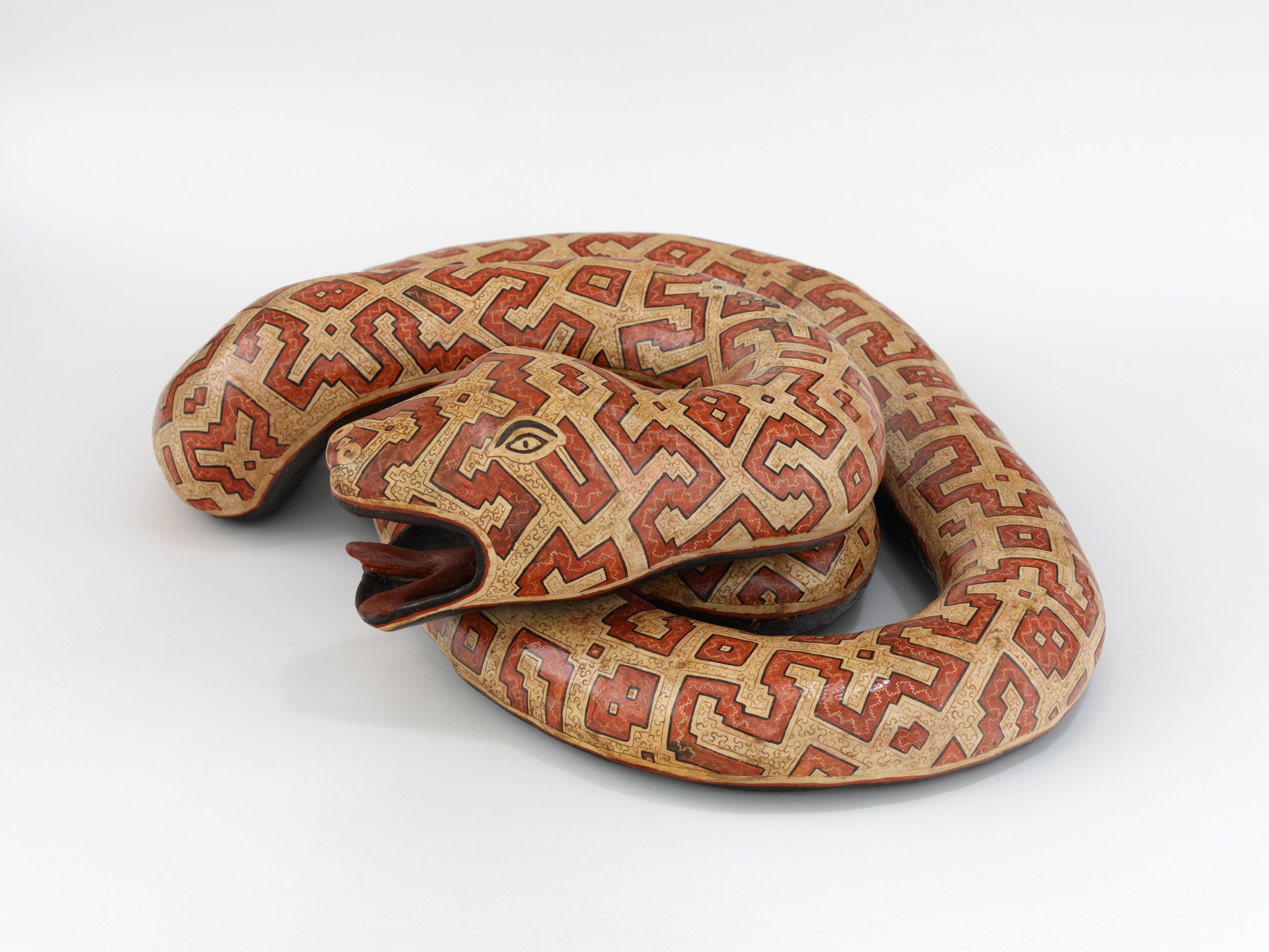 Coil-built pre-fire slip-painted clay and vegetal resins