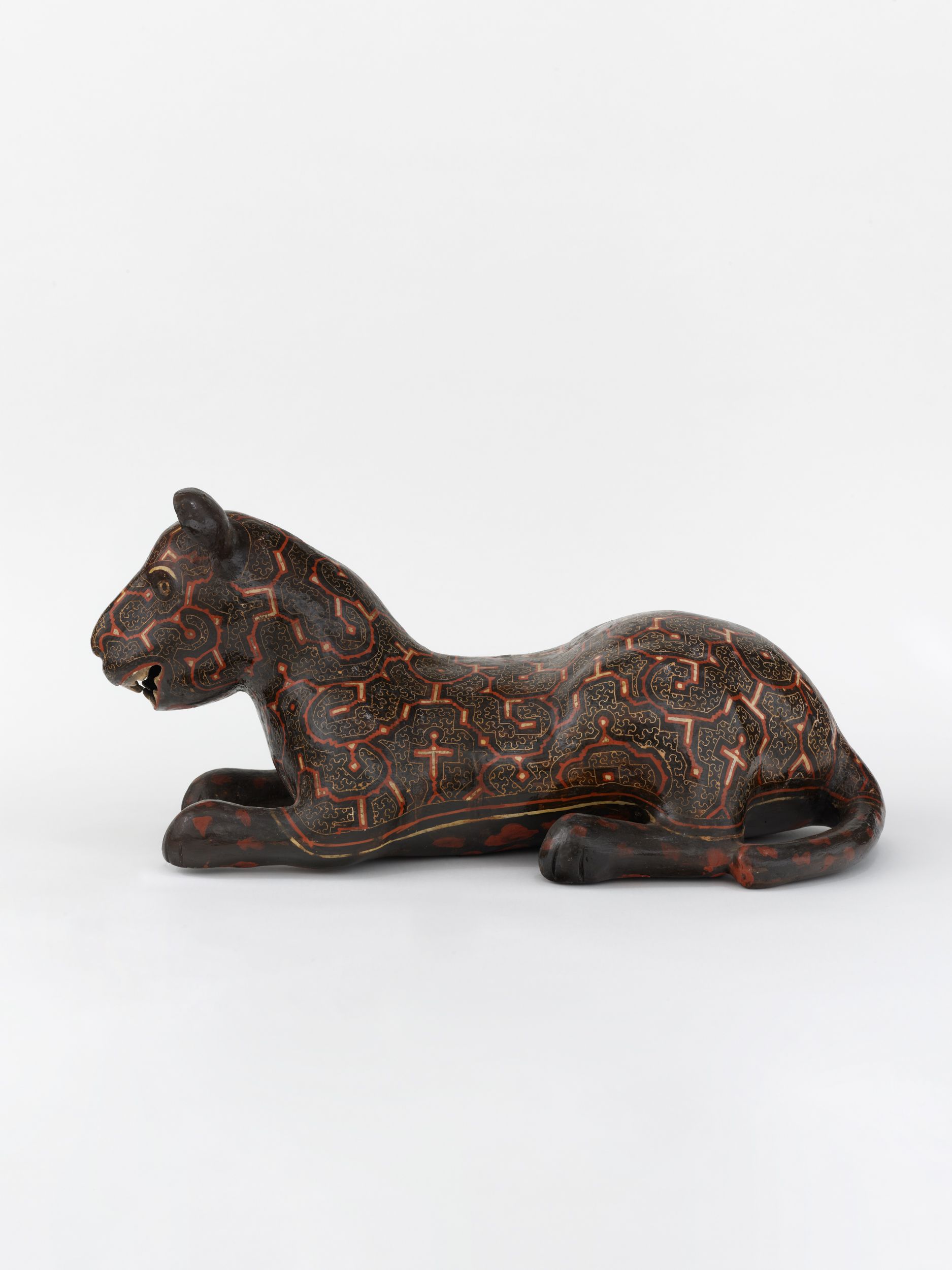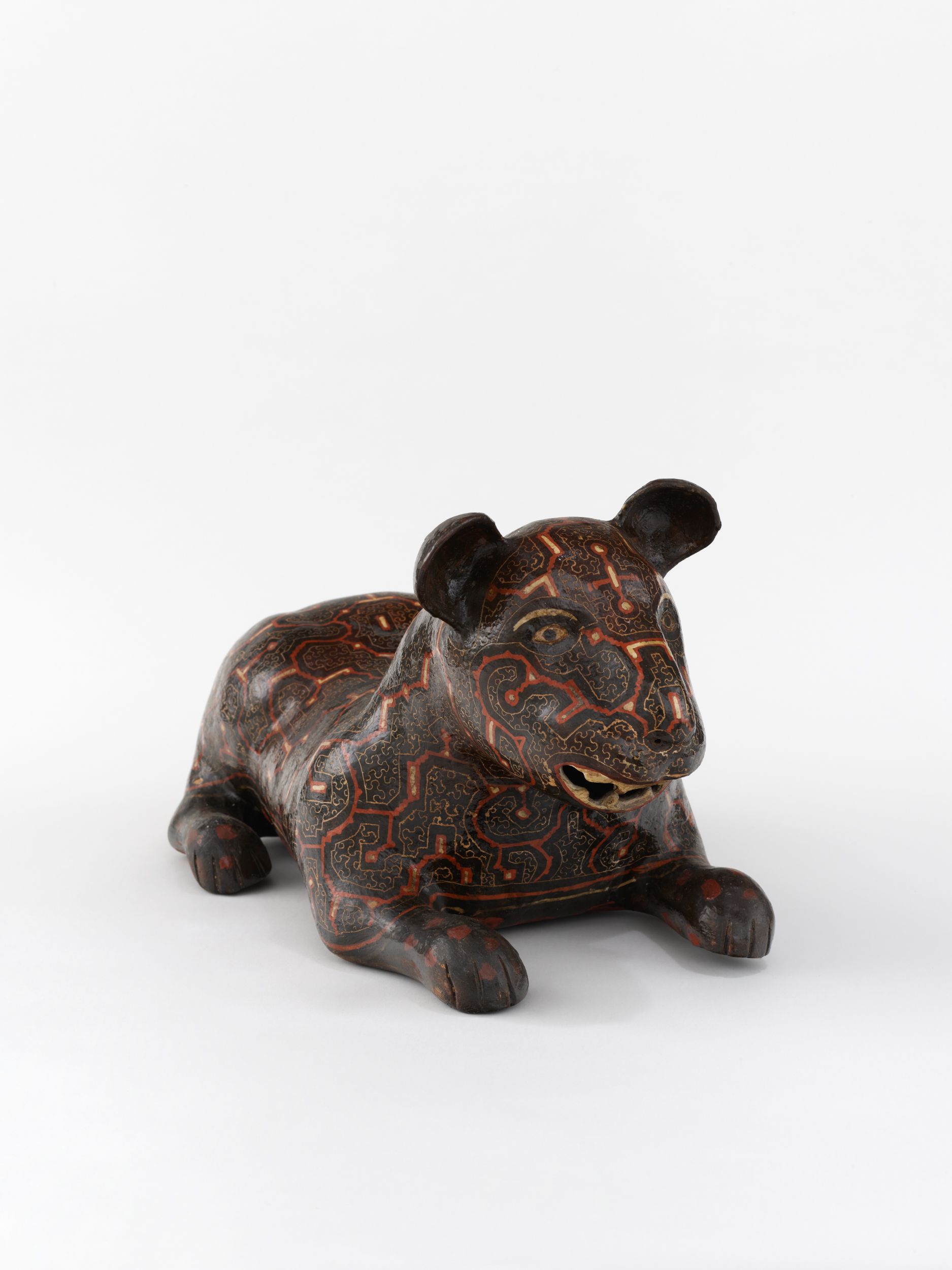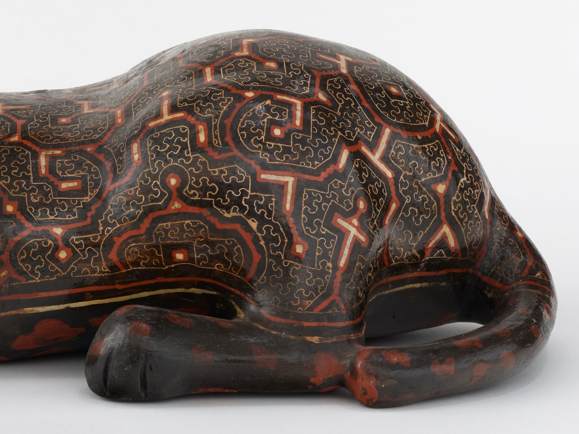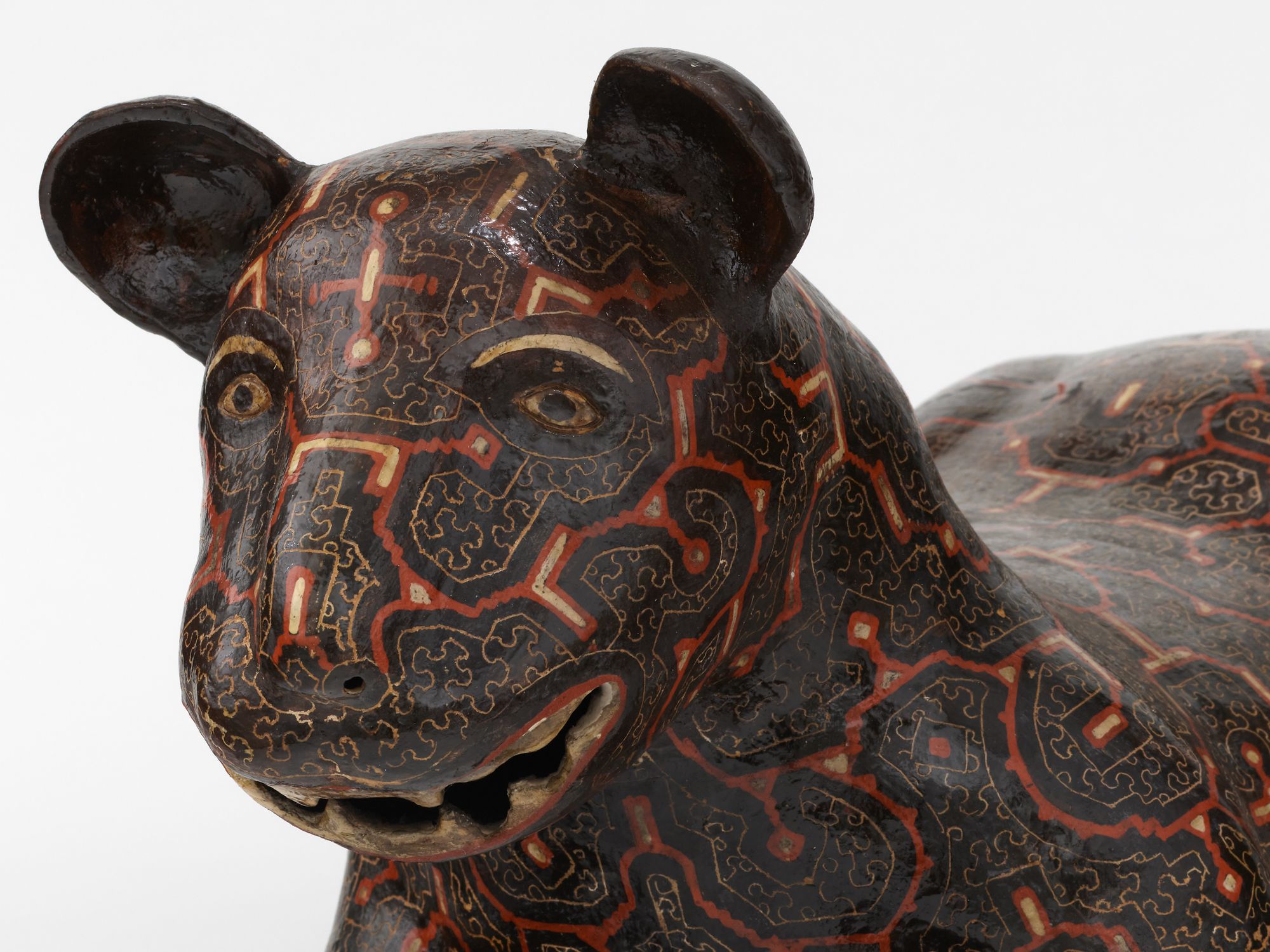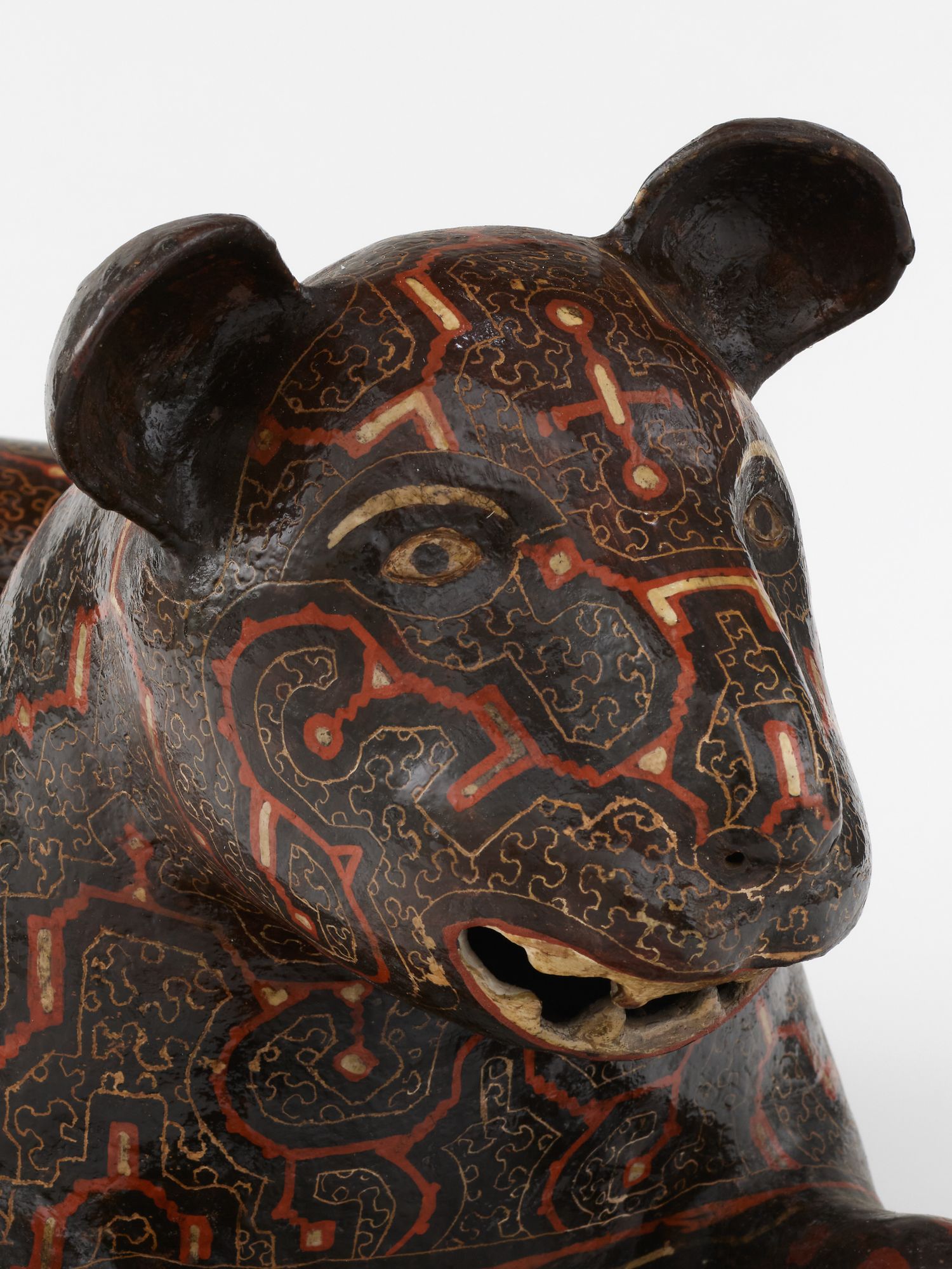 Coil-built pre-fire slip-painted clay and vegetal resins