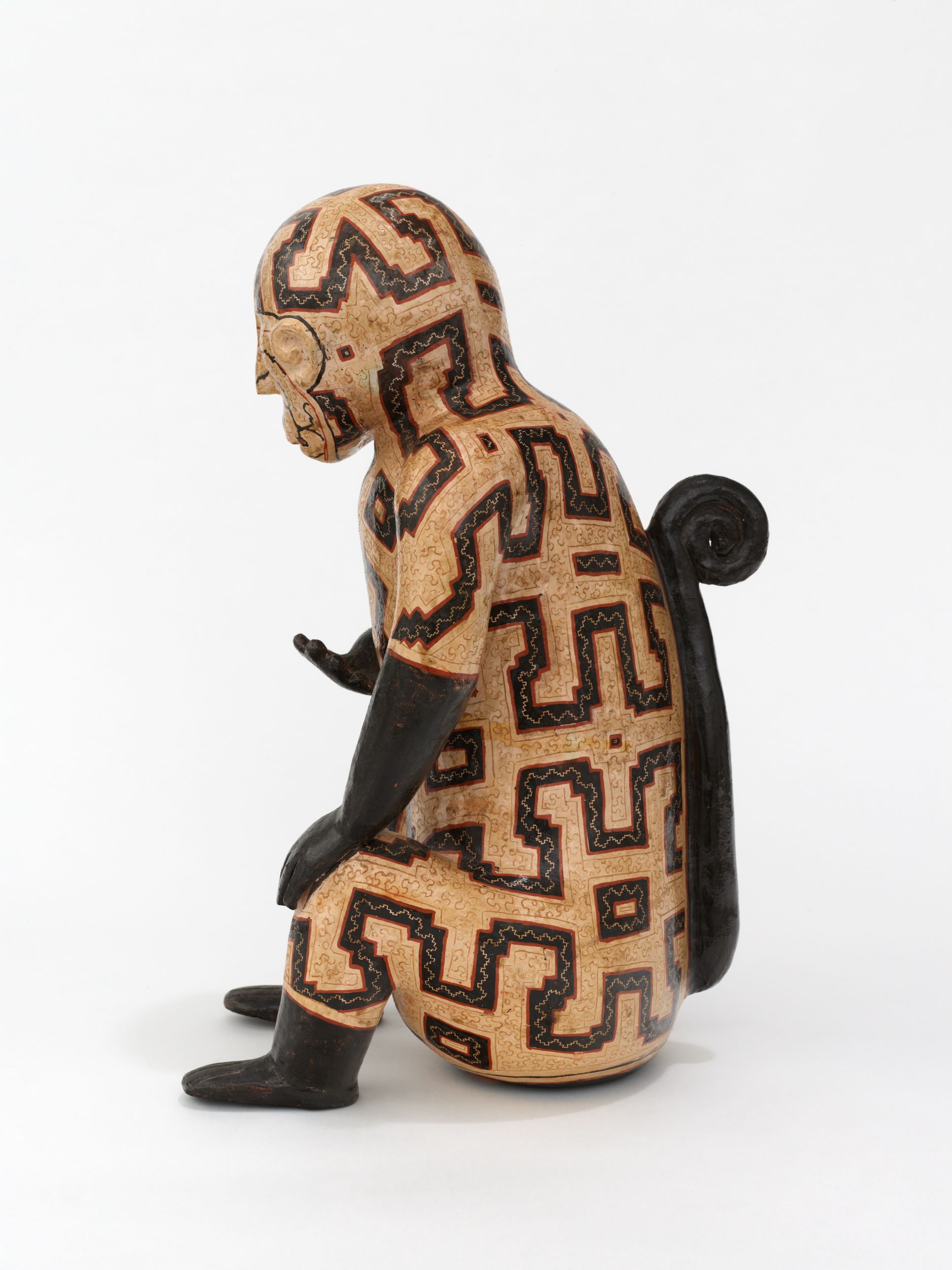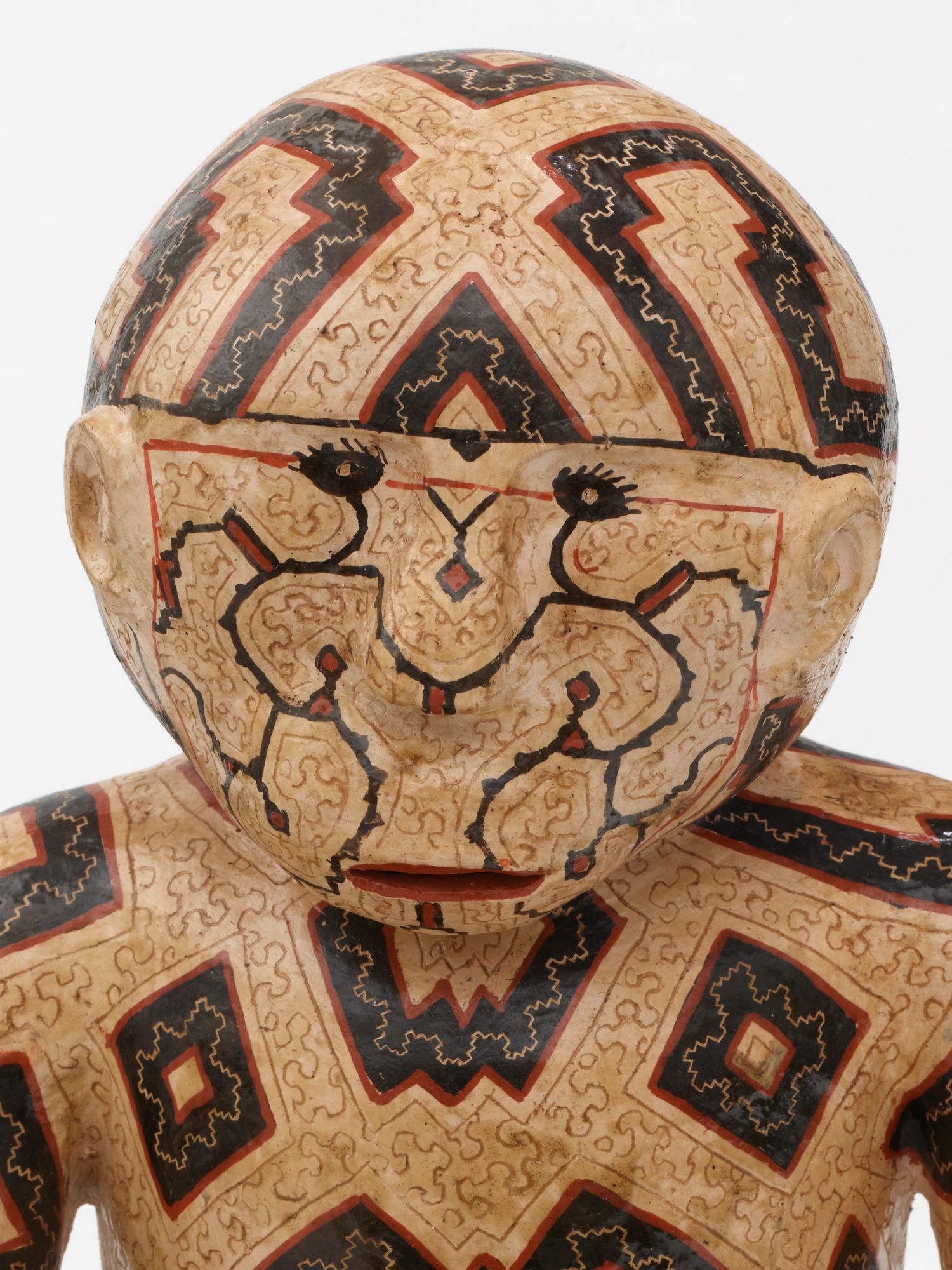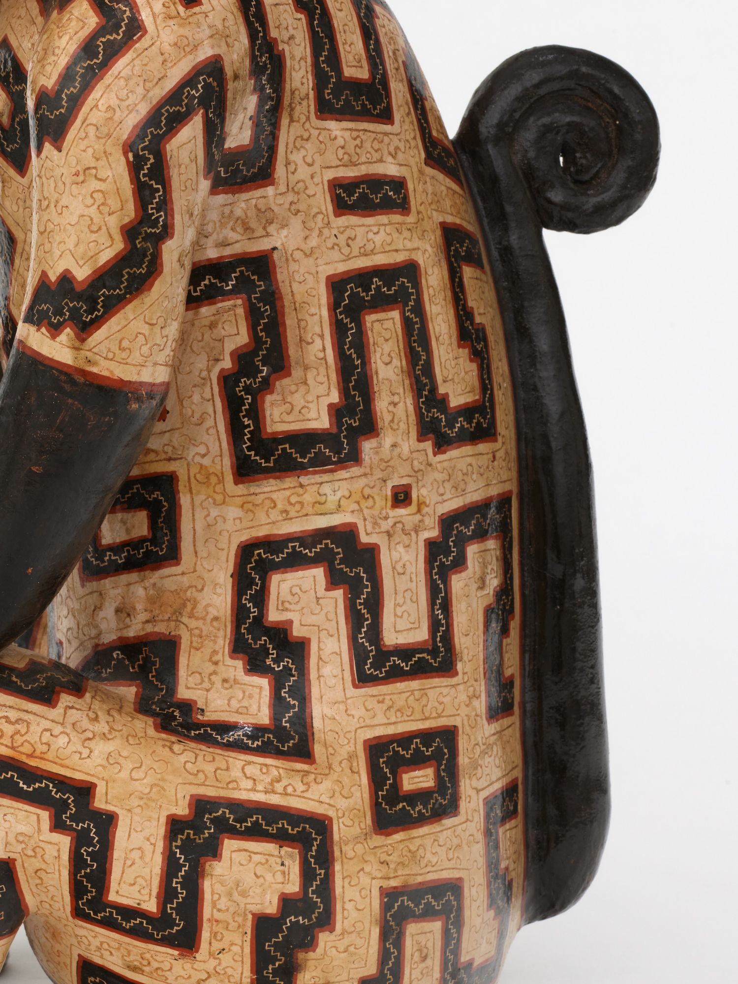 Coil-built pre-fire slip-painted clay and vegetal resins