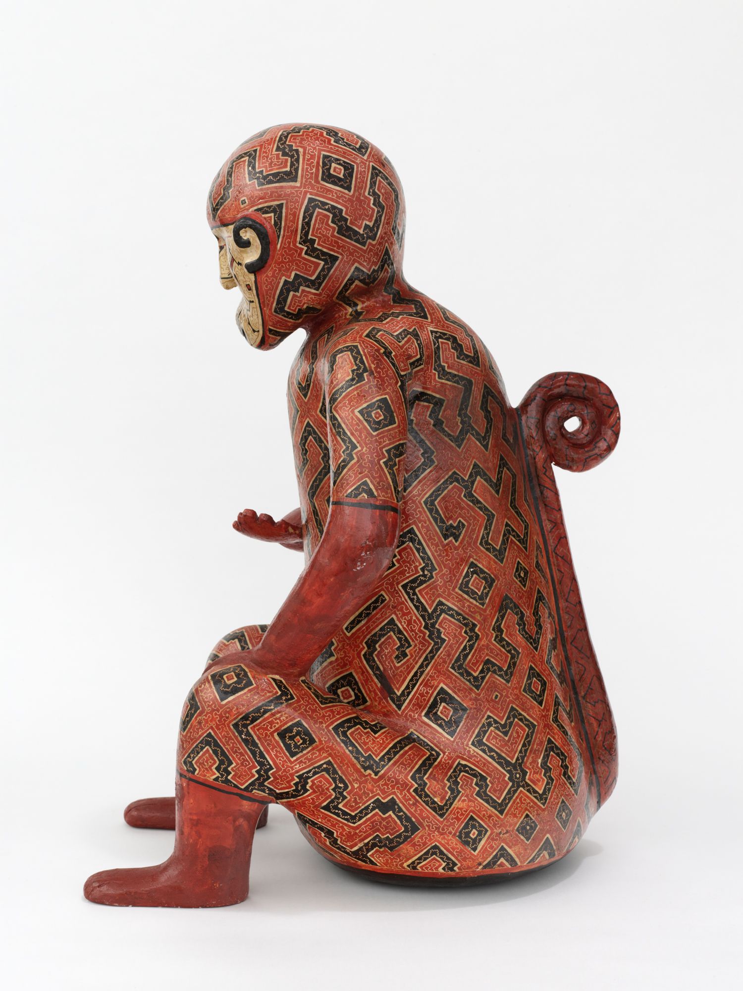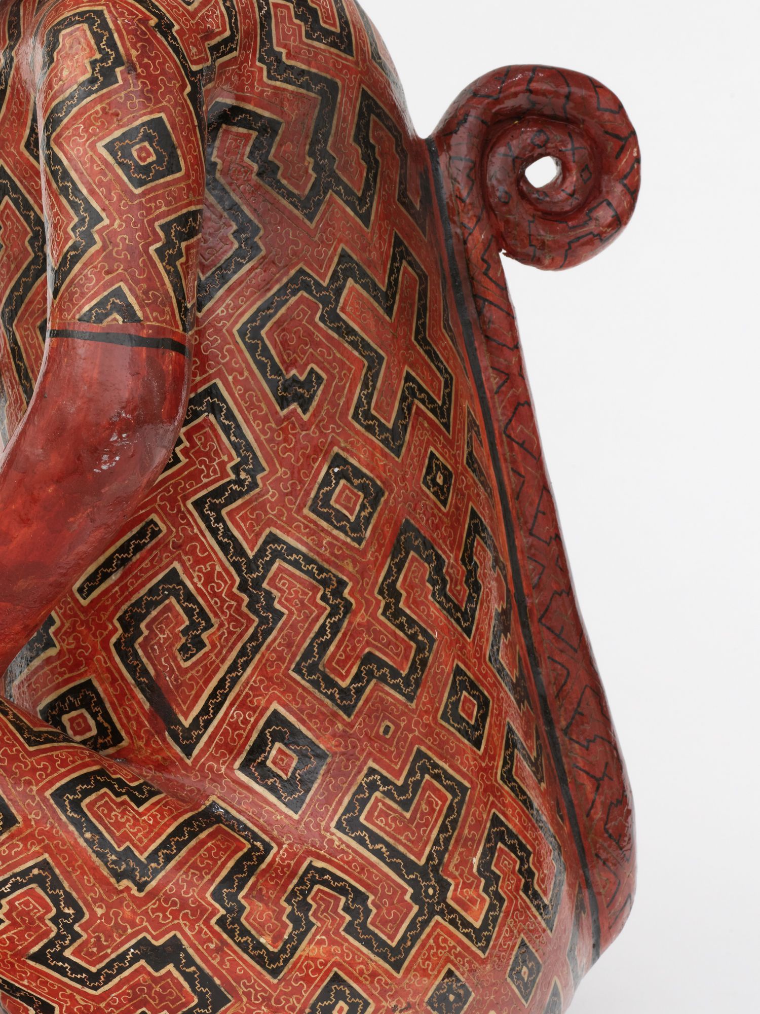 Coil-built pre-fire slip-painted clay and vegetal resins