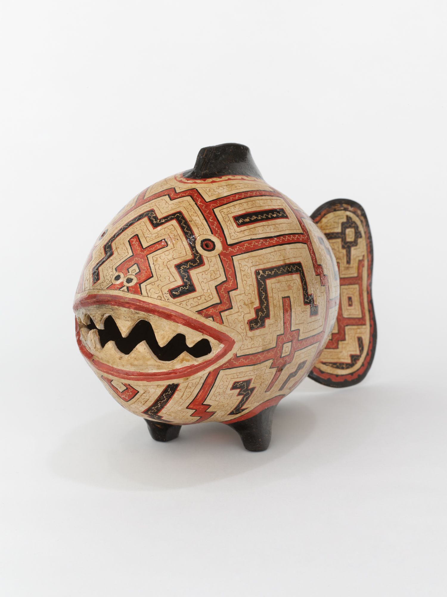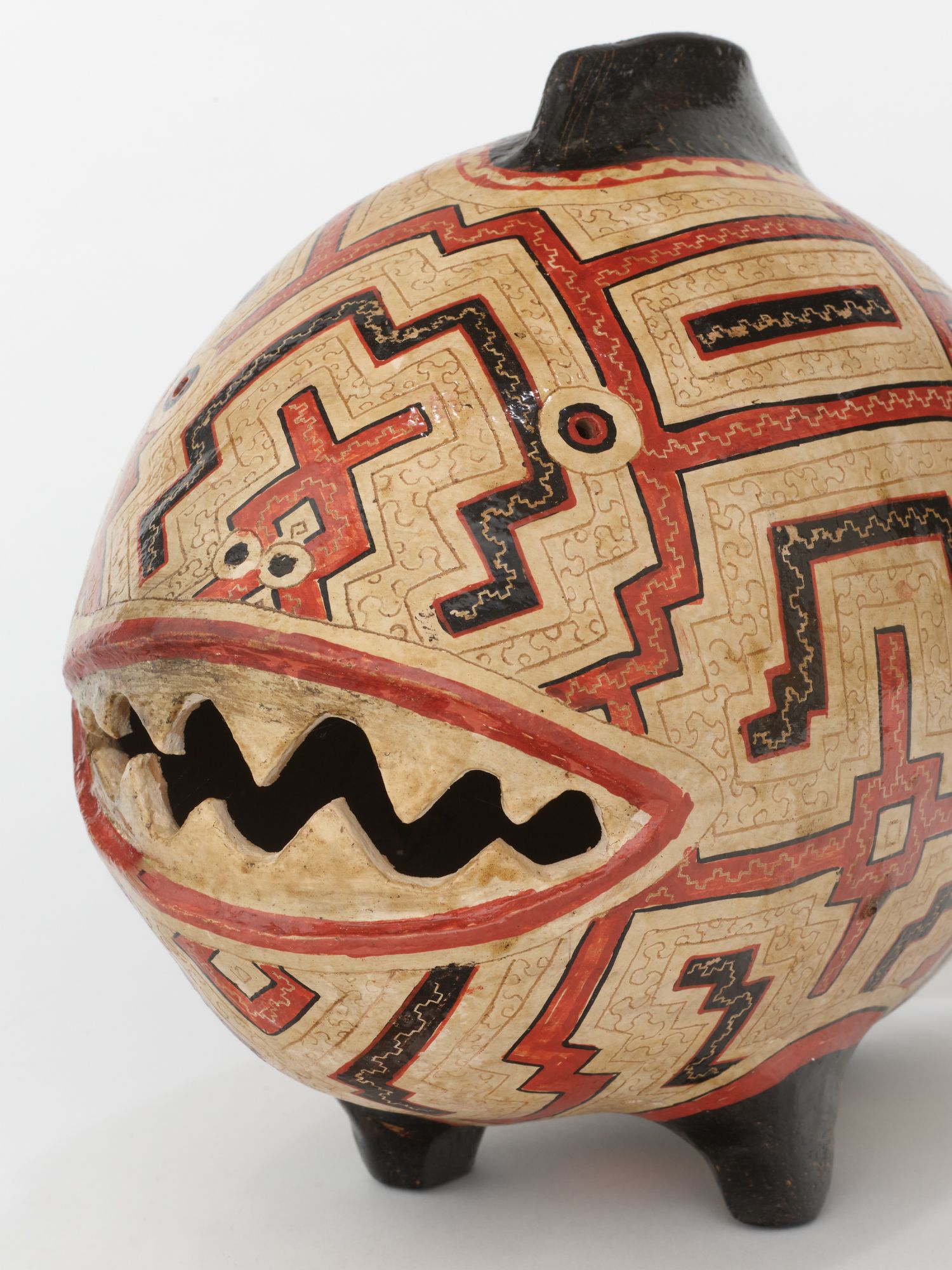 Coil-built pre-fire slip-painted clay and vegetal resins