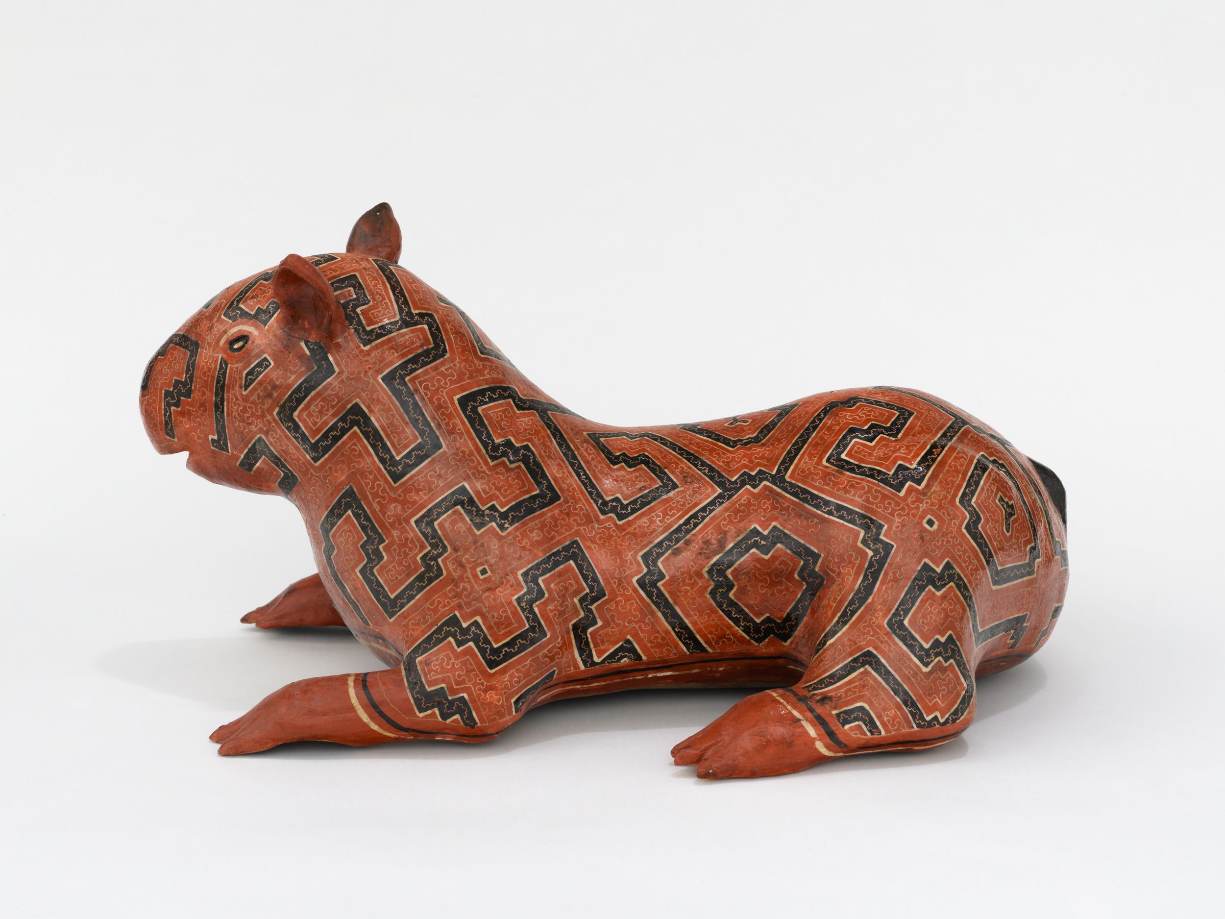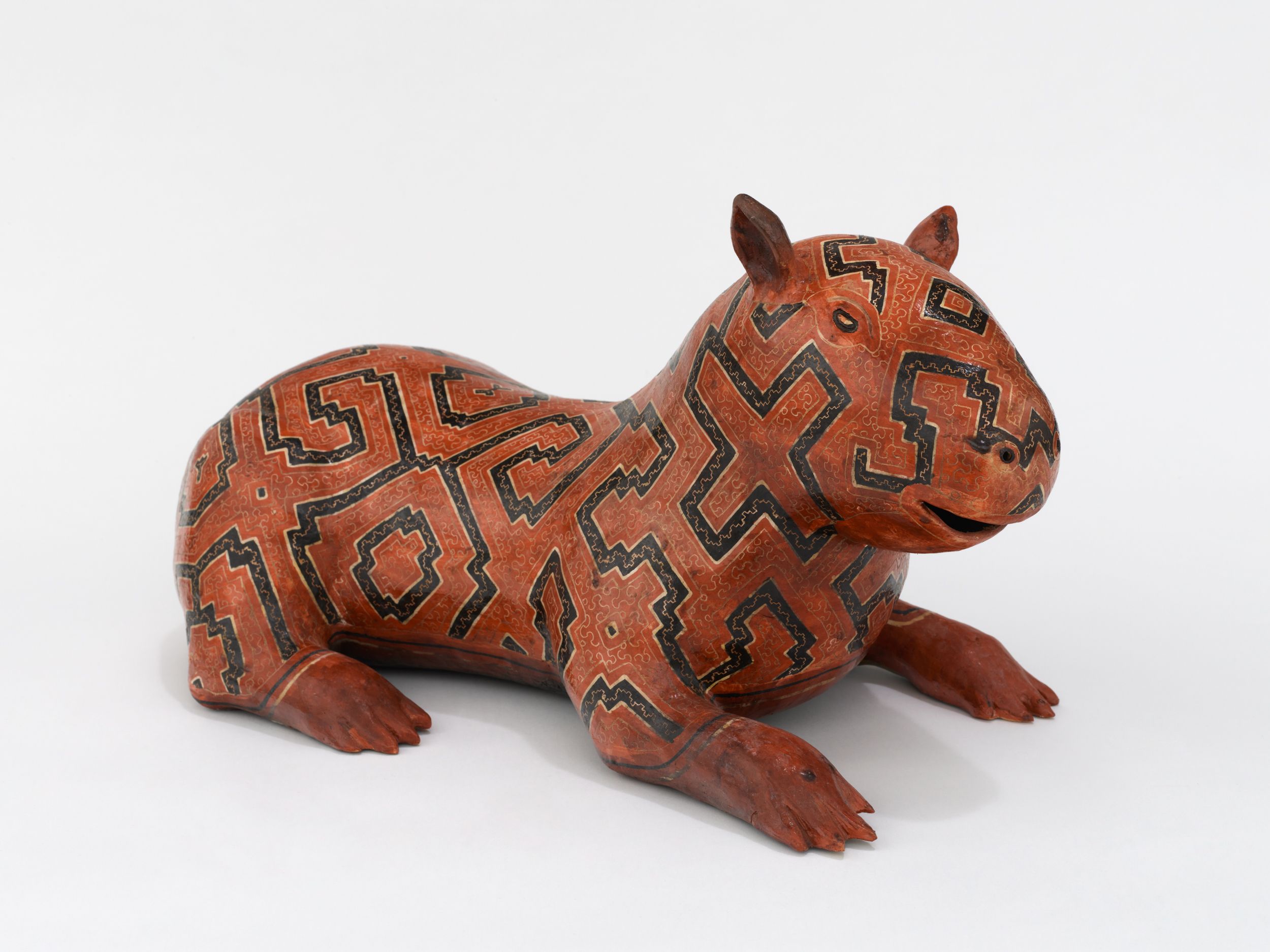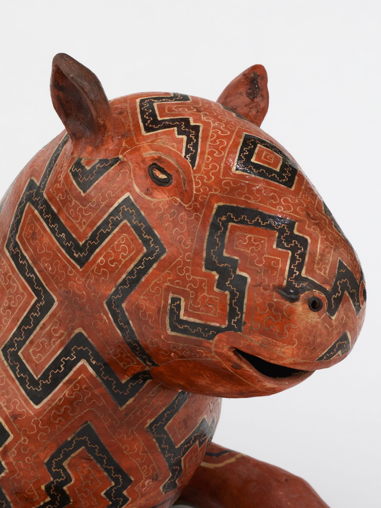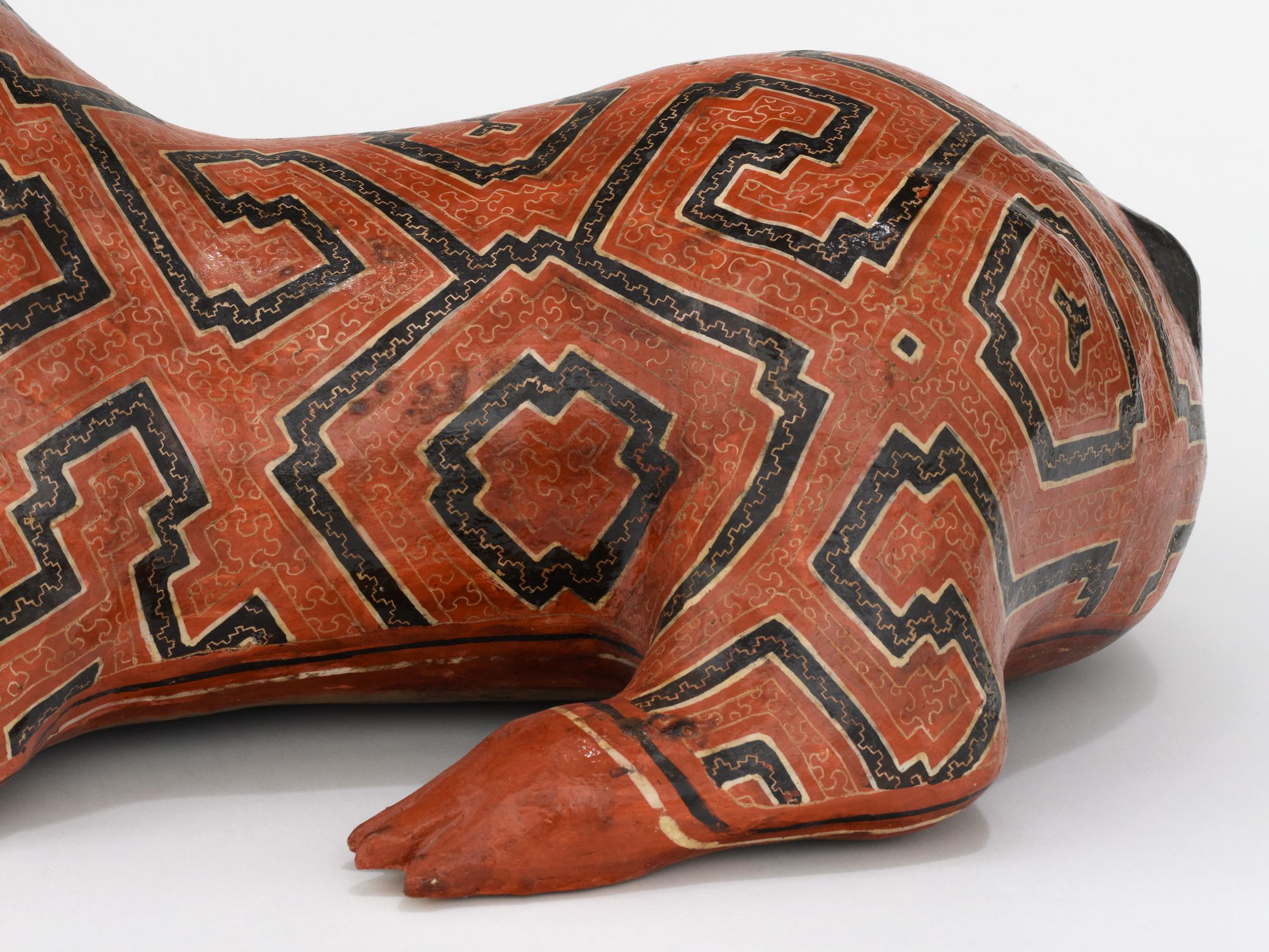 Coil-built pre-fire slip-painted clay and vegetal resins