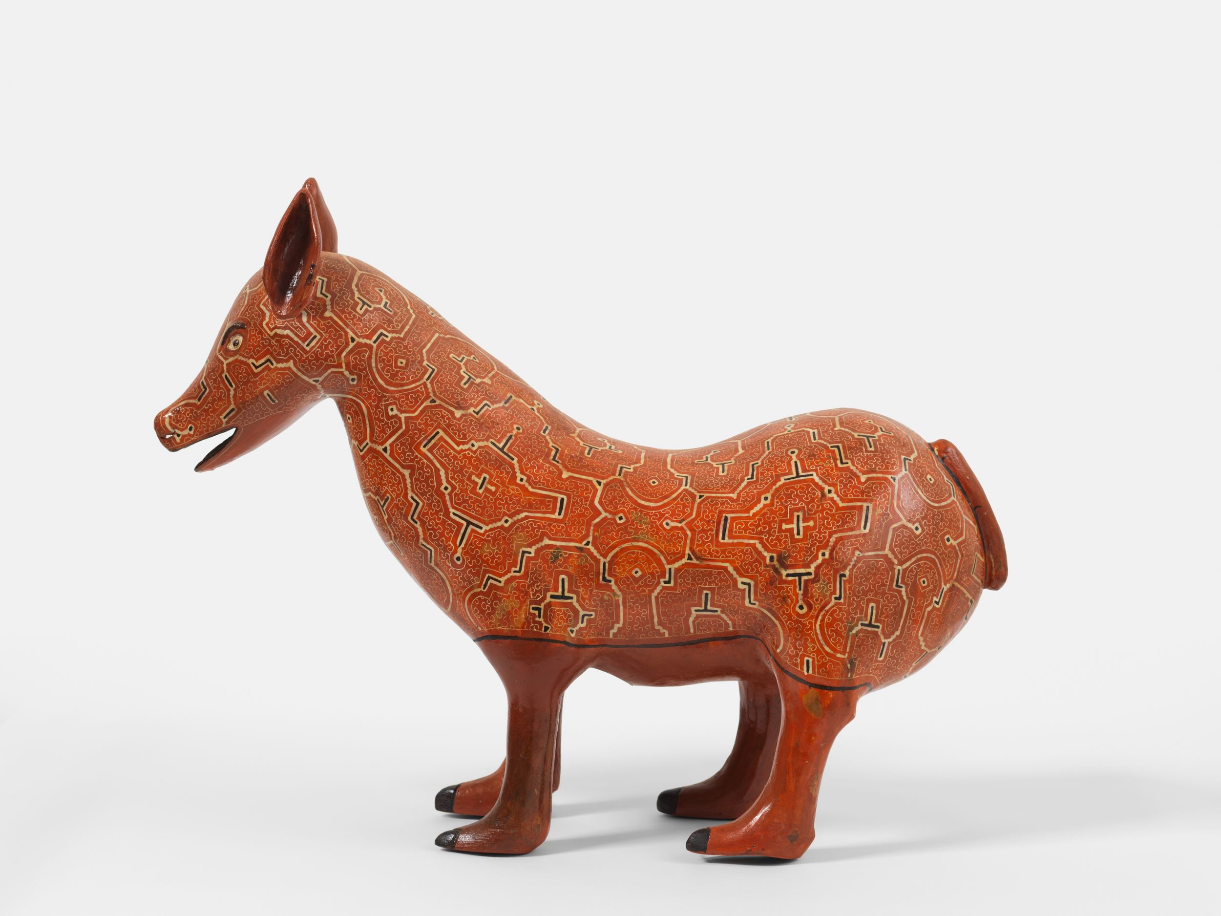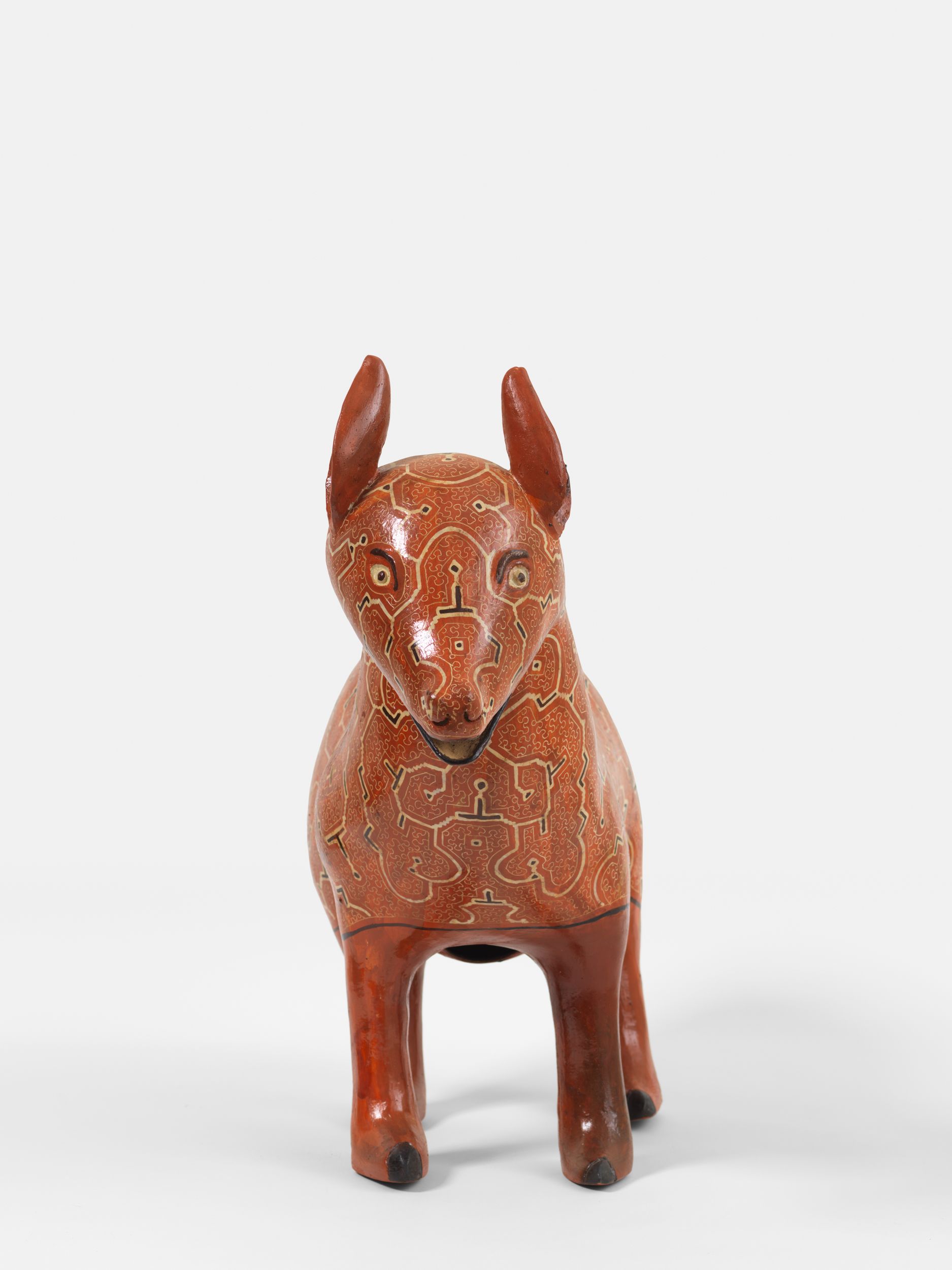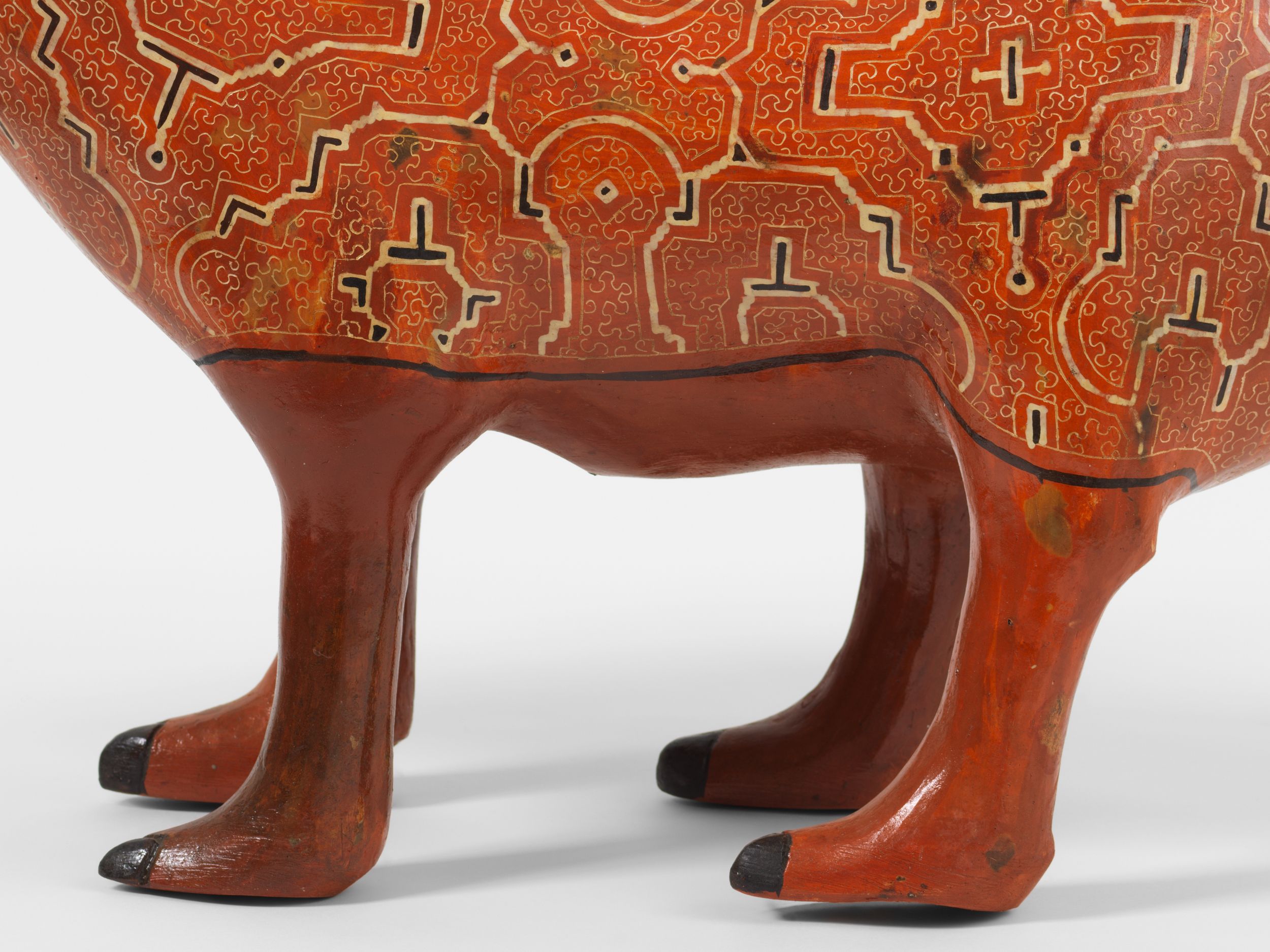Coil-built pre-fire slip-painted clay and vegetal resins
