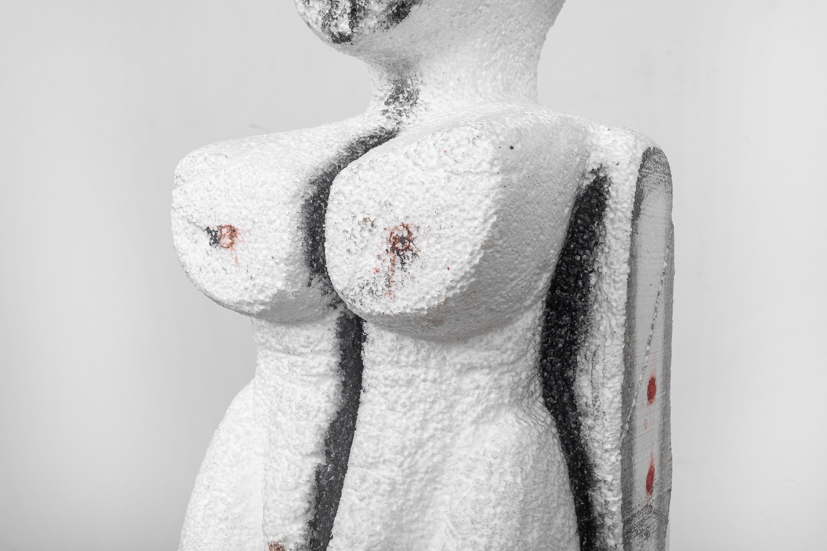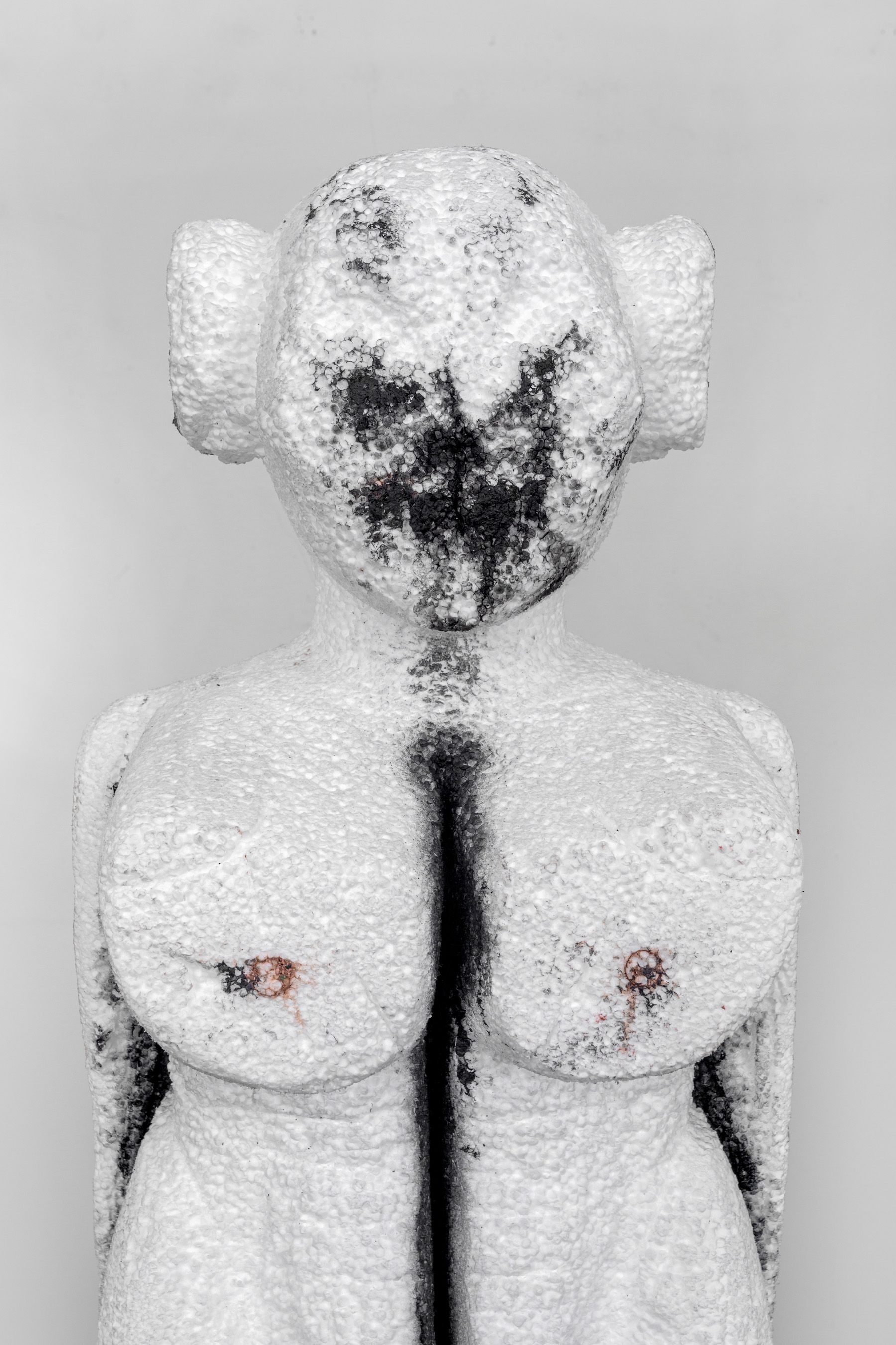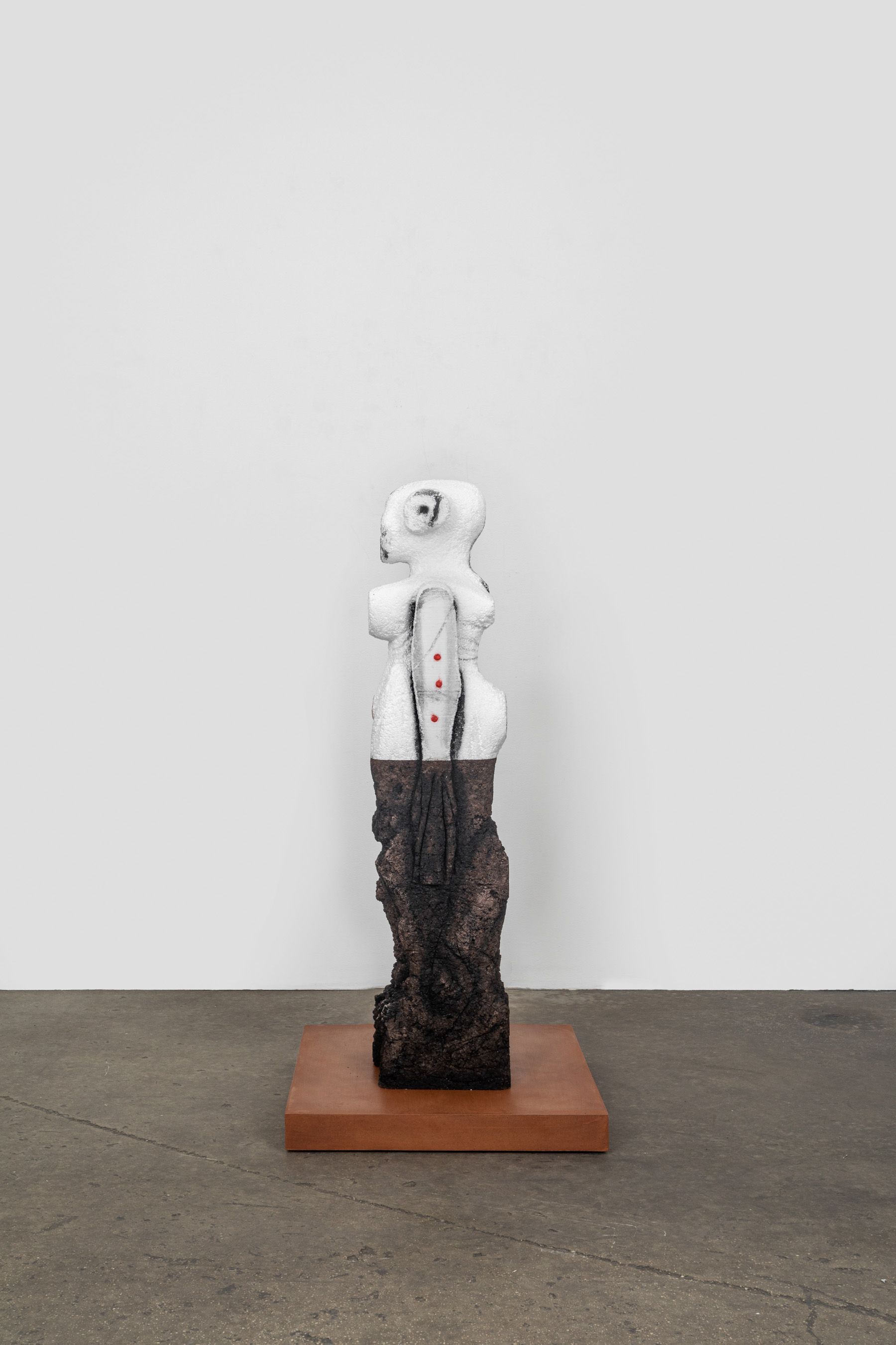 Cork, Styrofoam, acrylic, oil stick, lipstick, and clay dust