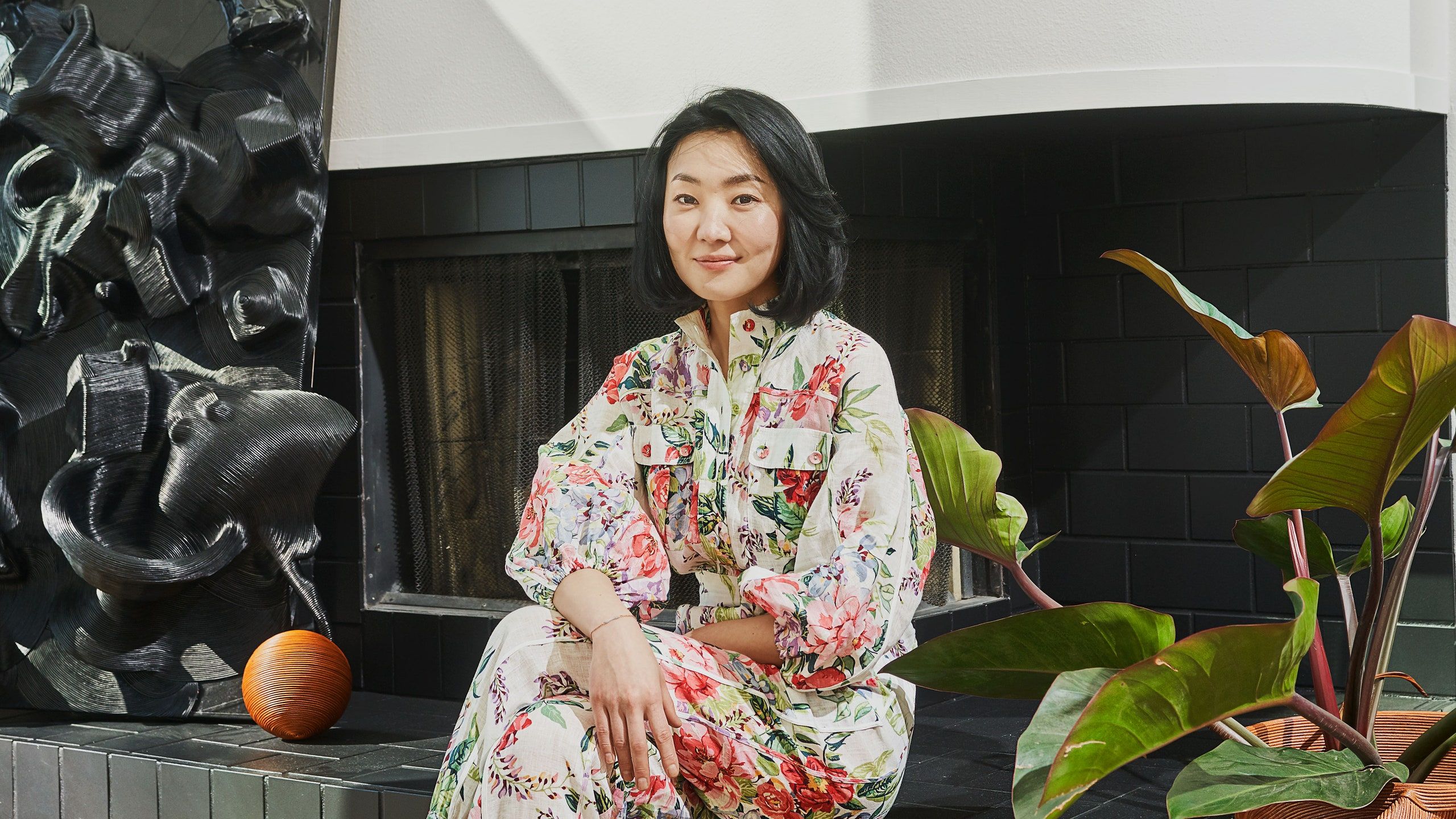Jay Sae Jung Oh with new work in her Seattle home/studio. Photo by Ian Allen.