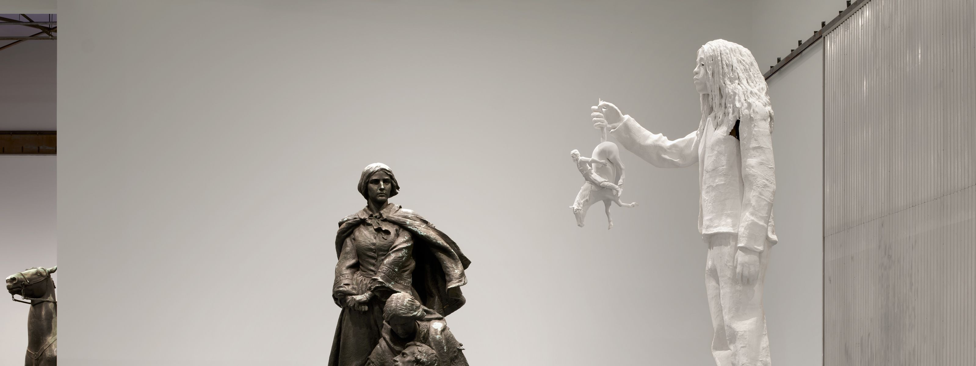 In Fall 2024 the artist was included in a number of significant group exhibitions, including Edges of Ailey, The Whitney Museum of American Art, New York; Flight into Egypt: Black Artists and Ancient Egypt, 1876-Now, The Metropolitan Museum of Art, New York (for which she performed an iteration of her ballet, The Death of Osiris, in the exhibition space); Movements Toward Freedom, The Museum of Contemporary Art, Denver; World Without End: The George Washington Carver Project, The California African American Museum, Los Angeles; and American Vignettes: Symbols, Society, and Satire, at the Rubell Museum, Washington, D.C. The artist’s work was previously the subject of Karon Davis: Selections from the Hammer Contemporary Collection at the Hammer Museum, University of California, Los Angeles in 2023. That same year, she was commissioned by The High Line, New York, to create Curtain Call, a monumental bowing ballerina in bronze.