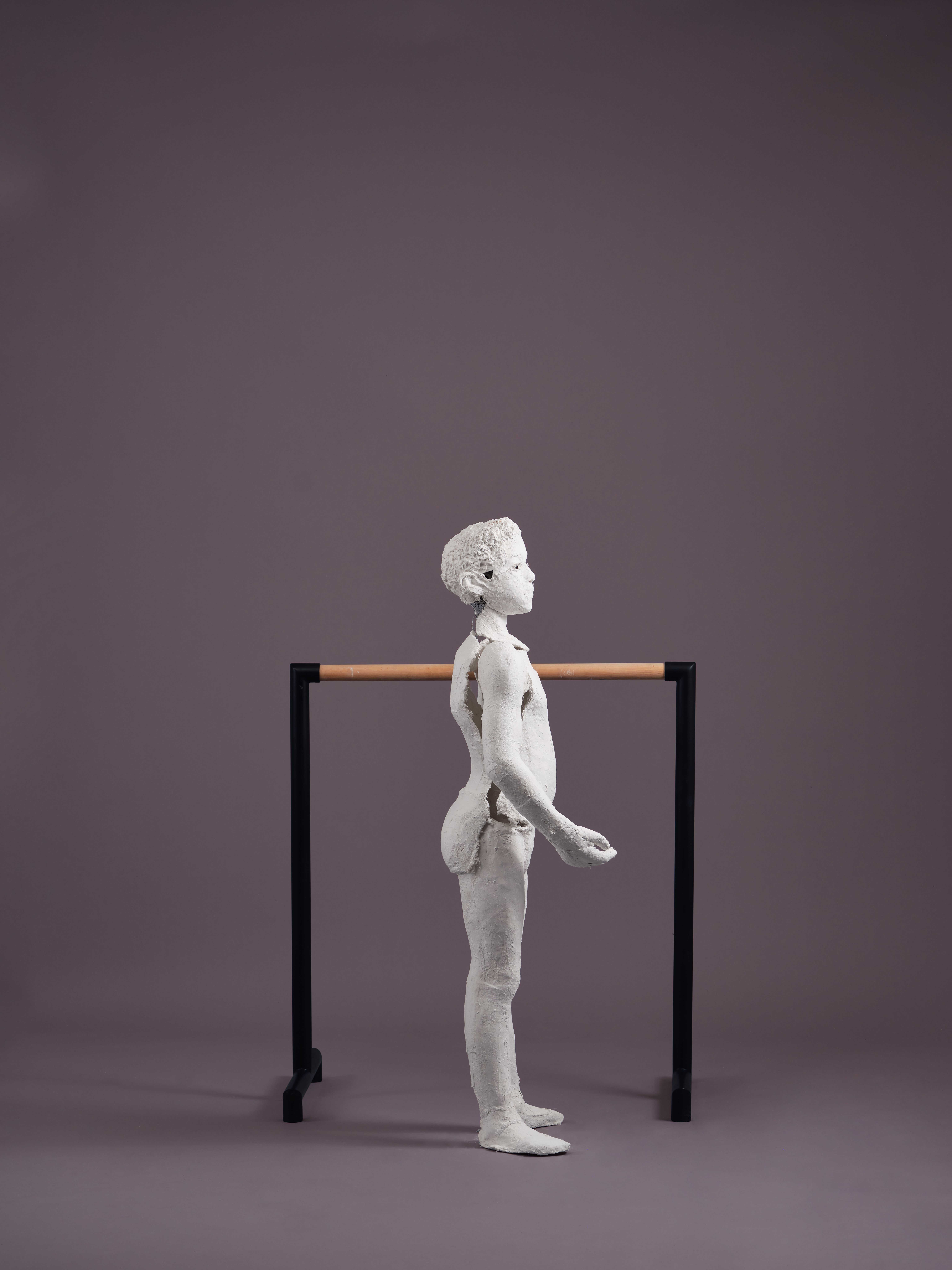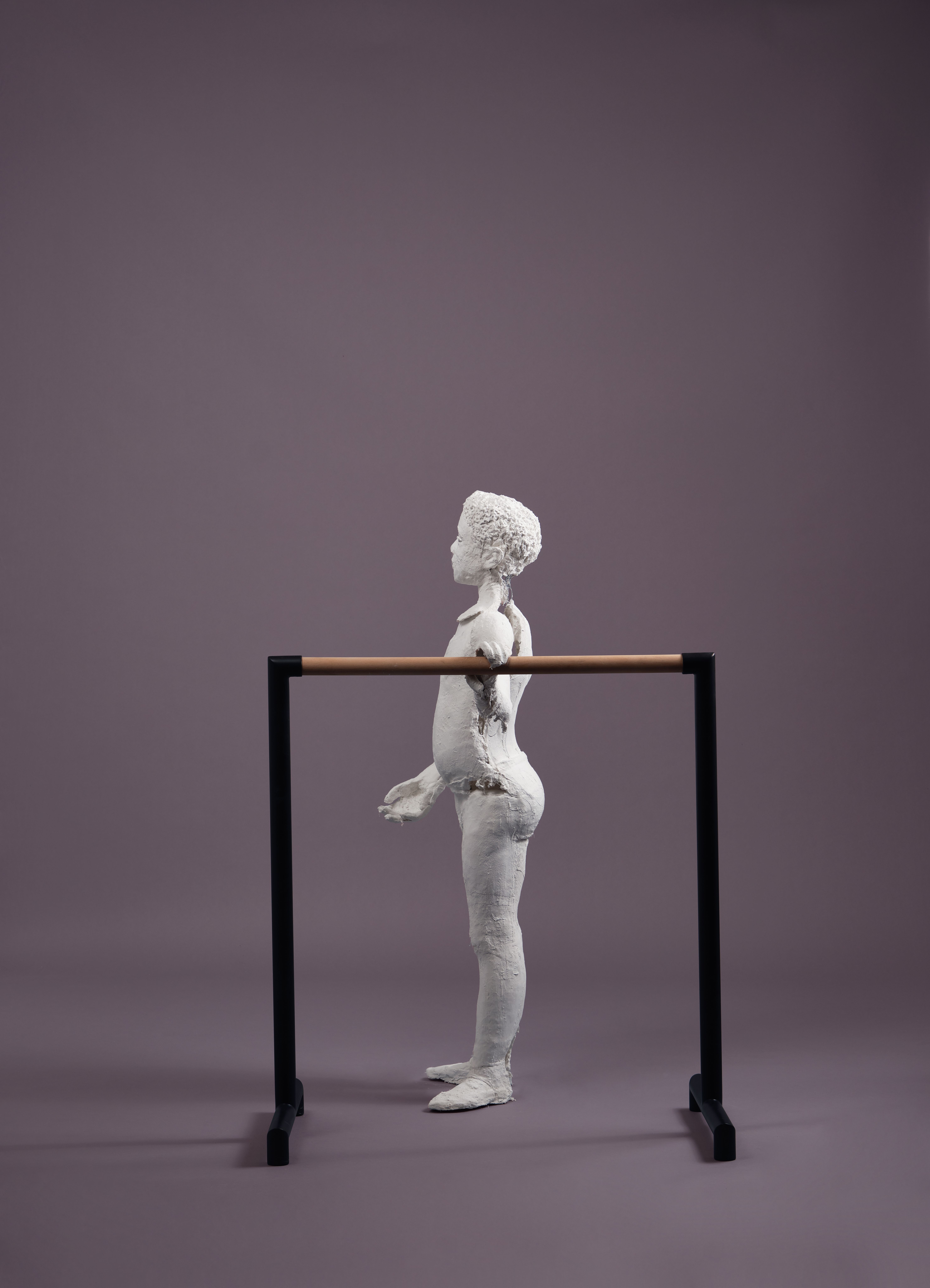 Plaster, steel, glass eyes, chicken wire, and wood ballet barre