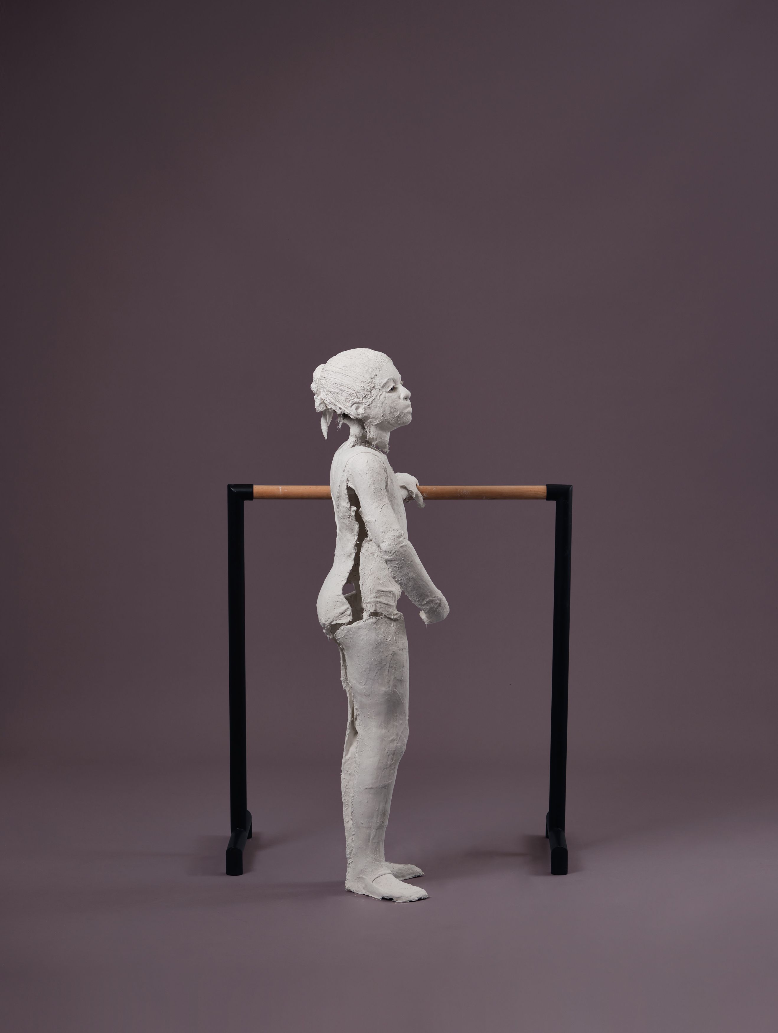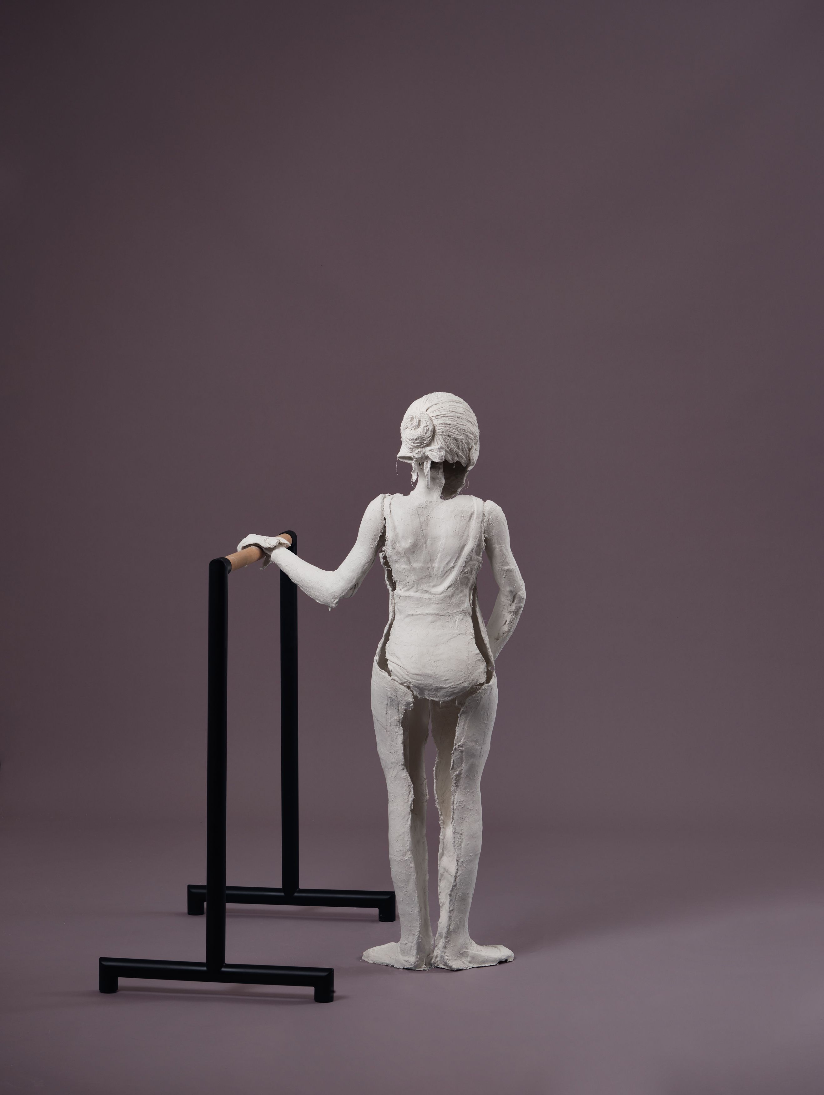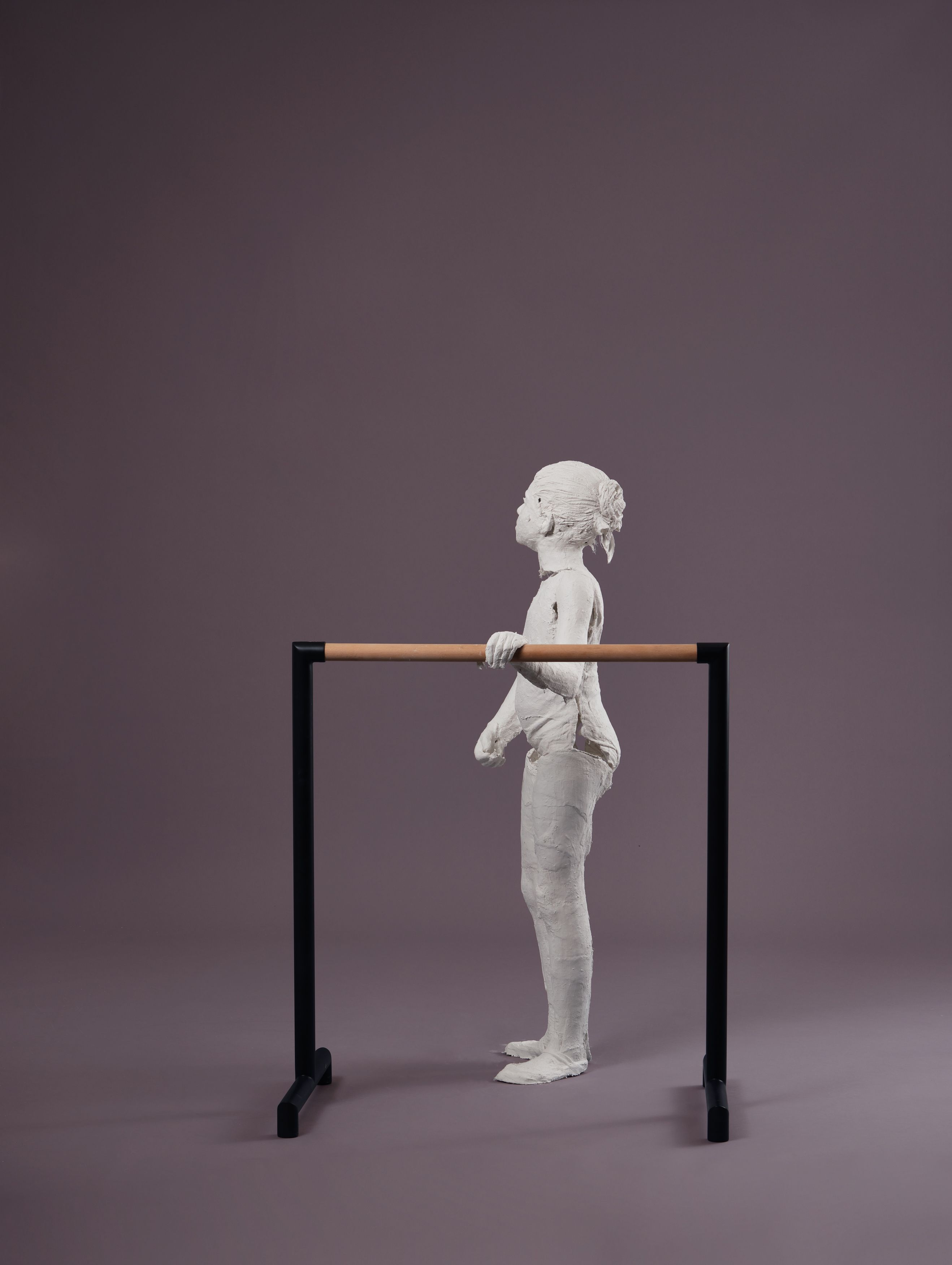 Plaster, steel, glass eyes, chicken wire, and wood ballet barre