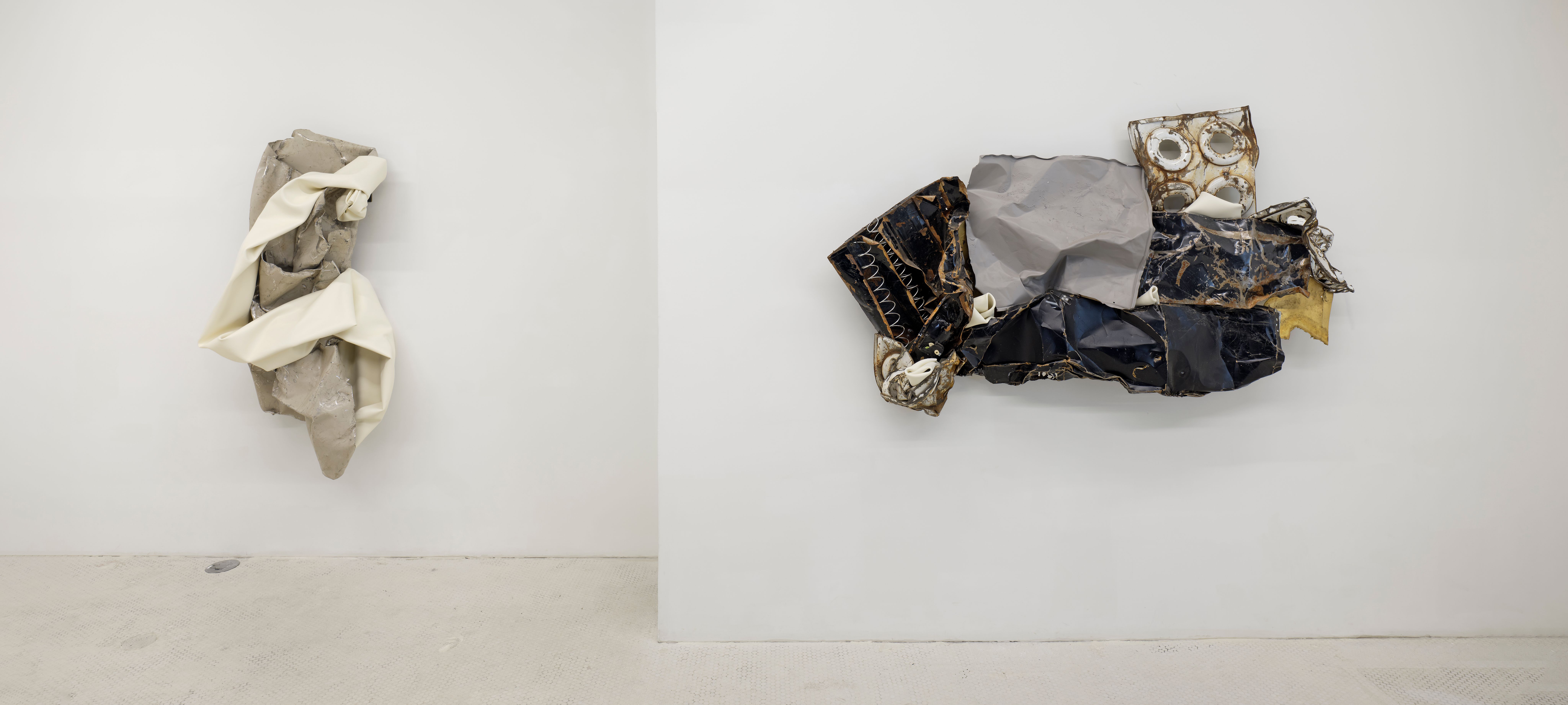 artist whose works in salvaged metal and paint skin defy the limitations of their respective media. Sourcing junkyard scraps from Brooklyn to Miami, Yanko overlays these crushed metallic frames with lush “skins” which she produces by heaving gallons of latex paint onto her studio floor, letting it harden into a malleable fabric-like shroud. Over the last year, her monochrome skins have increasingly embraced a more kaleidoscopic, painterly approach, reflecting an Abstract Expressionist sensibility. While this luxuriant draping appears weightless, the process of moulding them into the gestural folds and crevices of their metal bases requires significant strength. This transmutation of material finds root in the artist’s lifelong commitment to Daoist principles, which foreground both a harmonious coexistence with nature and a willingness to see beyond the immediately visible.