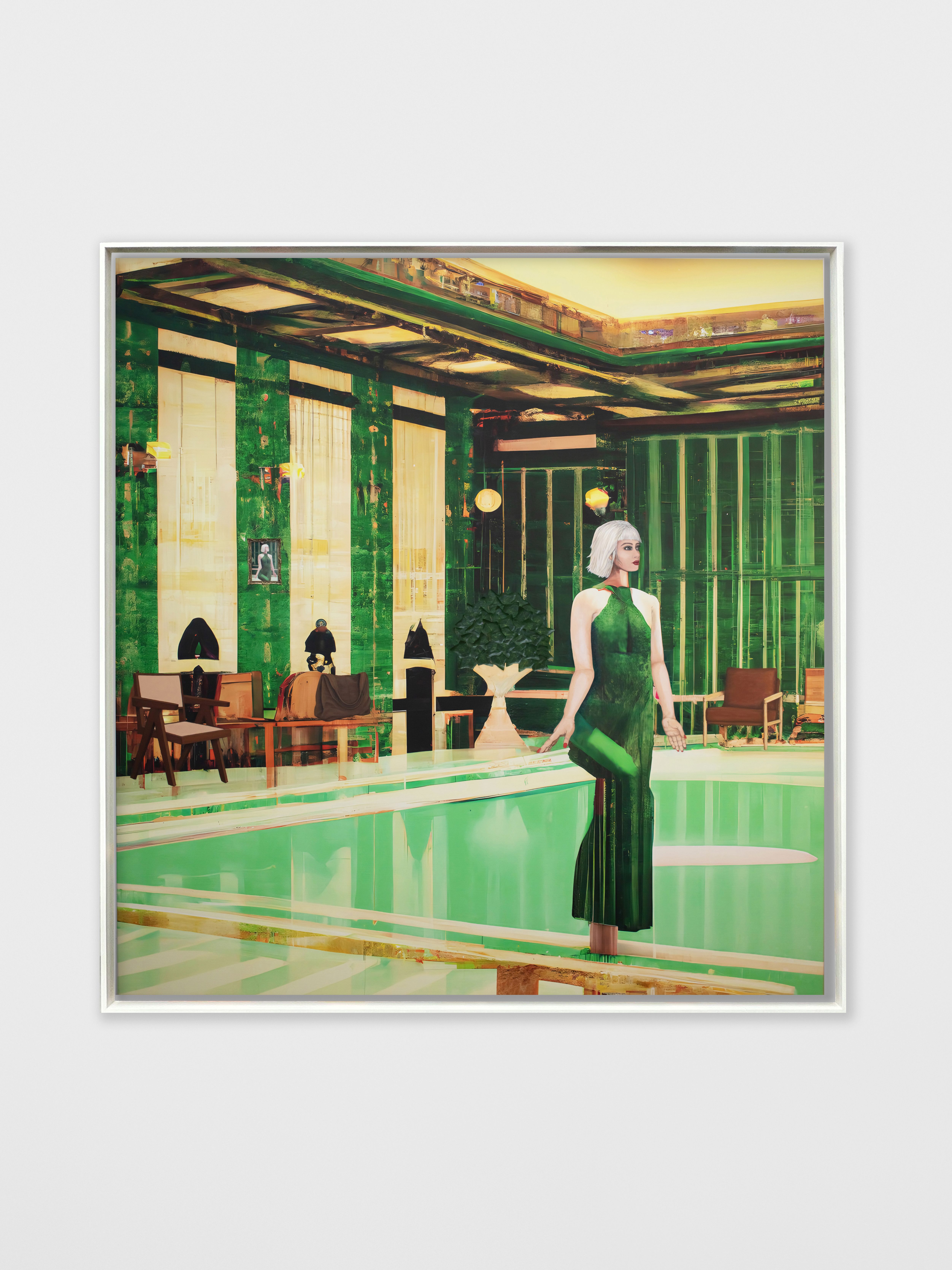 Pigment print on linen, acrylic paint, plastic, Dalle2