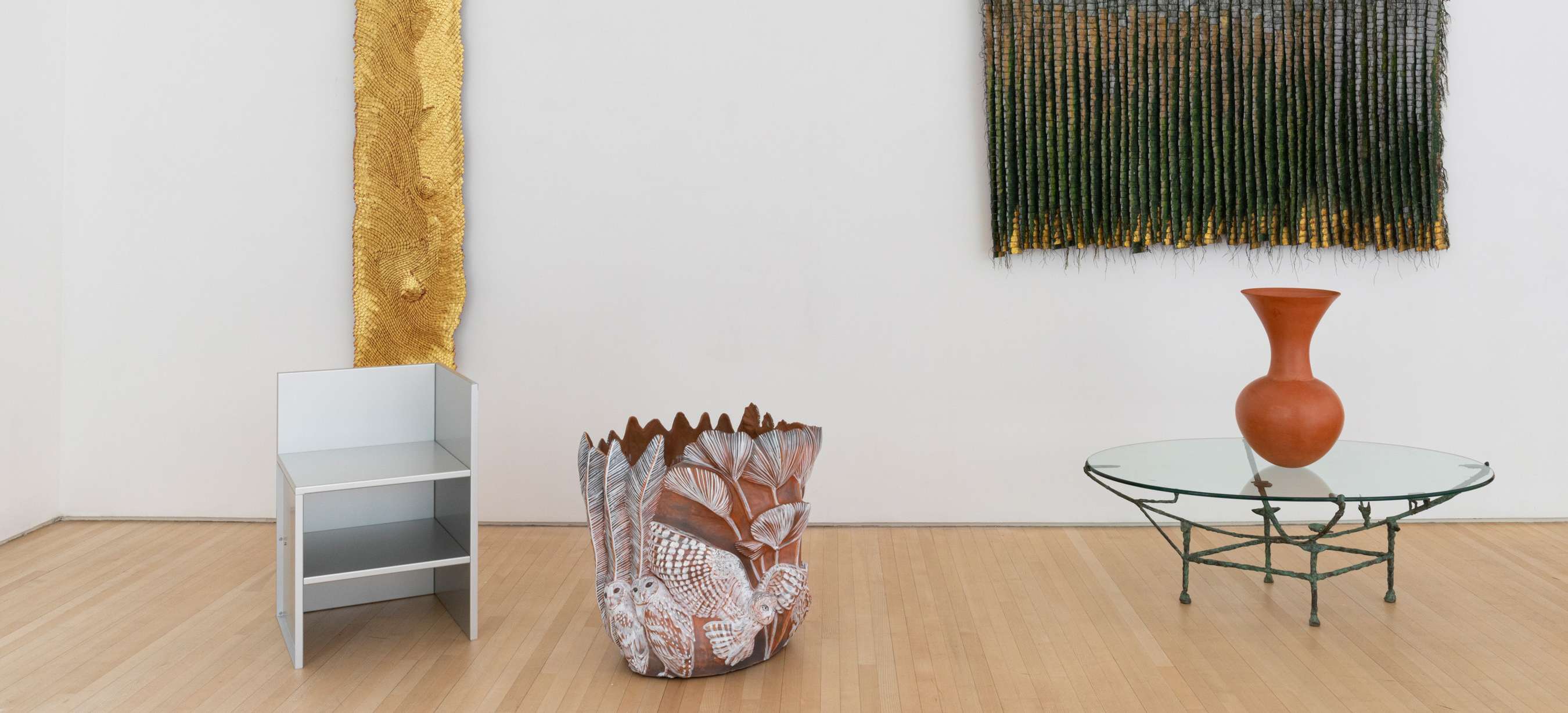 Considered one of the premier ceramicists working today, Magdalene A. N. Odundo DBE, born in Kenya, produces ceramic objects whose beauty emanates from their voluptuous forms and shimmering surfaces. Hand- coiled and scraped smooth with a gourd, Odundo’s objects are laboriously produced. After the clay is shaped, it is covered with slip, fired, and then burnished by hand. The object’s color is determined by the firing technique: a first firing in an oxidizing atmosphere turns it red-orange while a second firing in an oxygen-poor atmosphere causes the clay to turn black.