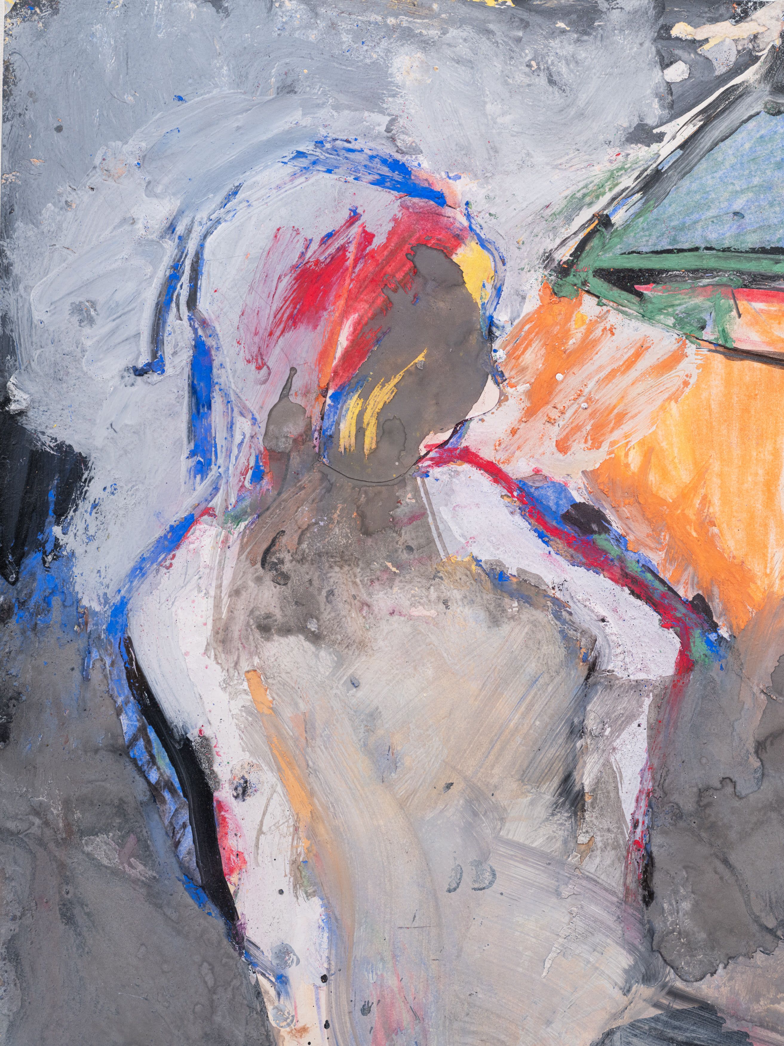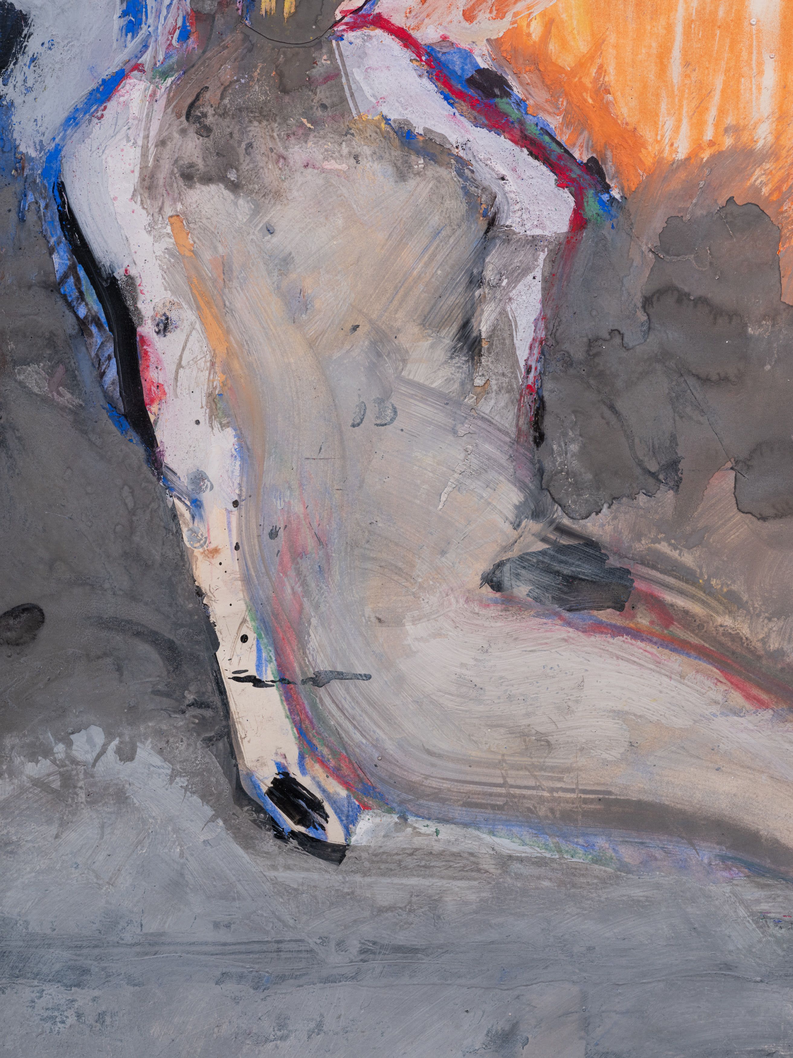 Oil-based pigments, graphite, silver metalic paint on paper
