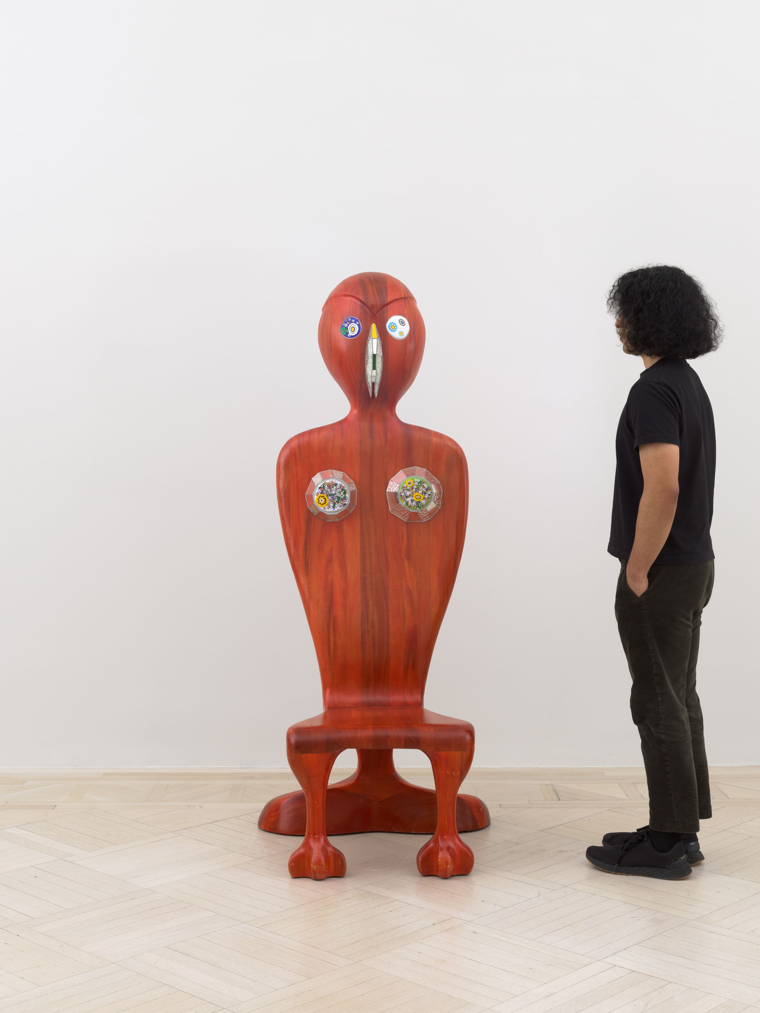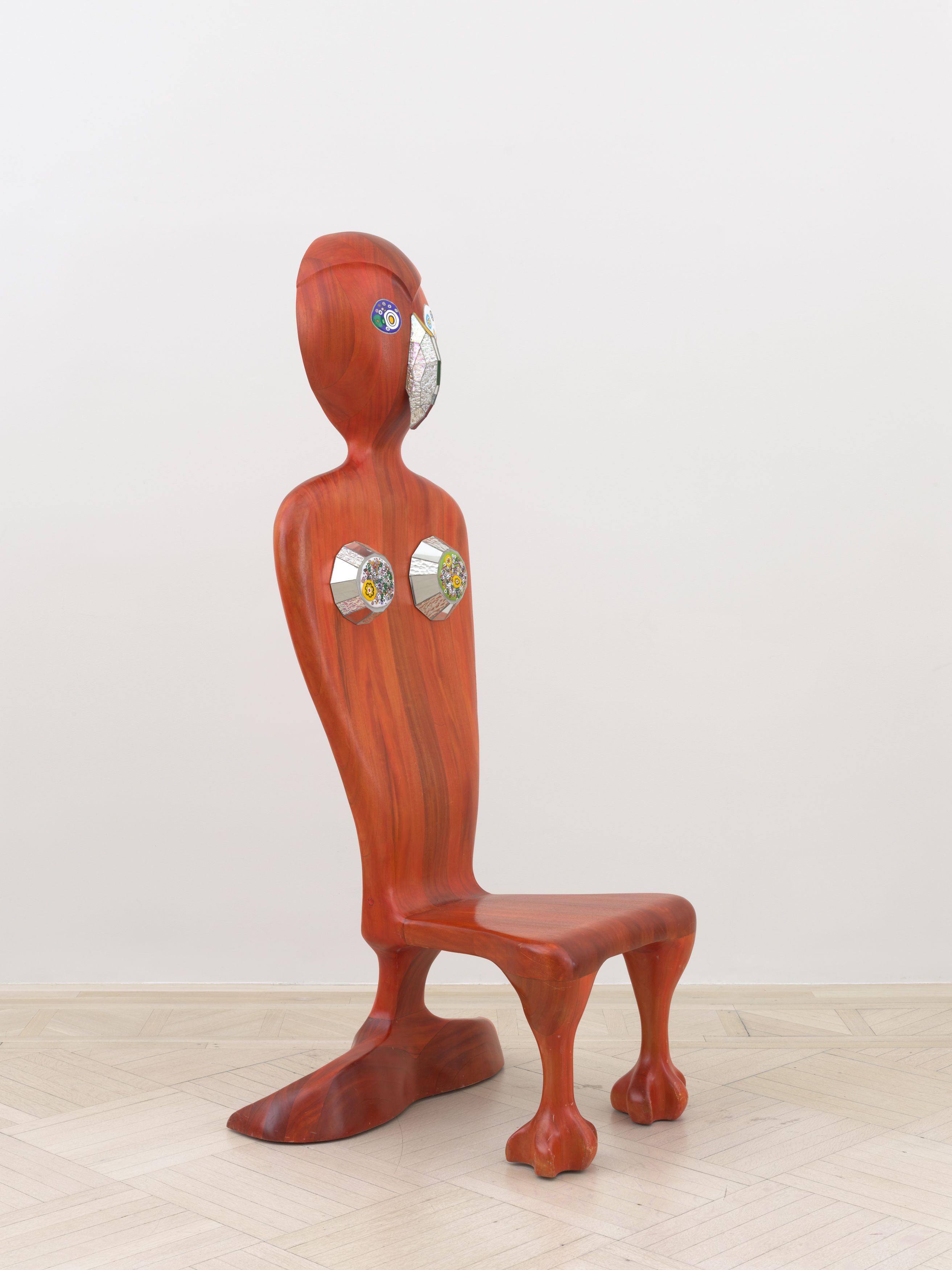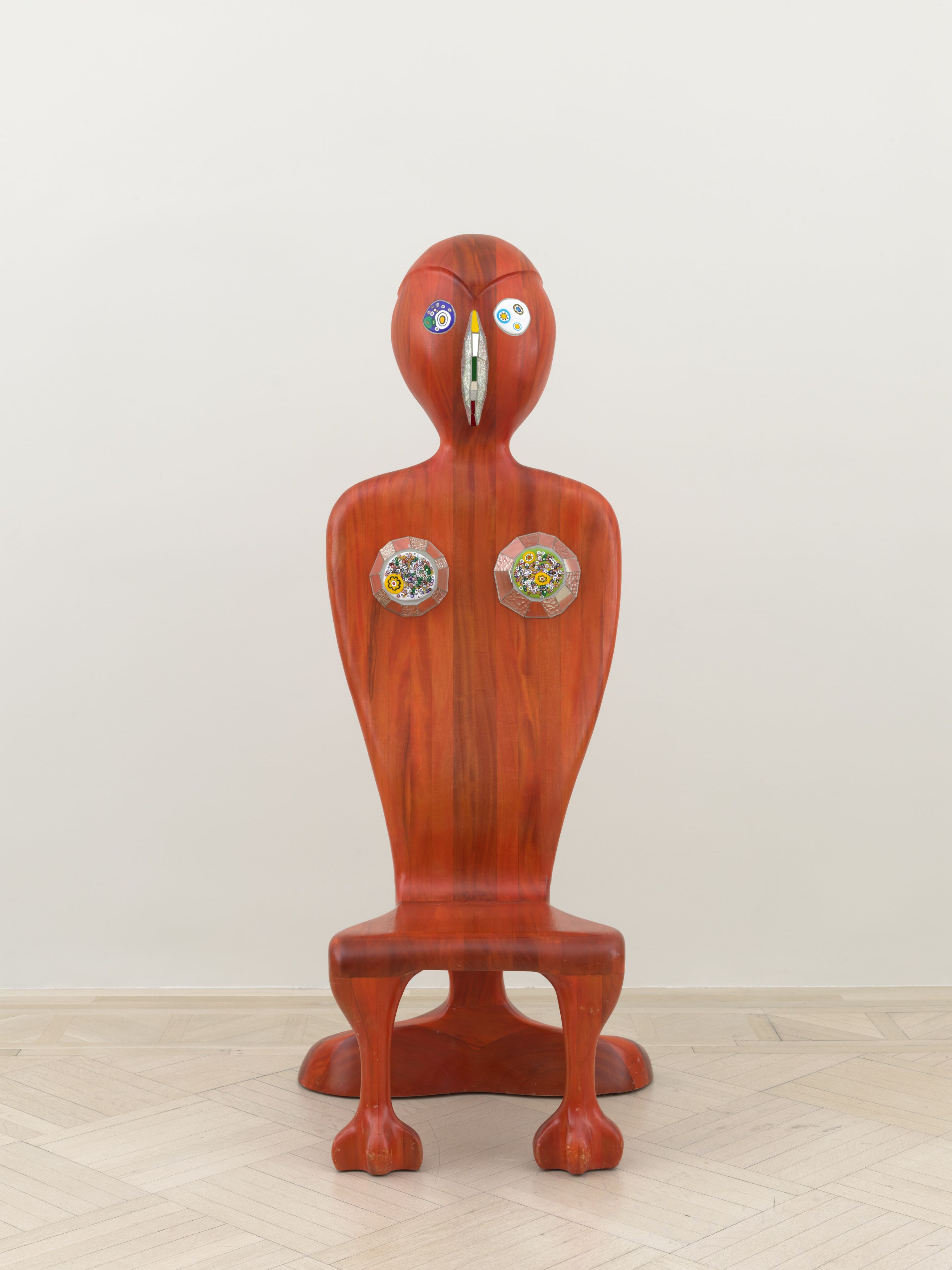 Stained mahogany, stained and mirrored glass inserts, millefiori glass inserts