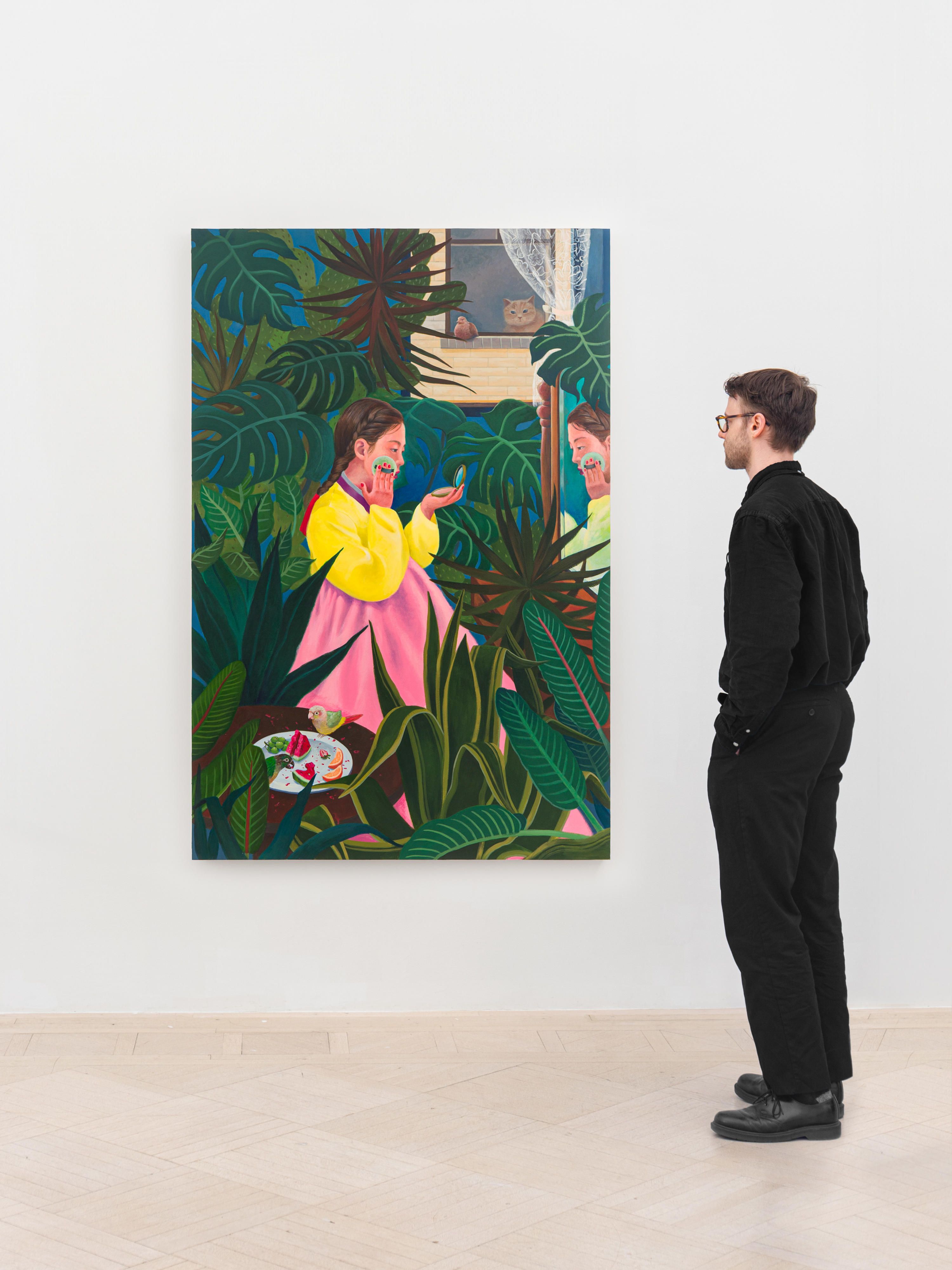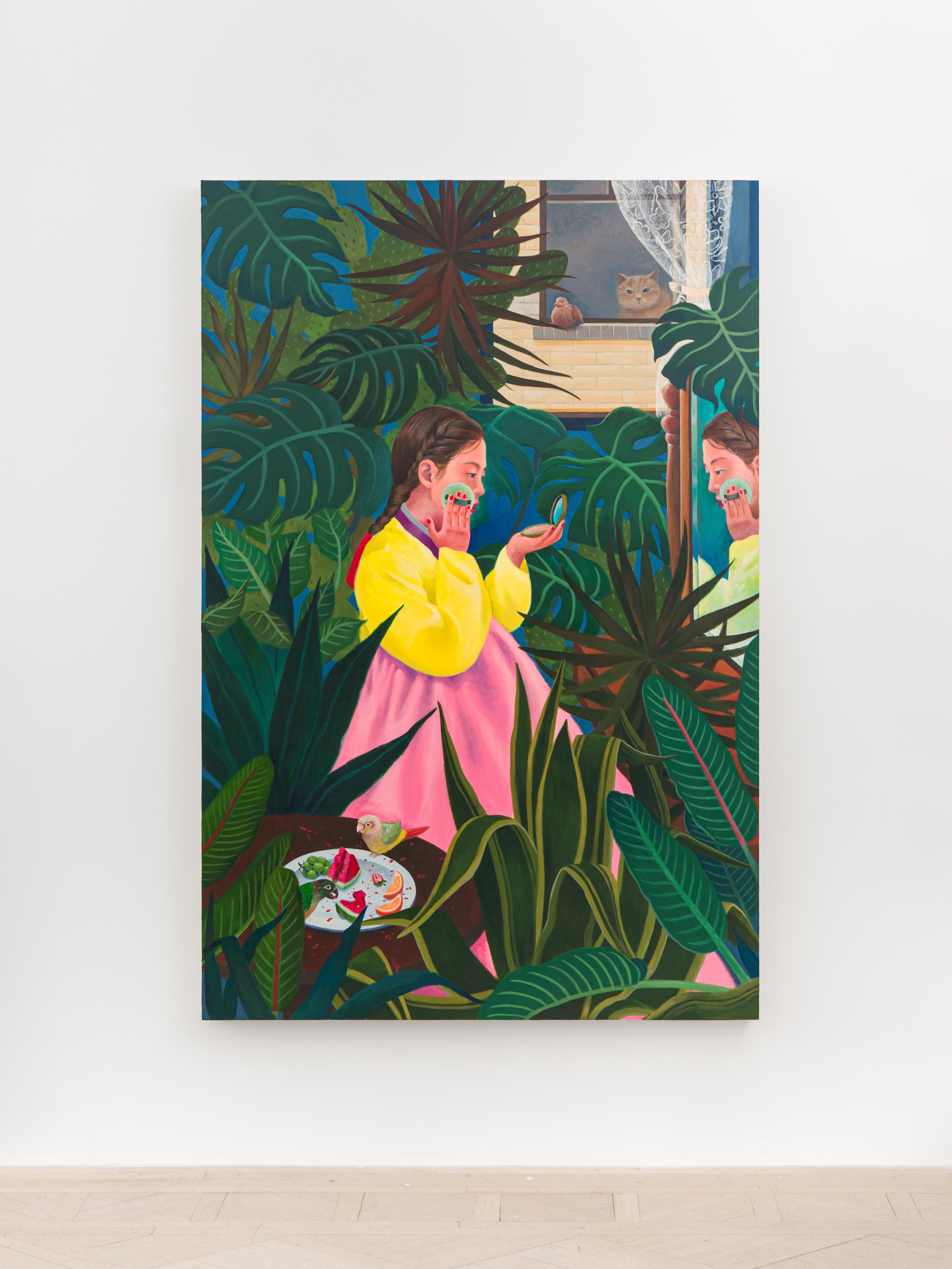 Acrylic paint on paper mounted on wood panel