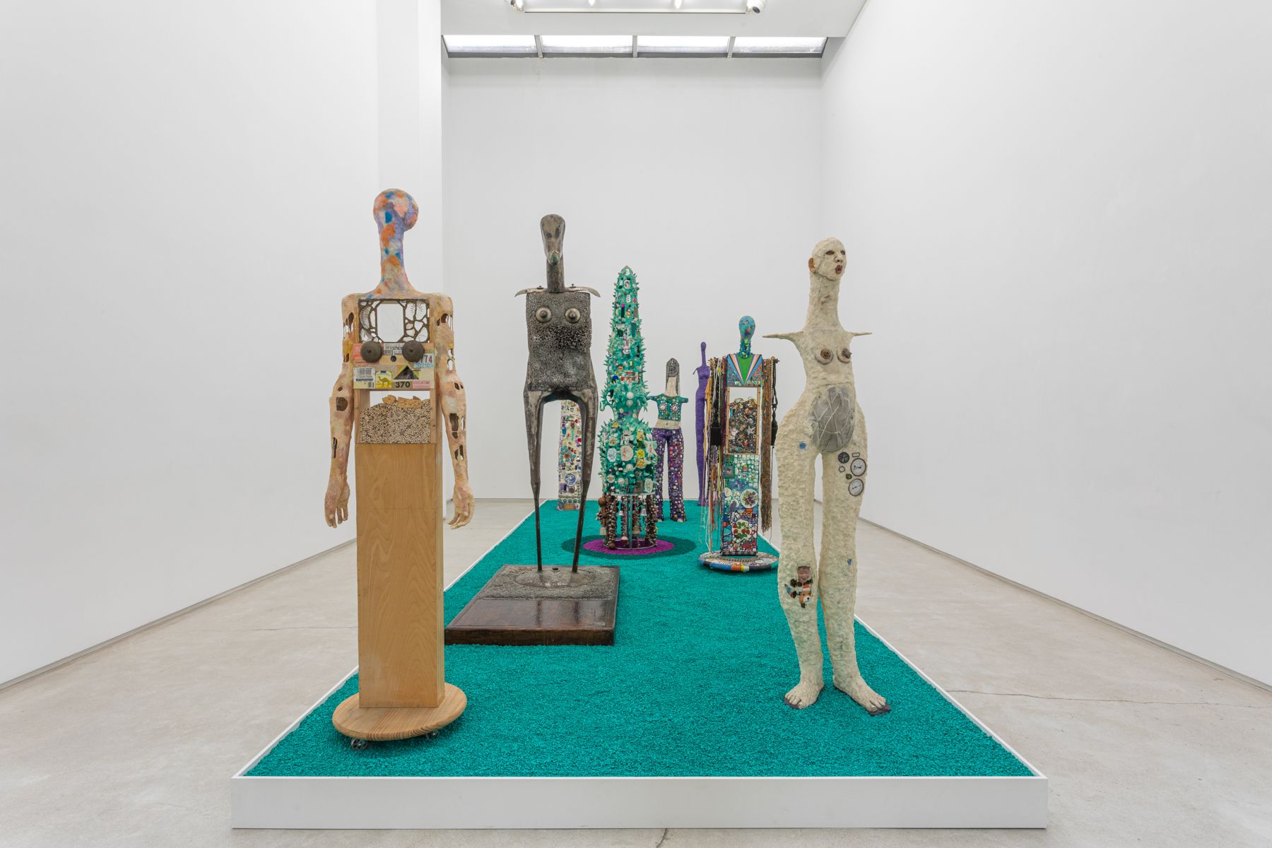 Timothy Washington (b. 1946 in Watts, California) creates assemblages that incorporate drawing, painting, and sculpture. Washington’s style developed in conversation with his L.A.-based peers including John Outterbridge, Betye Saar, and David Hammons, building off early influence from Simon Rodia’s seminal Watts Towers (1921-54), which he climbed as a young boy. Works such as Love Thy Neighbor, 1968 incorporate discarded objects found in his native L.A. Washington also sources materials from friends that go directly into his assemblages including hair, jewelry, urban debris, plastic toys, street signs, ceramic shards, and thrifted items. Washington is a notable member of the Black Arts Movement, which was led by African American cultural practitioners as the “aesthetic and spiritual sister” of the Black Power Movement, and Los Angeles Black Assemblage Movement, which salvaged rubble of the artists’ communities for creative visual production.