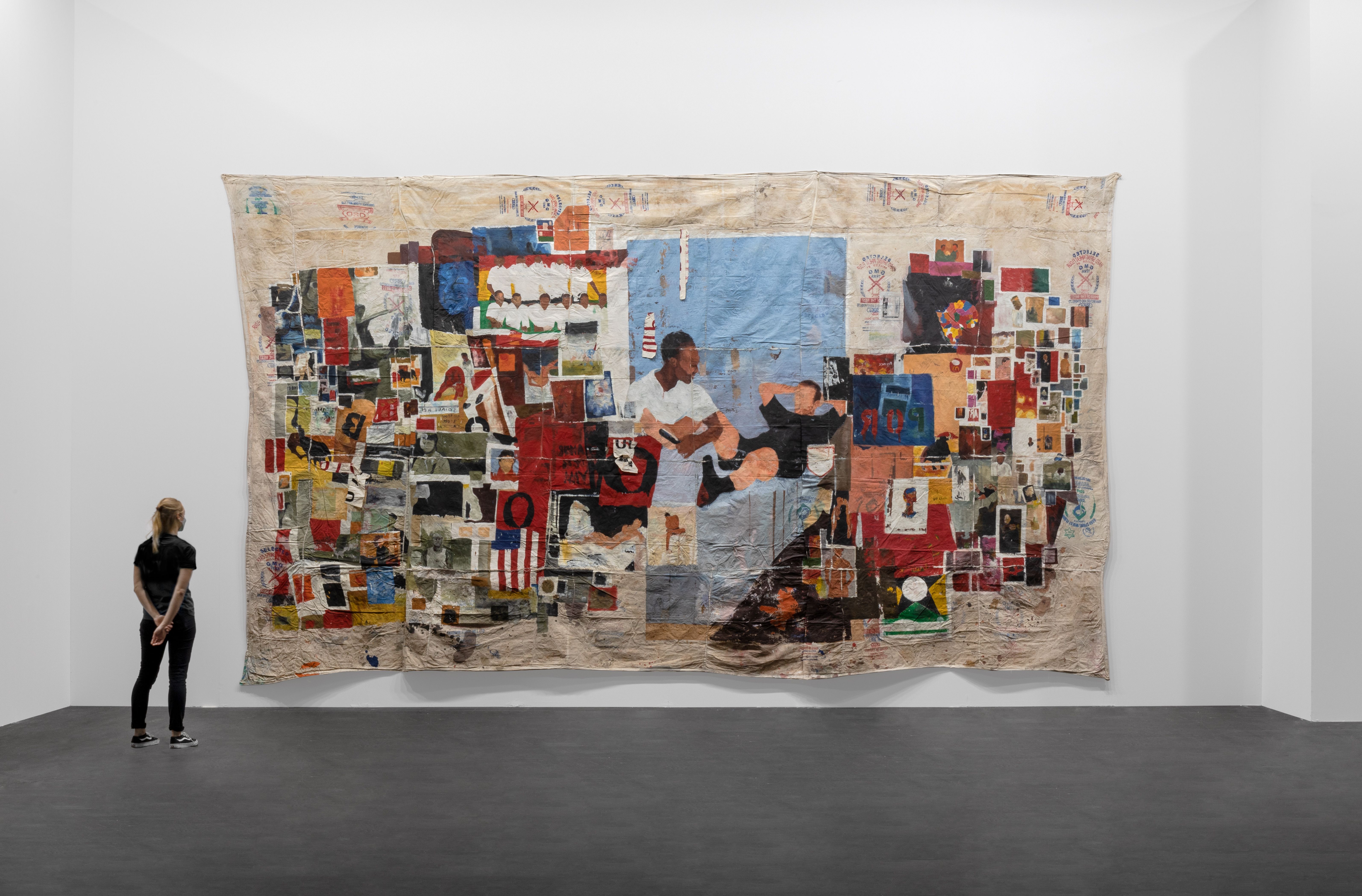 Lyle Ashton Harris, Blow Up (Verso), 2010-19. Acrylic on found printed cotton cloth with muslin backing, 169 x 295 inches (429 x 749 cm)
