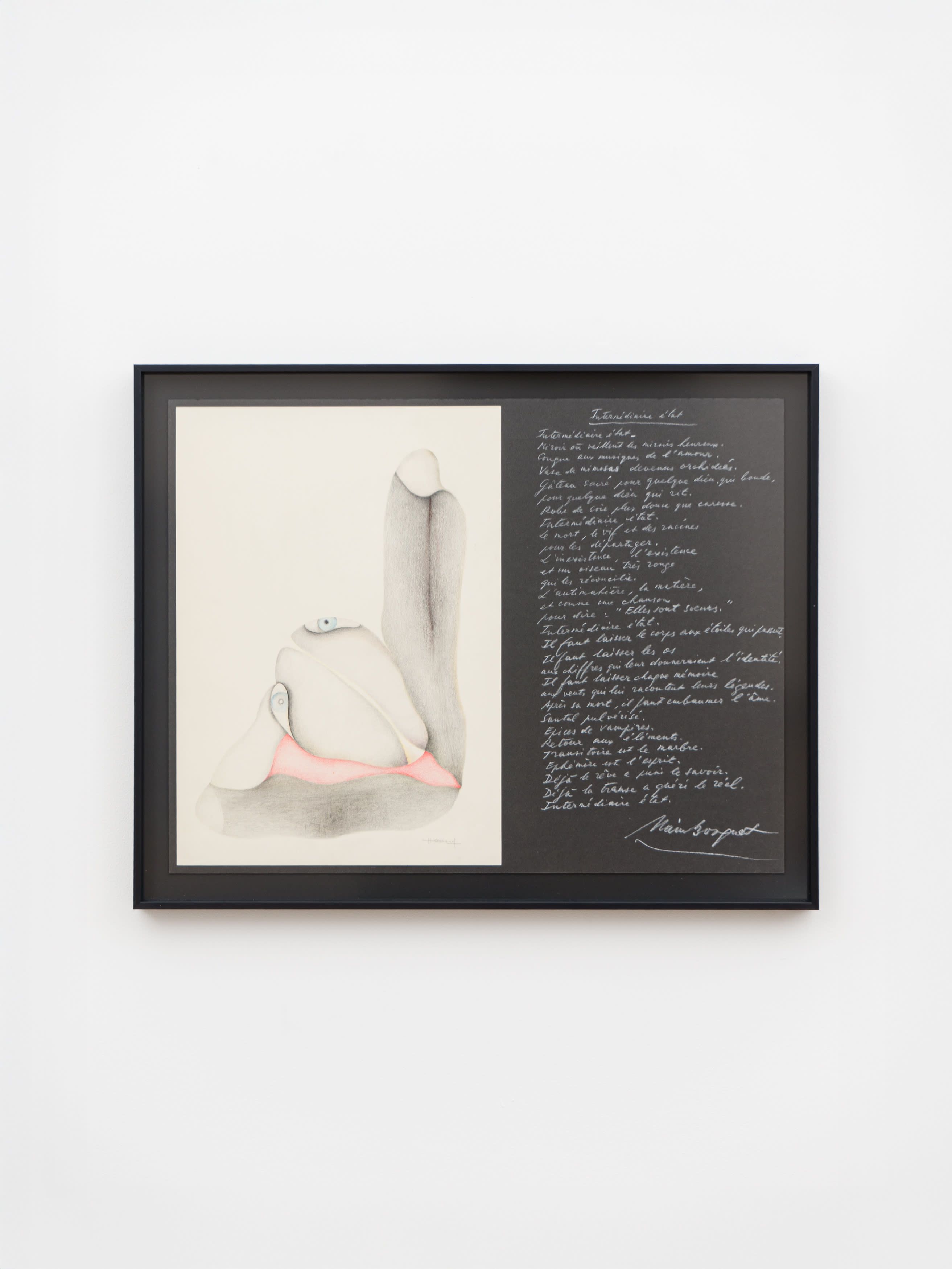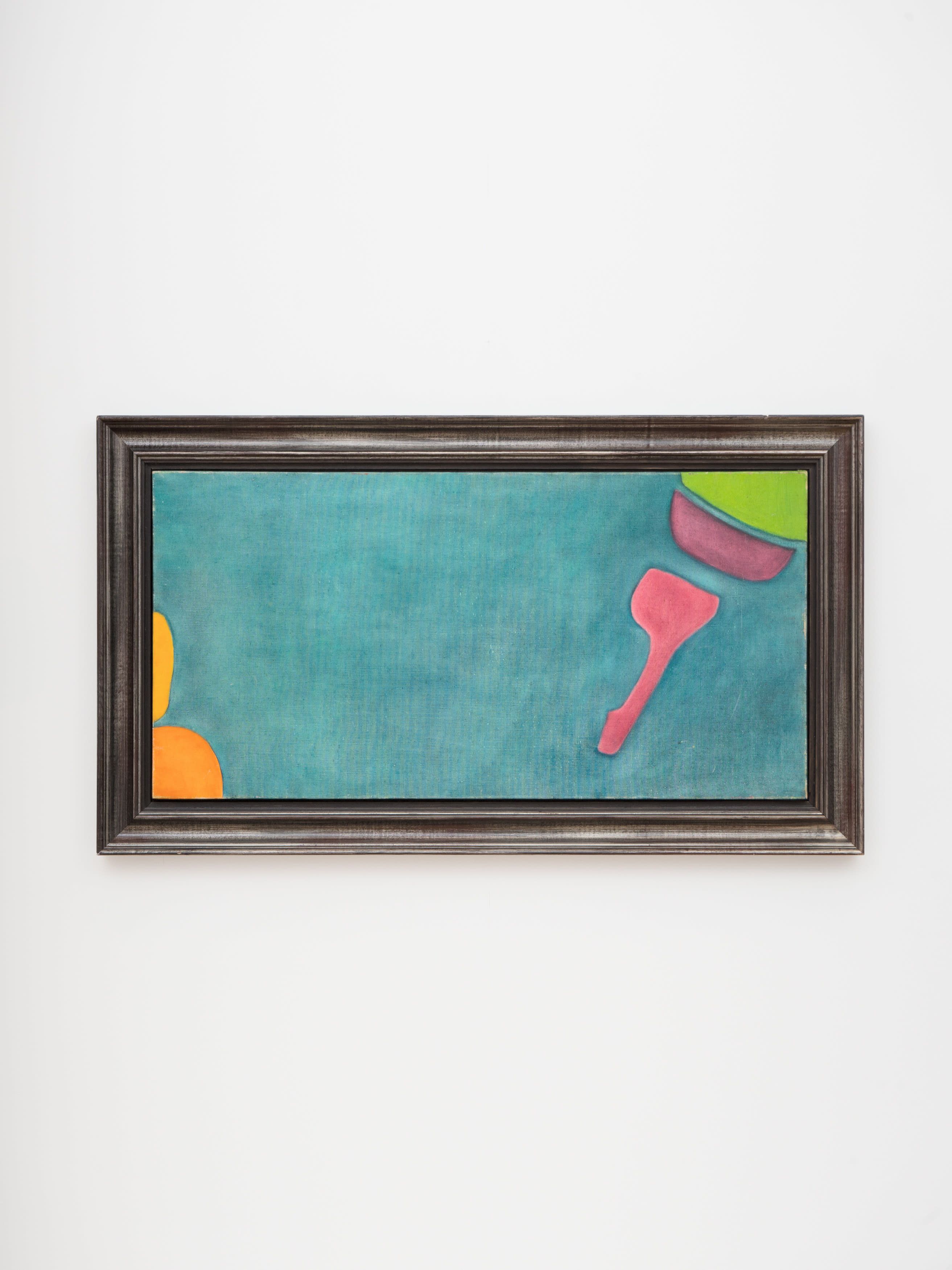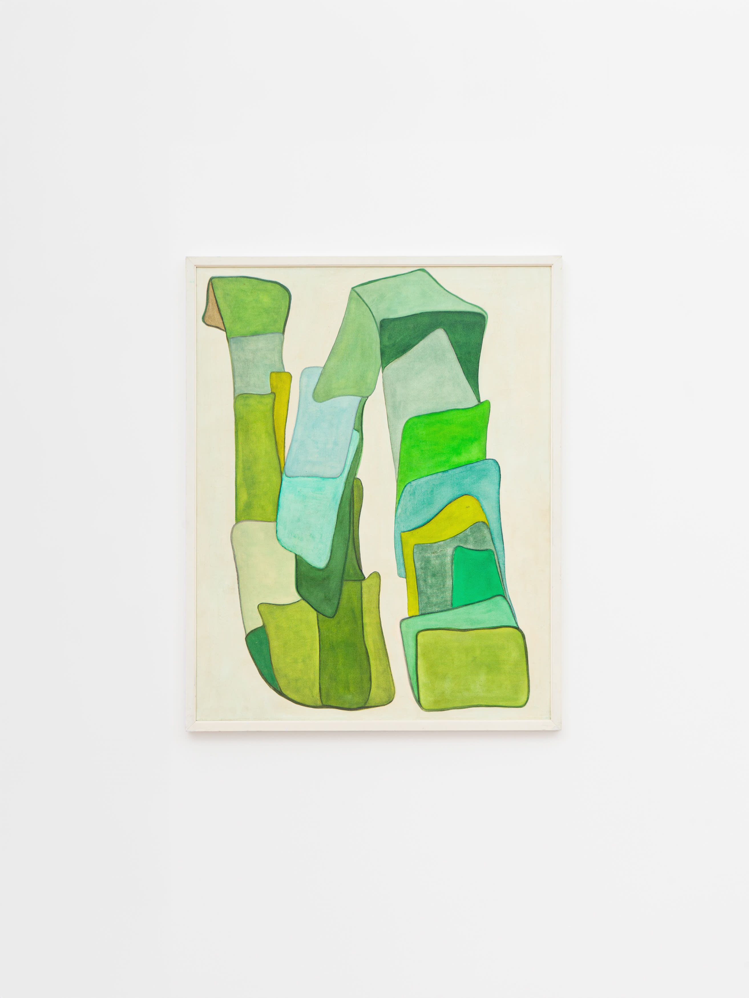Caland began painting later in life, at the age of 33, following the death of her parents and the establishment of her own family with her husband Paul Caland. In 1964, she enrolled in classes at the American University in Beirut and quickly emerged as a distinctive artistic voice. Her early paintings from the 1960s carry a bold chromaticism and compositional directness that would become central to her later practice. In 1970, Caland left Lebanon for Paris, a move that marked both personal independence and a shift in her artistic trajectory. In her paintings, Bribes de corps (1973) and Accroupie (1979), the playful sensuality of her earlier works gives way to a radical language of fragmentation. Curved fields of color suggest bodies without fixing them, while the blank spaces between painted forms become as charged as the painted areas themselves.