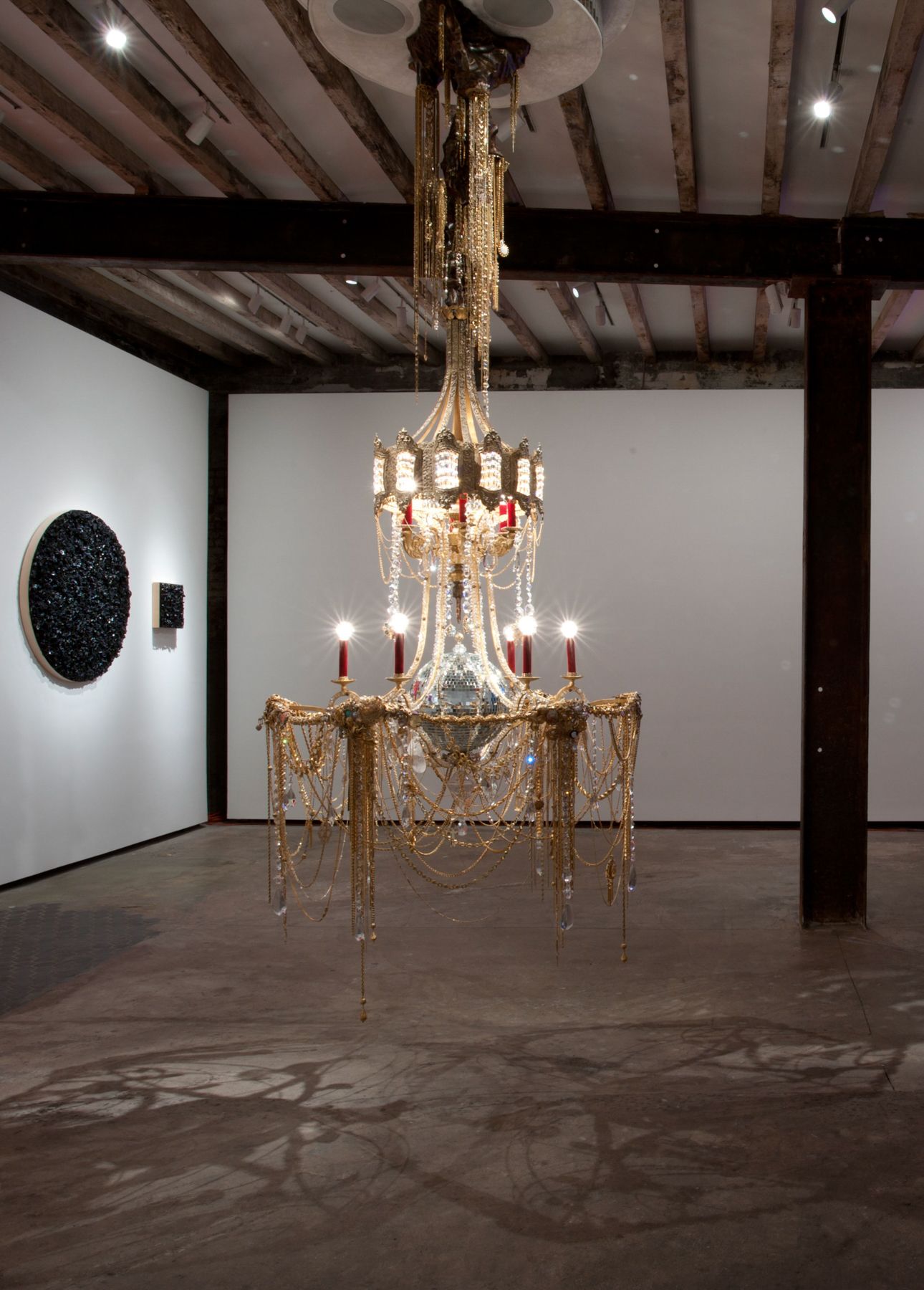 Continuing his investigation into Kustom Kulture and its relationship to art, subcultures and self-fashioning, Dzine presents his new project, Imperial Nail Salon at Salon 94 Freemans. For six weeks beginning on September 7th, the gallery will be transformed into an environmental sculpture featuring new paintings, nails and furnishings. The centerpiece of the exhibition is a hybridized chandelier adorned with Swarovski crystals and a cascade of jewelry, activated by a sound system reminiscent of his low-rider custom cars. A series of four paintings encrusted with an assemblage of costume jewelry and decorative embellishments will hang beside an upholstered, gold-leafed hutch. On display within will be an array of flamboyant, wearable nail sculptures. Like Claus Oldenburg 1961 store, Imperial Nail Design reveals the co-mingling of art, commodity, and commerce. A salon chair with a part-time manicurist completes this tableau.