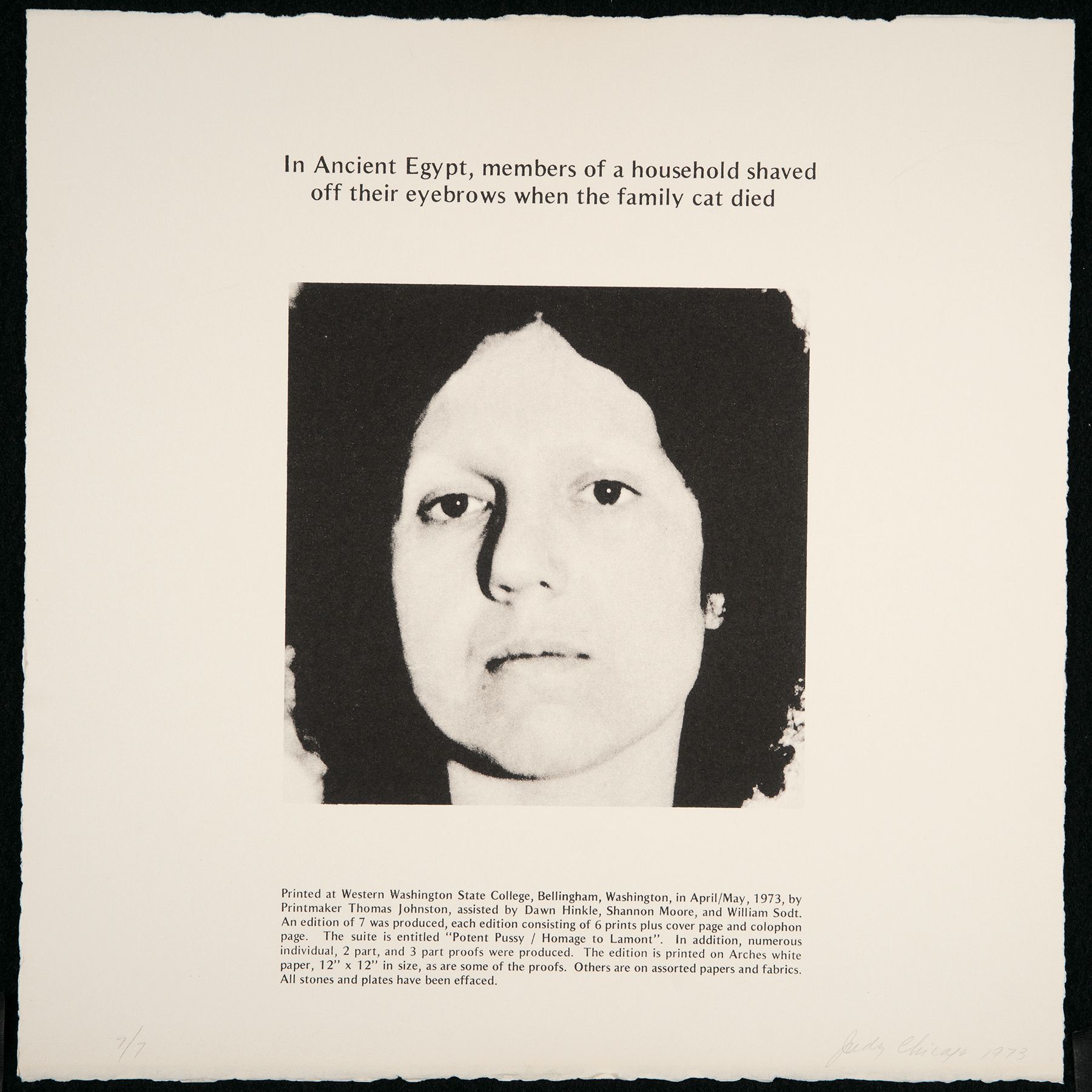 This exhibition is presented in tandem with the acquisition of Chicago’s extensive print archive by the Jordan Schnitzer Family Foundation, which joins four prestigious institutions that house portions of Chicago’s archives in an effort to make her work more accessible to scholars and to the general public: