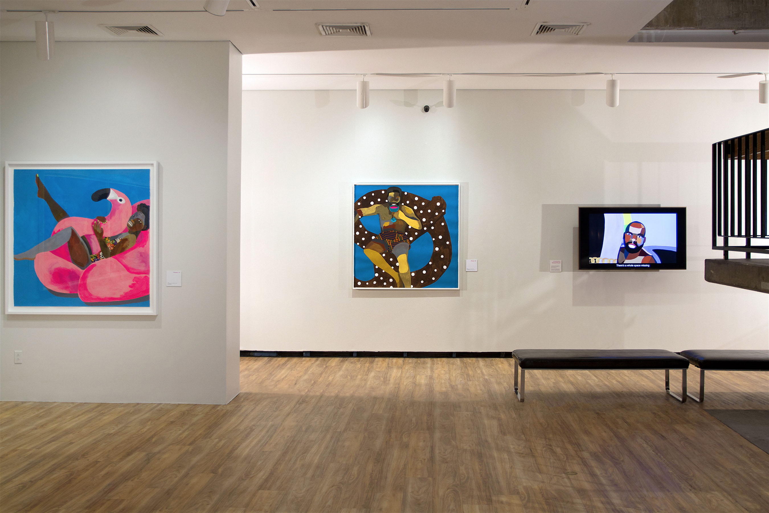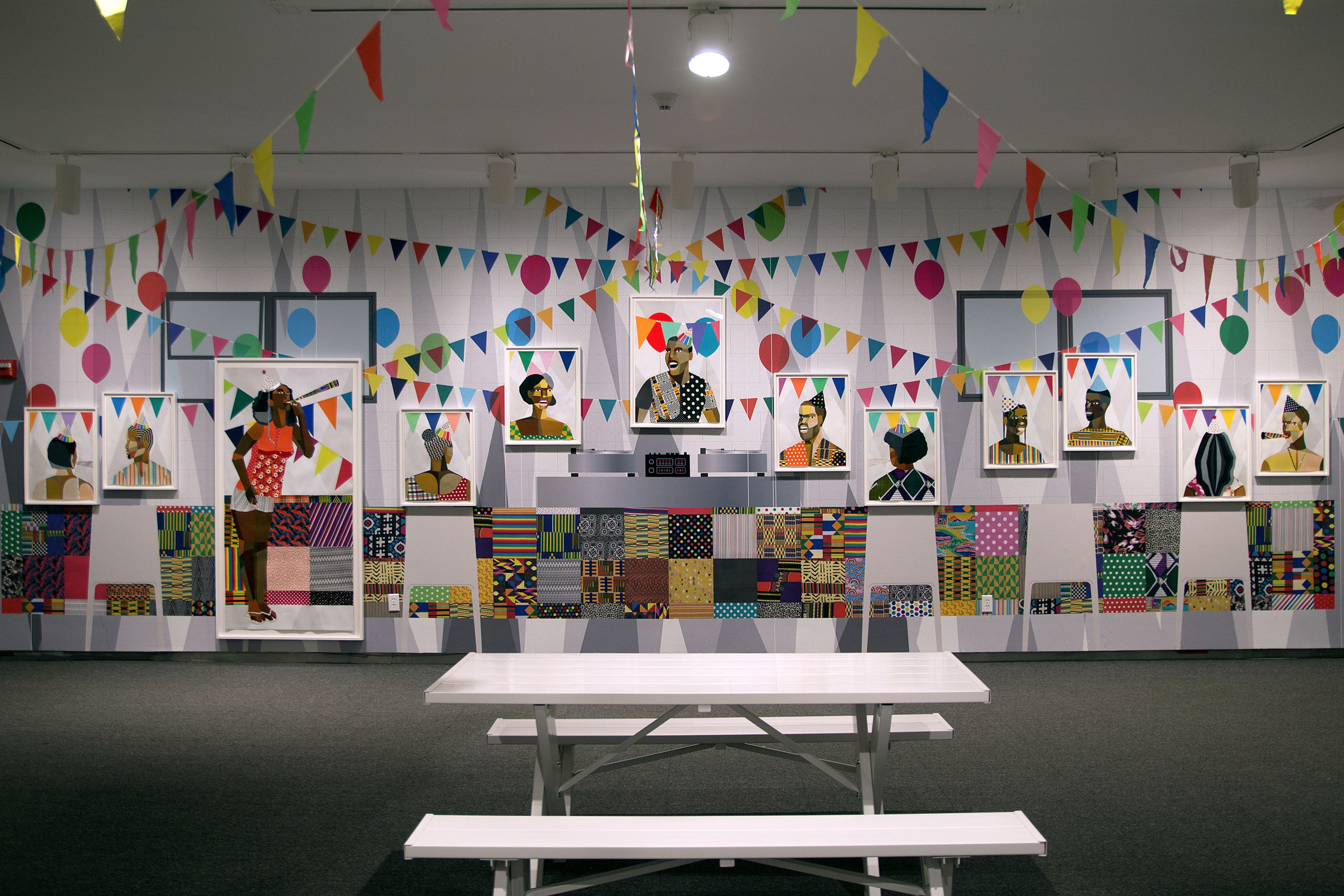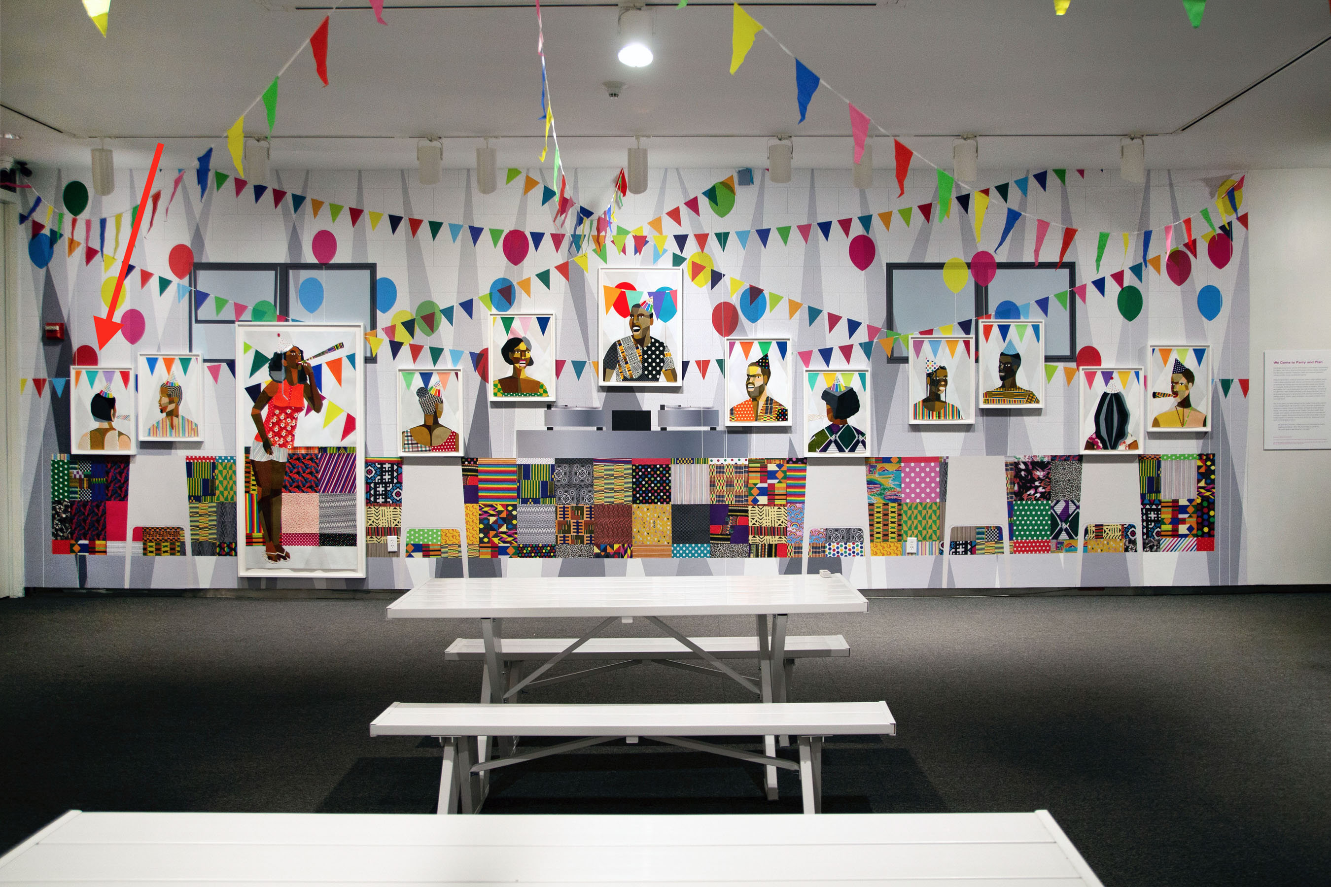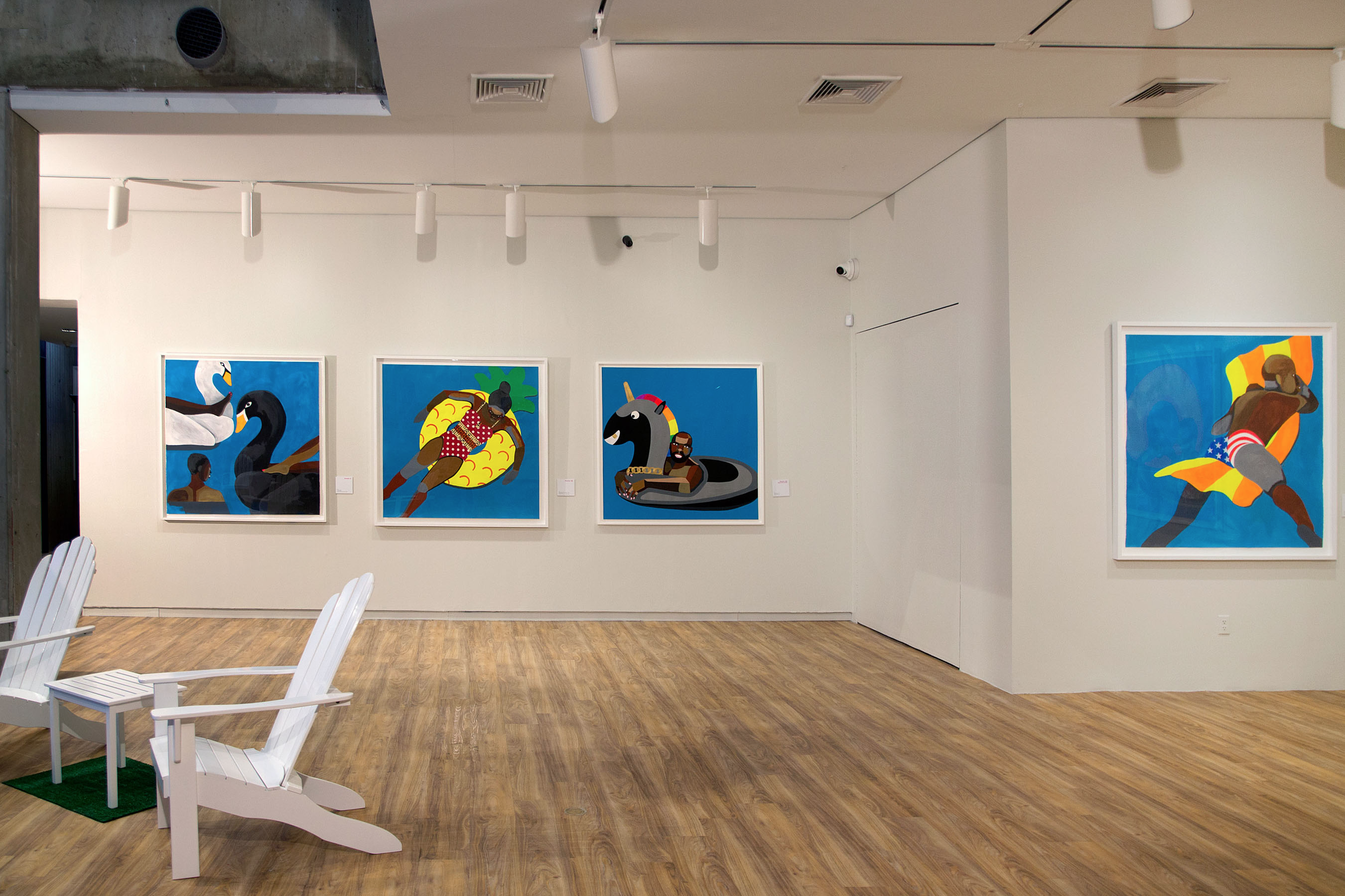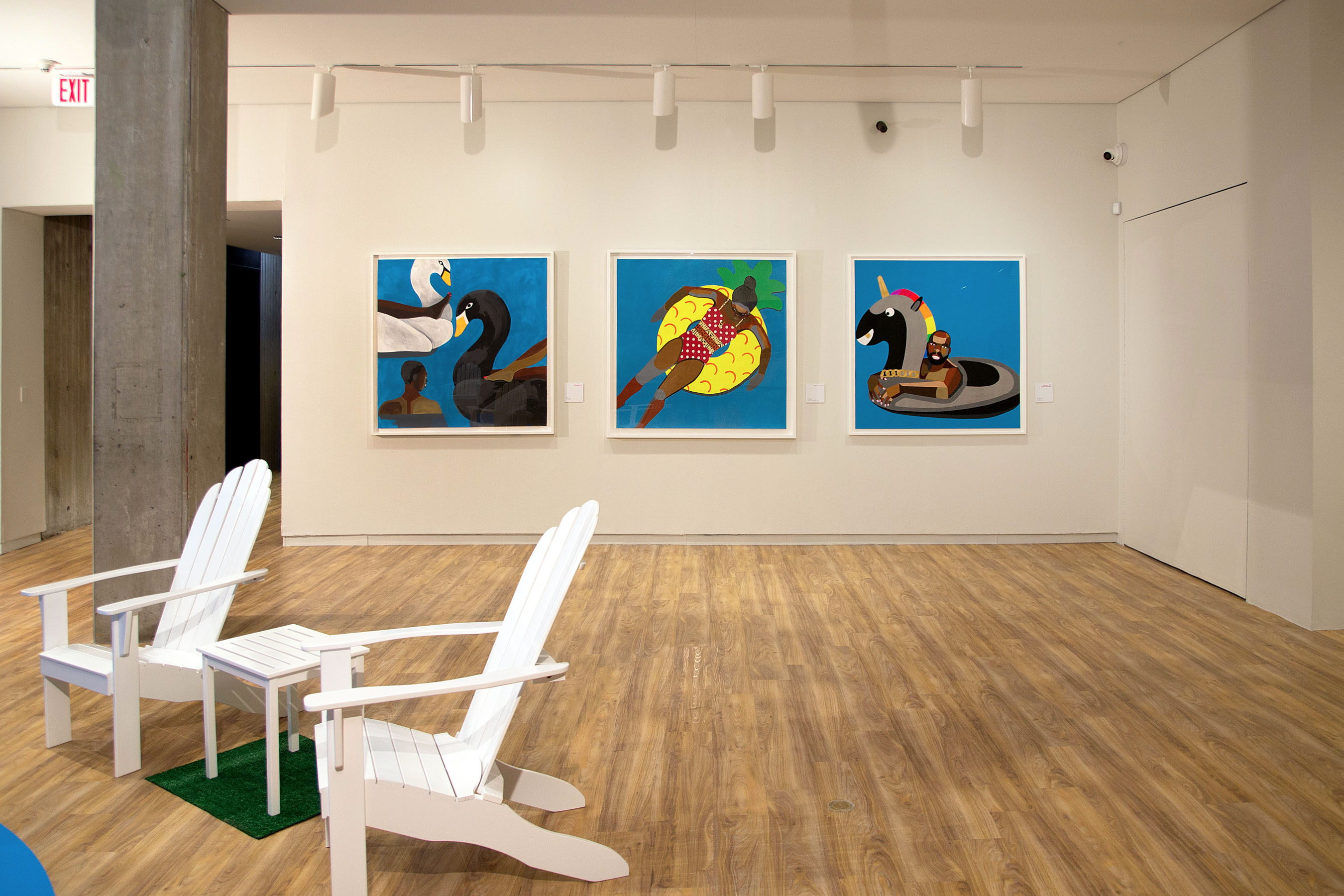 Installation view of Buoyant / We Came to Party and Plan by Derrick Adams, March 3, 2020—August 23, 2020, Hudson River Museum, Yonkers, NY.