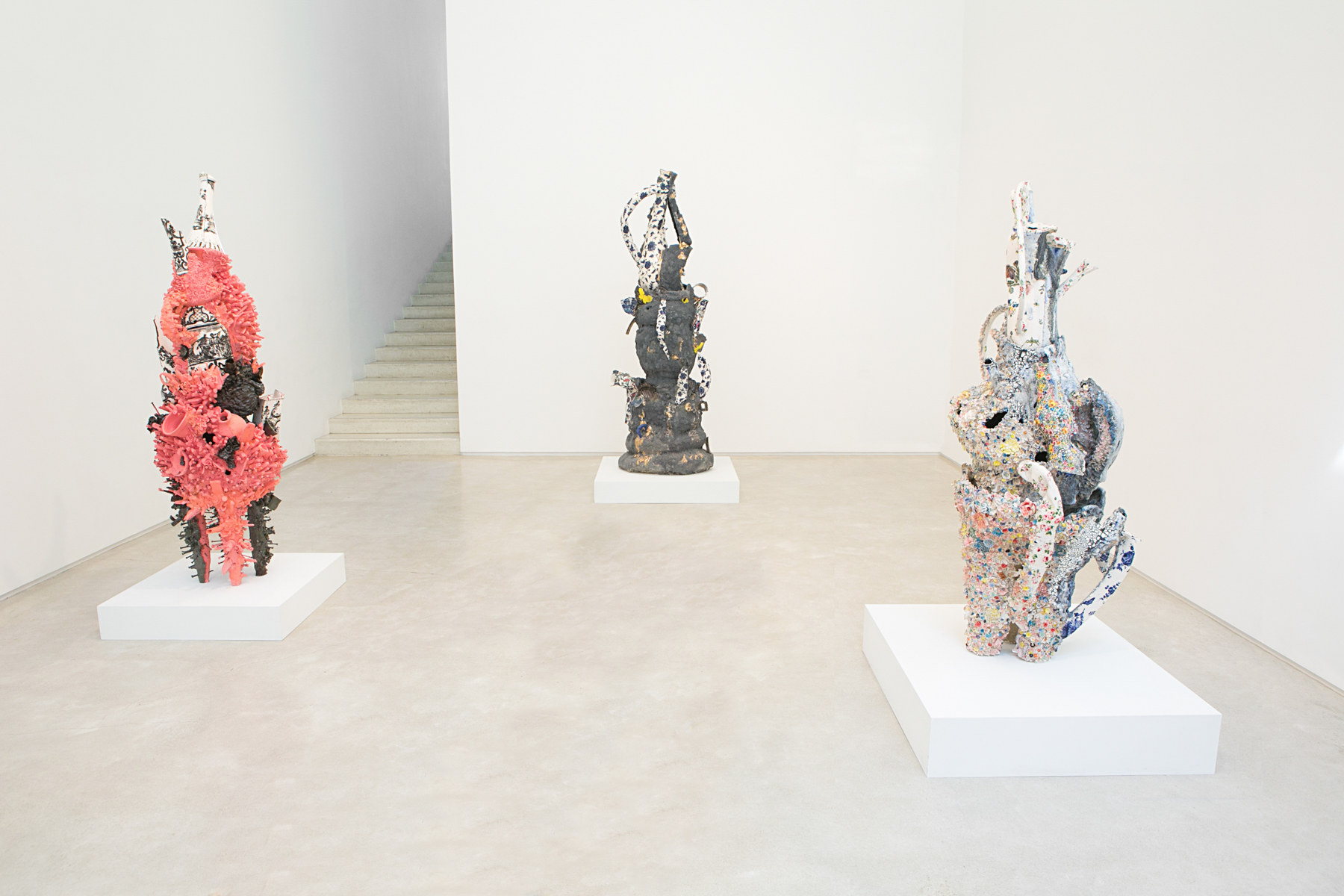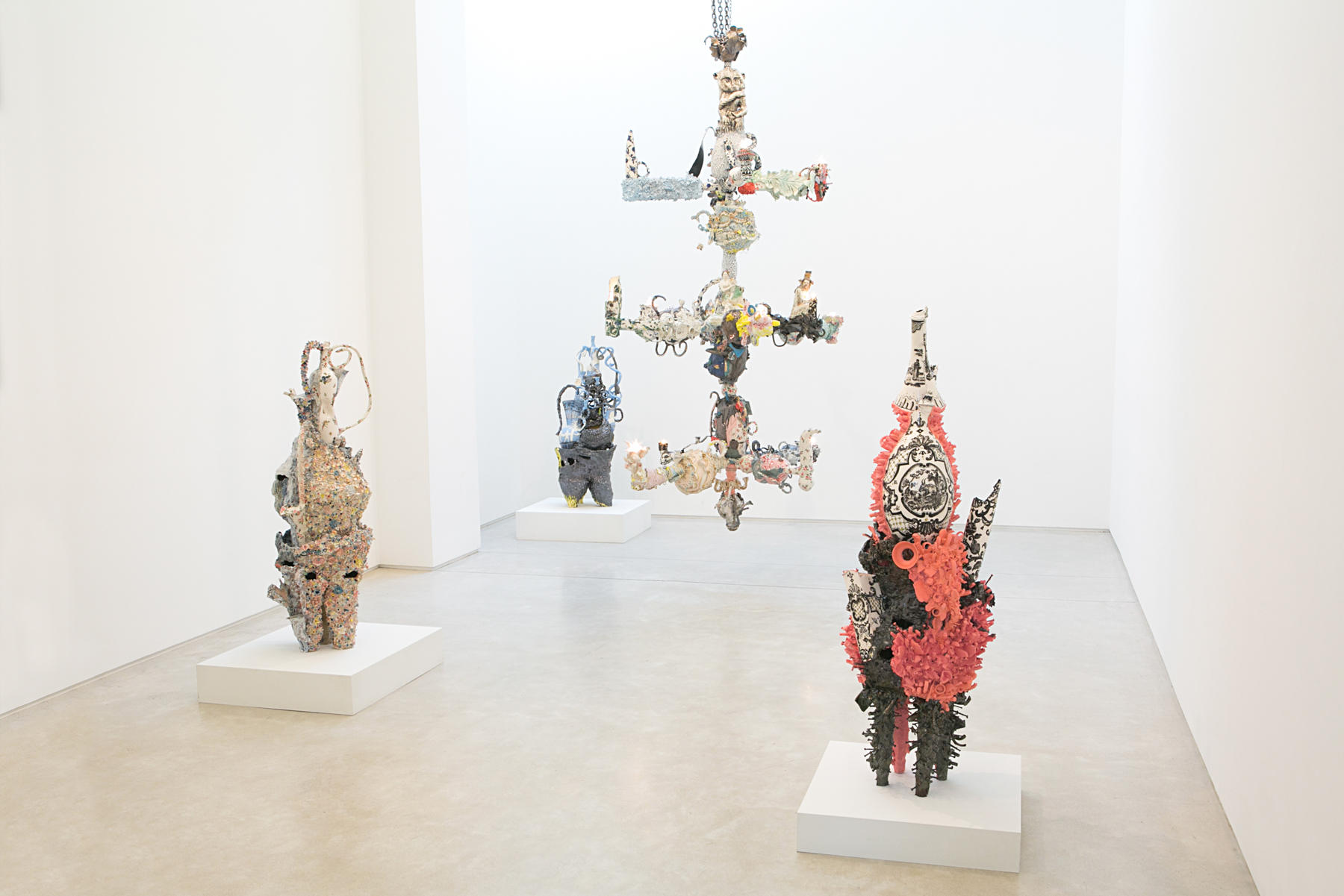 Salon 94 is pleased to present an exhibition of large-scale ceramic sculpture by New York based artist, Francesca DiMattio. Known for her canvases that bring together a cacophony of objects, architecture and painting traditions, DiMattio applies a similarly layered and non-hierarchical approach to sculpture. Where her paintings pair multiple languages culled from the history of Western painting, her sculptures draw from the equally rich tradition of ceramics, combining contrasting references and styles within each fluid construction.