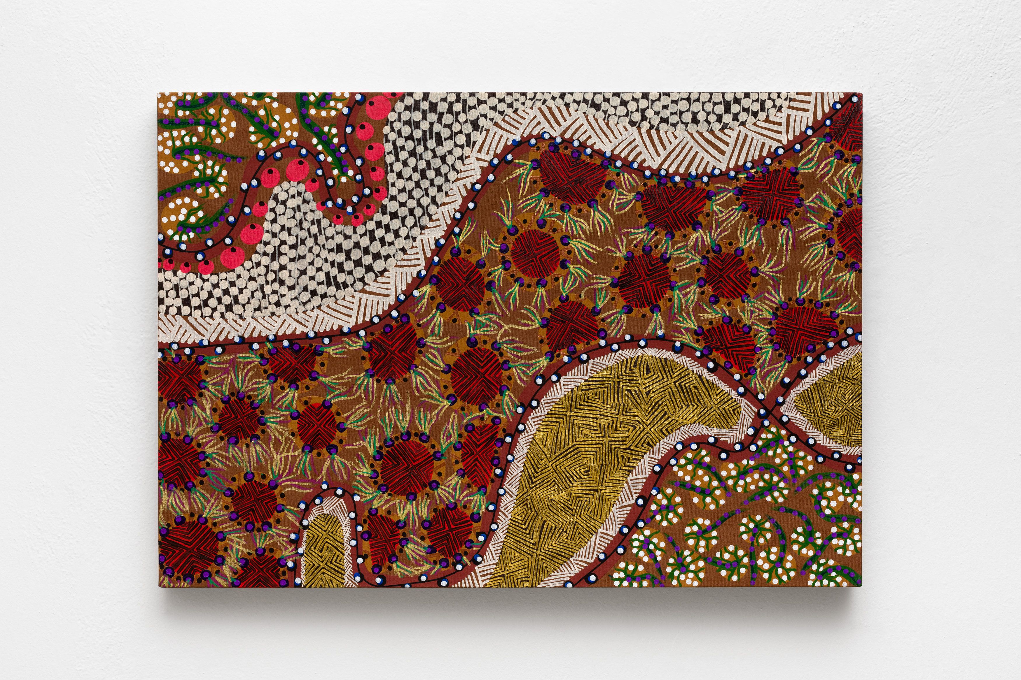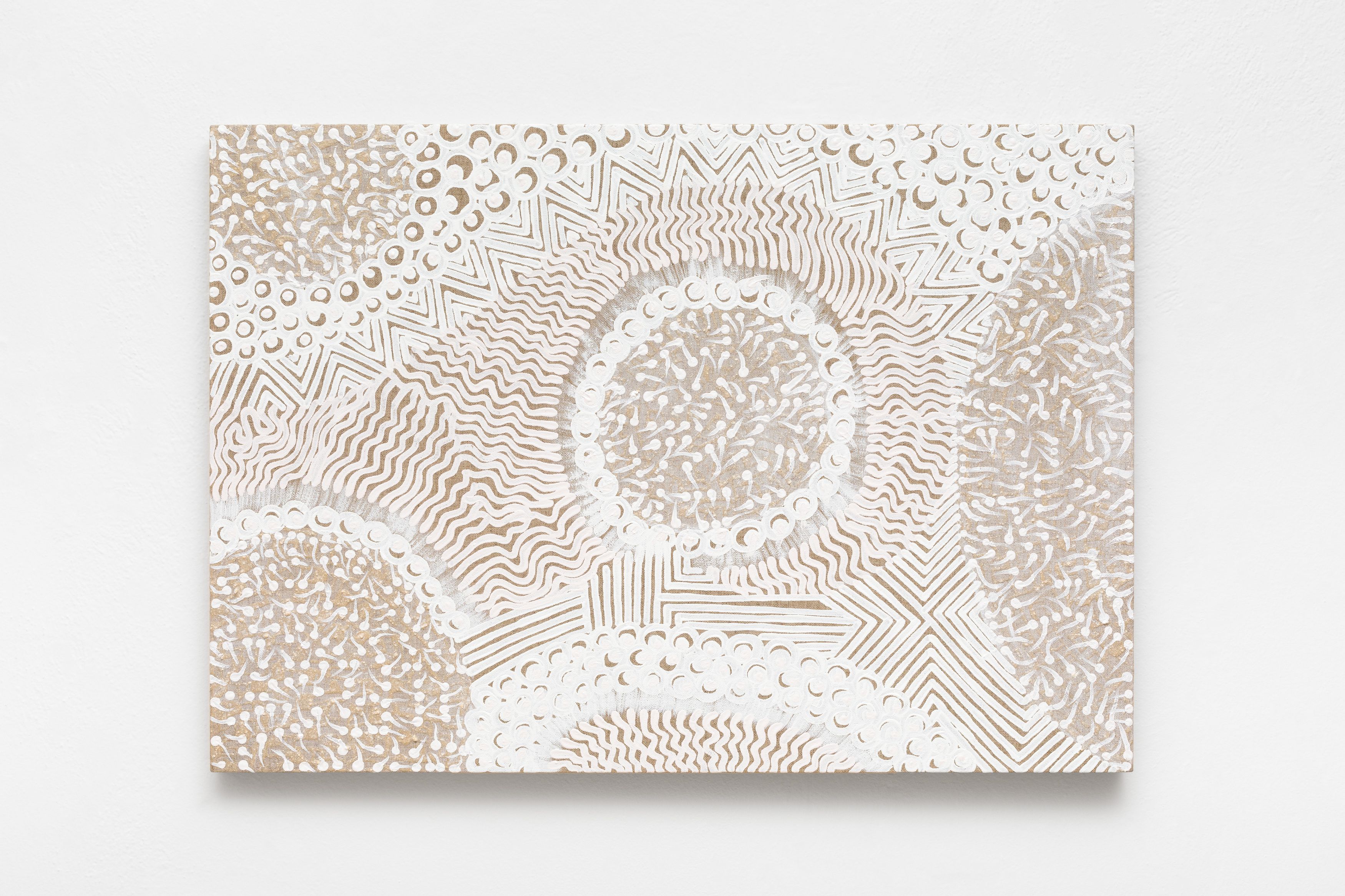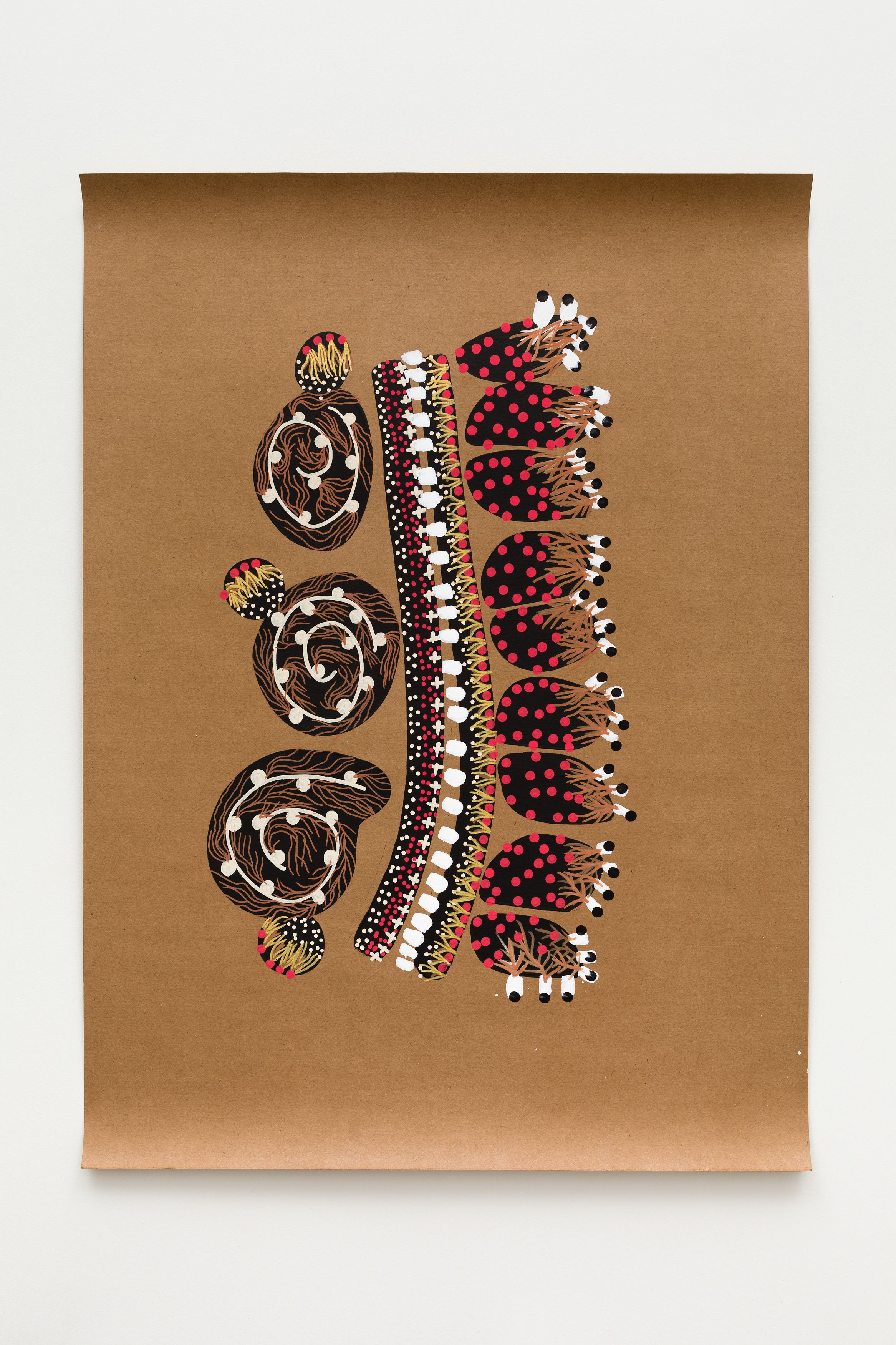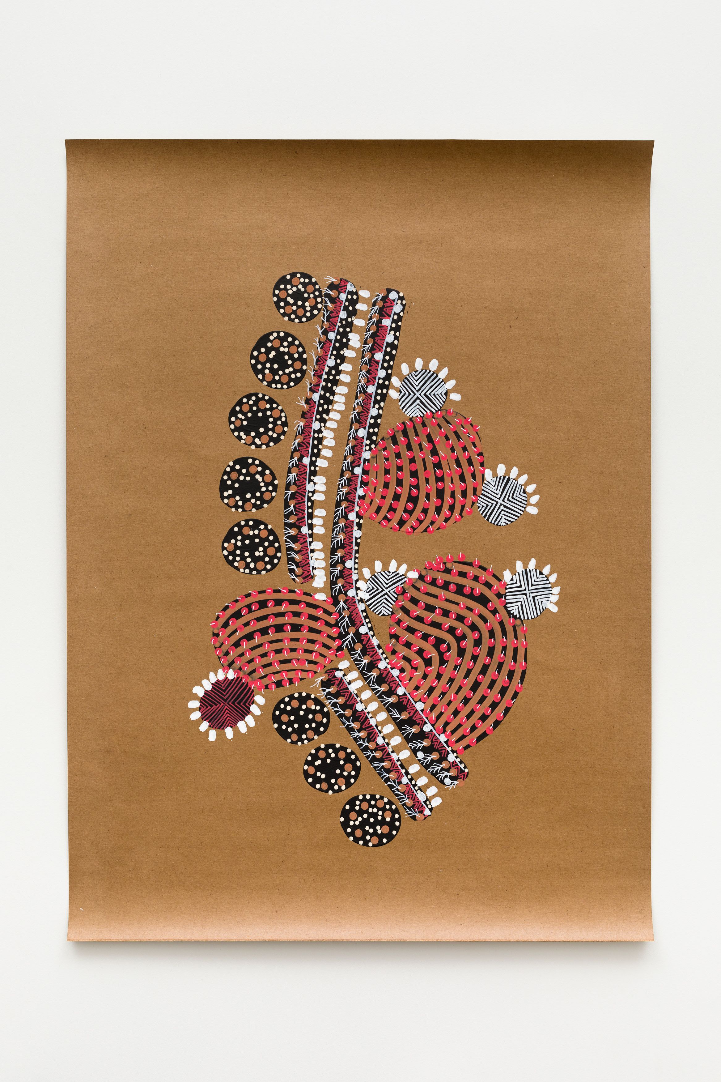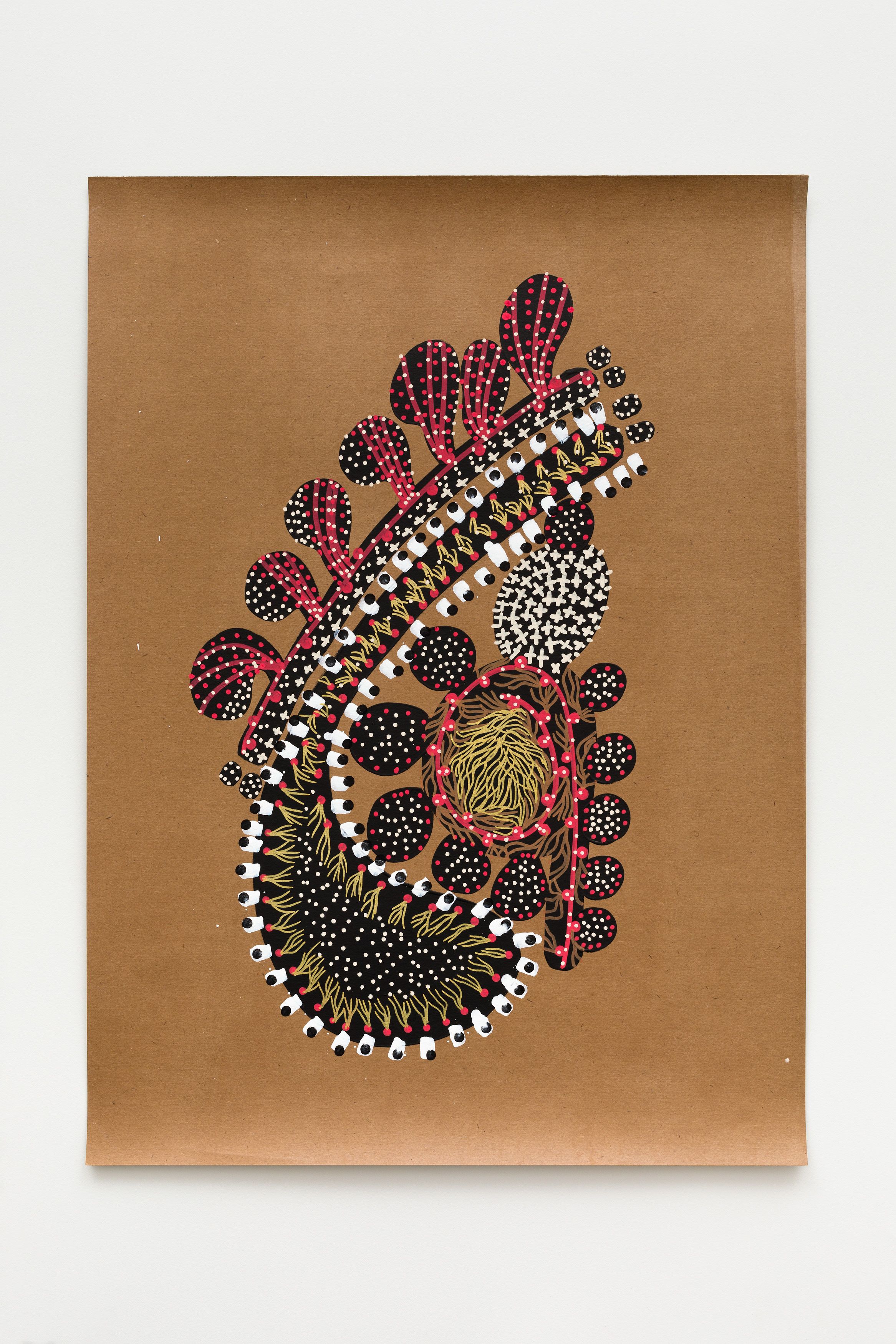 Aislan Pankararu was born in 1990 in Petrolândia, a small city in the interior of the state of Pernambuco and belongs to the indigenous Pankararu people of Northeastern Brazil. His work is informed by three streams: the Caatinga biome of Northeastern Brazil, the traditions and cultures—especially body painting—of his Indigenous Brazilian community, and his university training in medicine. The rich complexity of these simultaneous pursuits—how the body functions, how we heal, how we retain and honor communities and traditions, our relation to the outside, natural world—amalgamate knowledge traditions, patterning, and visual delight through each of the paintings and drawings in this exhibition, his first in the United States.