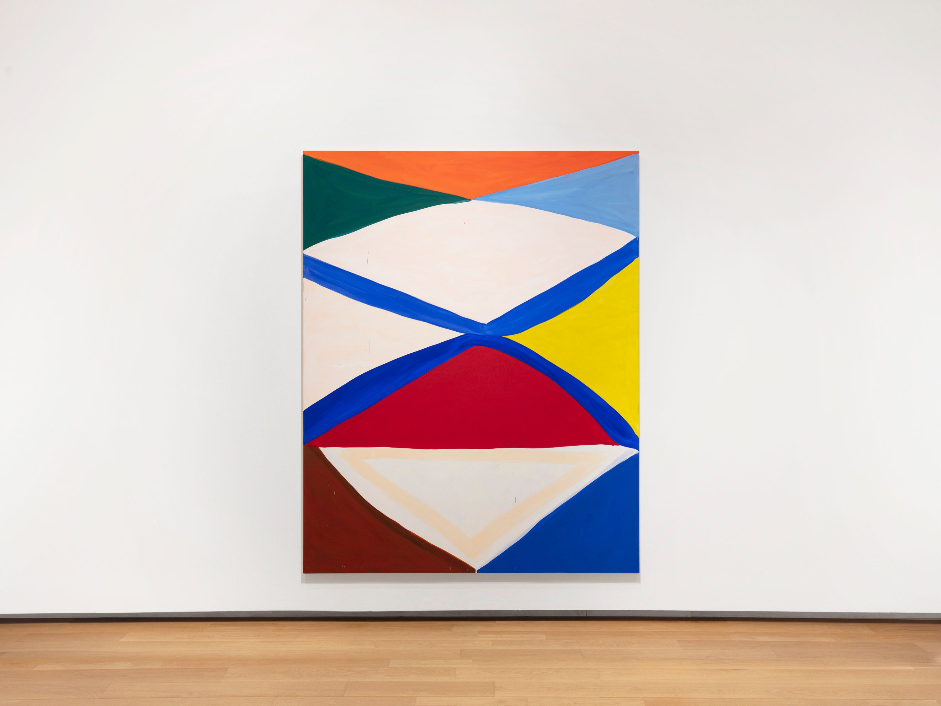 Literature and history also play important roles in Adams’s work, especially in her use of referential titles. For example, Cheops, 2018, which is included in this exhibition, refers to the ancient Egyptian pharaoh for whom the Great Pyramid of Giza was built, and the painting’s composition echoes pyramidal forms. Such references offer viewers a literary path of entry into her art.