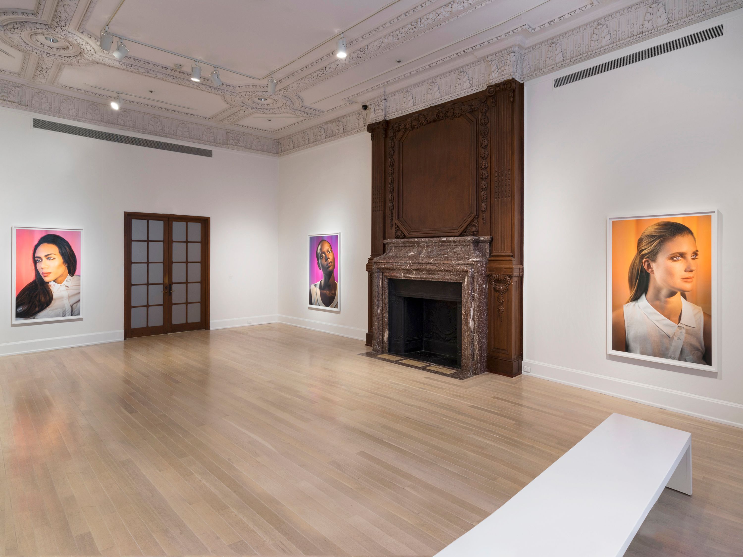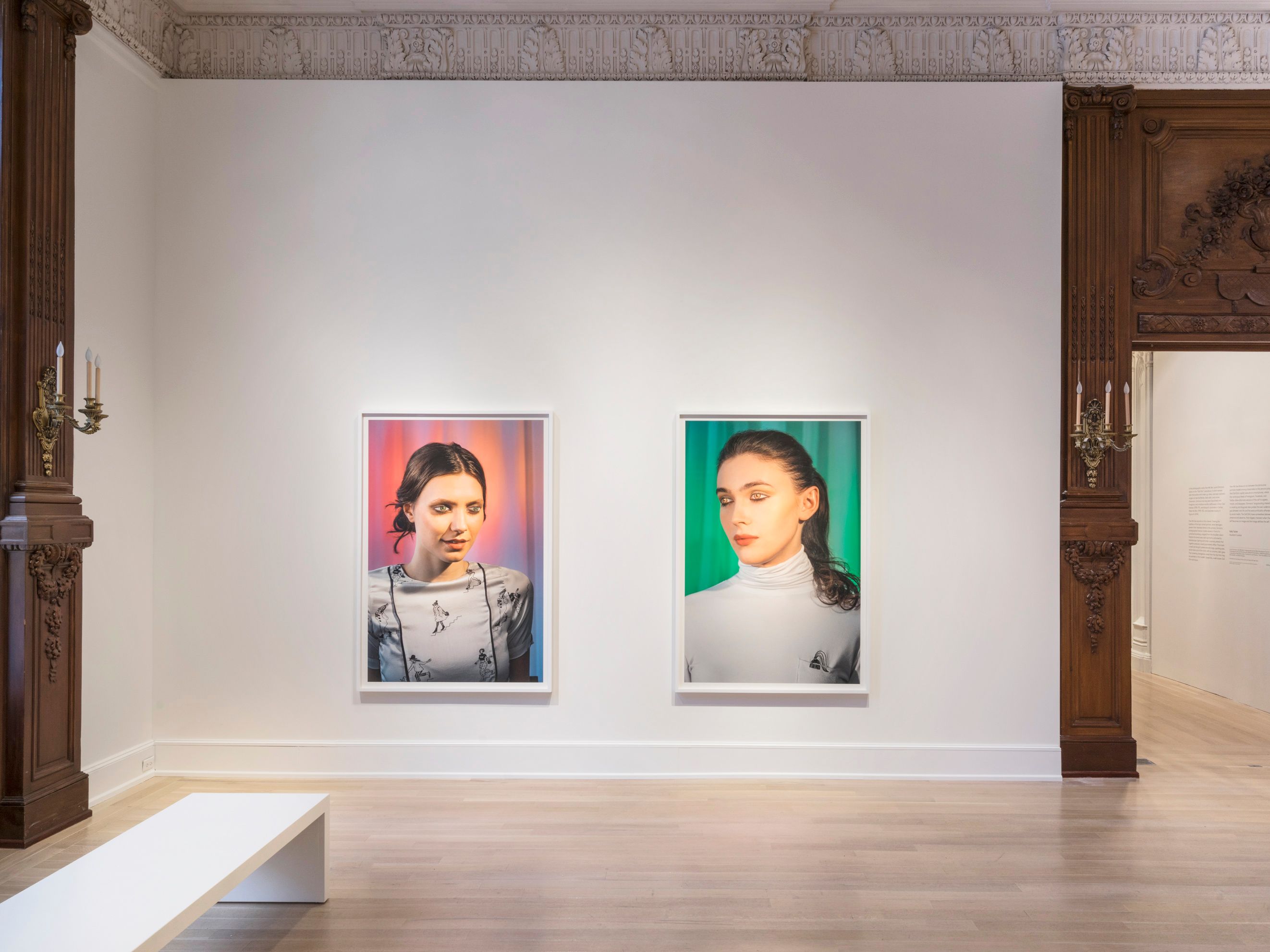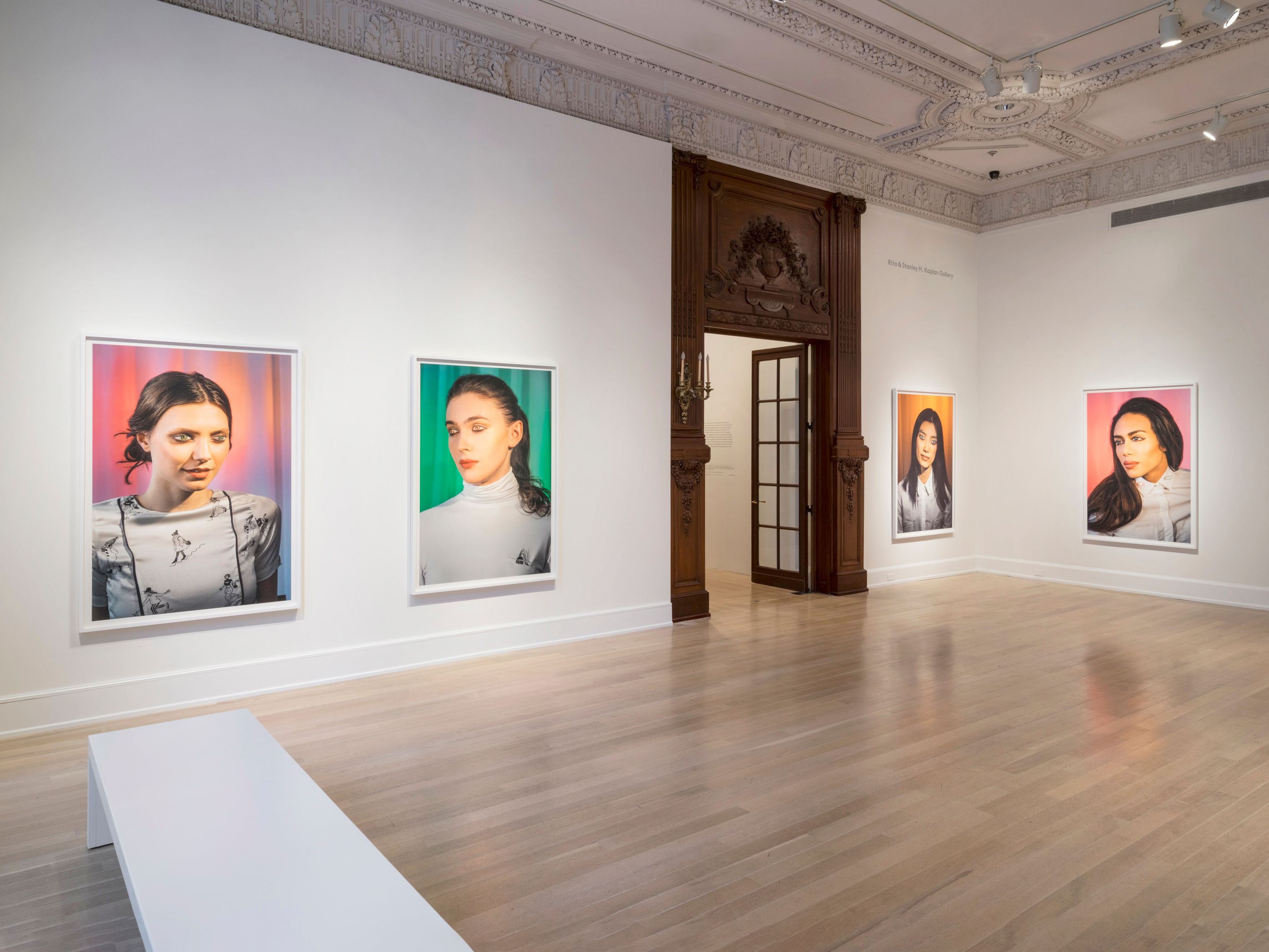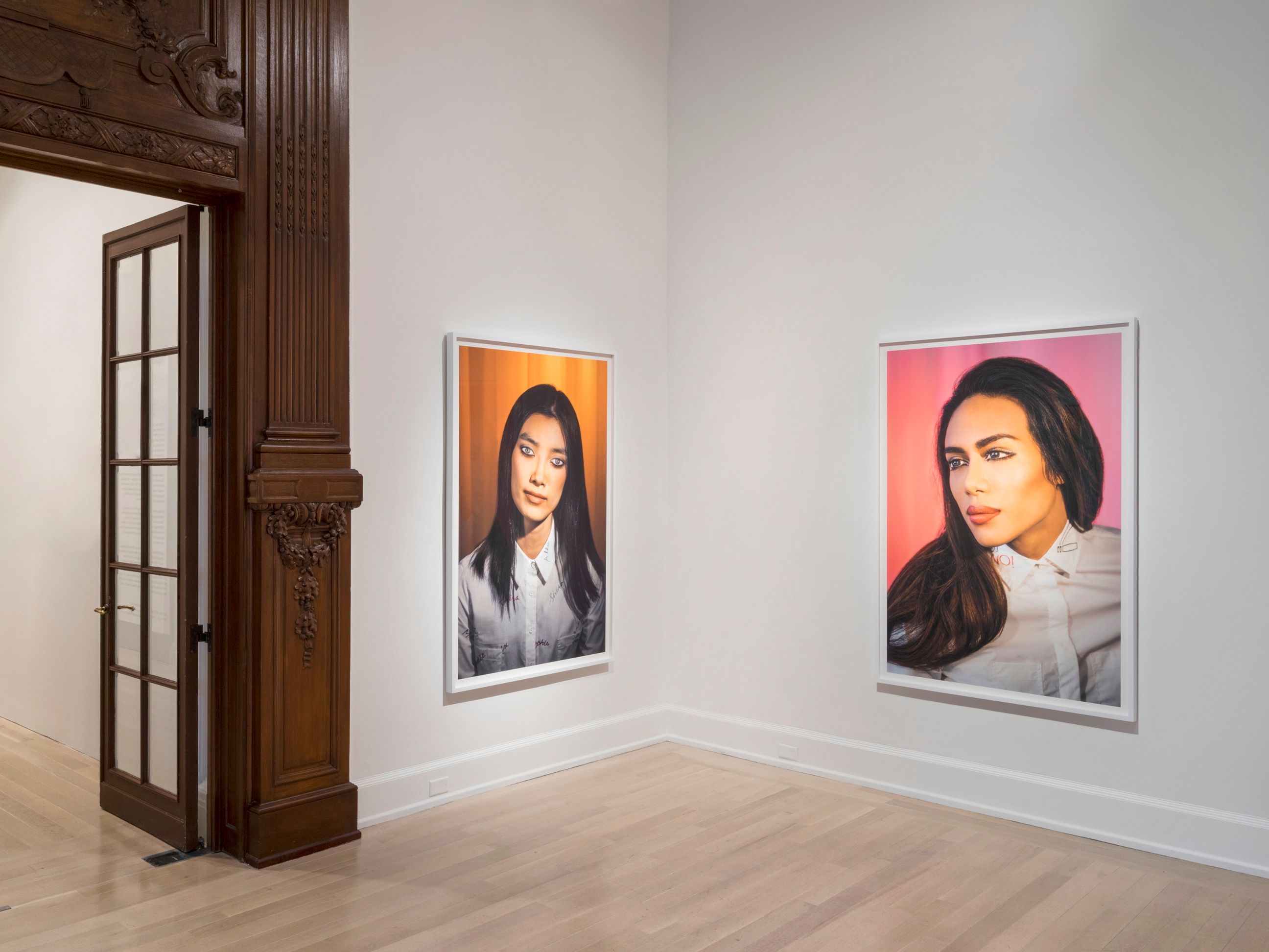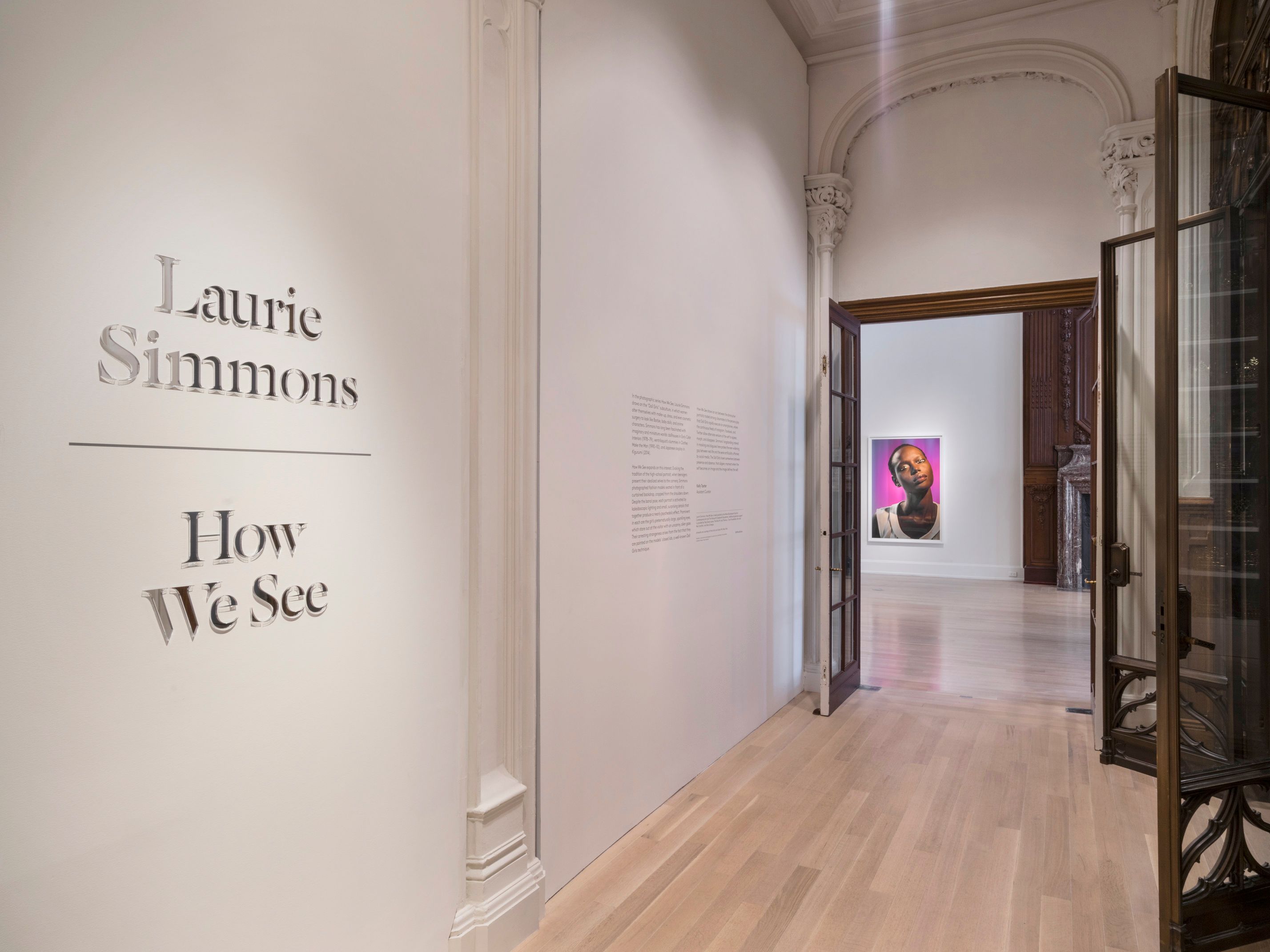In How We See, Laurie Simmons draws on the “Doll Girls” subculture of people who alter themselves with makeup, dress, and even cosmetic surgery to look like Barbie, baby dolls, and anime characters. Evoking the tradition of the high-school portrait — when teenagers present their idealized selves to the camera — Simmons photographed fashion models seated in front of a curtain, cropped from the shoulders down.