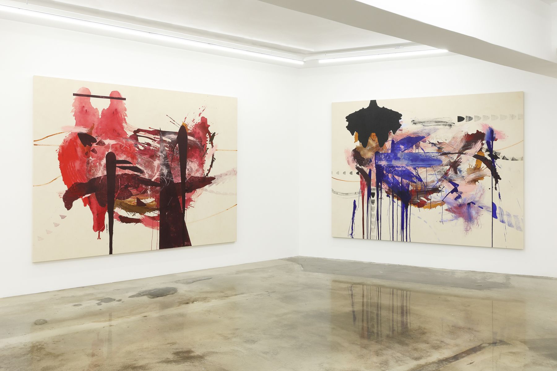 The show’s title In The Belly of the Whale references the Jonah myth (in the Hebrew Bible, Christian Bible and Koran) in which a man (Jonah), reluctant to serve his master (God), is consumed and imprisoned by a giant sea creature. Neel’s interest in this story stems from the visual, tactile metaphor of a body trapped within a body; a mind trapped within a mind. This layered and doubled state of suspension is part of what Neel describes as a “transcultural human attraction to transformation myths”. Peeling the layers of myth, Neel’s paintings, embedded with nature’s clues to the hidden language of abstraction, encourage us to move around its choreography.