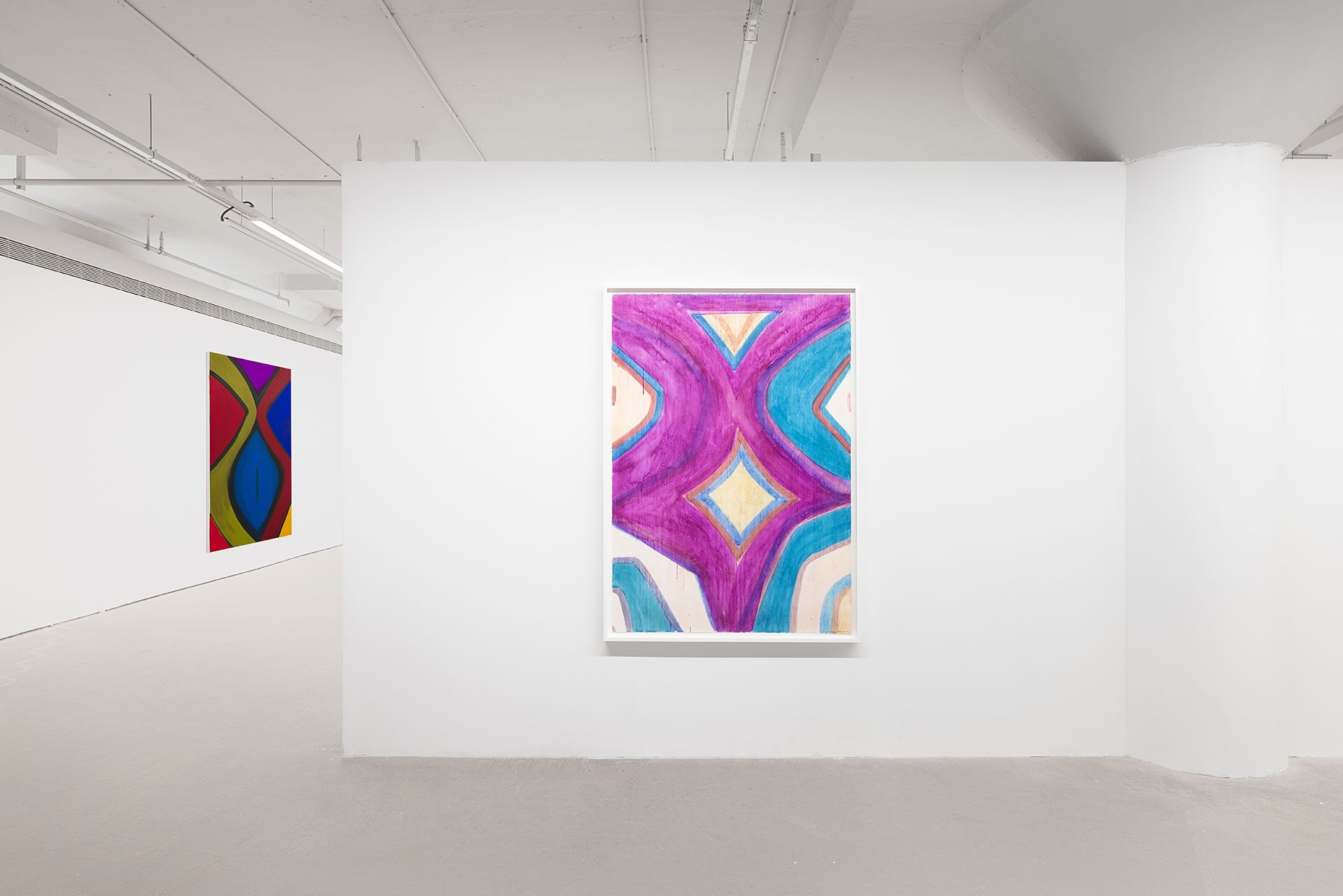 Poetry is a crucial component of Adams’s artistic practice, intertwining language and painting, opening a pathway through its ineffable sensory experience. In the Garden of My Memory is derived from Ted Berrigan’s poem Tambourine Life. Perhaps this phrase struck Adams in her studio on a summer afternoon and leapt off the page. Here, it functions as a cryptic invitation, inviting viewers to journey through the artist’s vibrant realm of memories constructed through colors. Like poetry, Adams’s artworks don’t provide specific imagery or narratives, yet they vividly convey her perspectives and contemplation of the world. Impressions drawn from nature, music, fabrics, architecture, and literature are transformed into dynamic colors, humming with the physical resonance of individual existence through the canvas as if its structure were a kind of grammar, and light and shadow serve as its tones. These pieces traverse the boundaries of diverse logical fields, directly reaching the channels of individual senses.