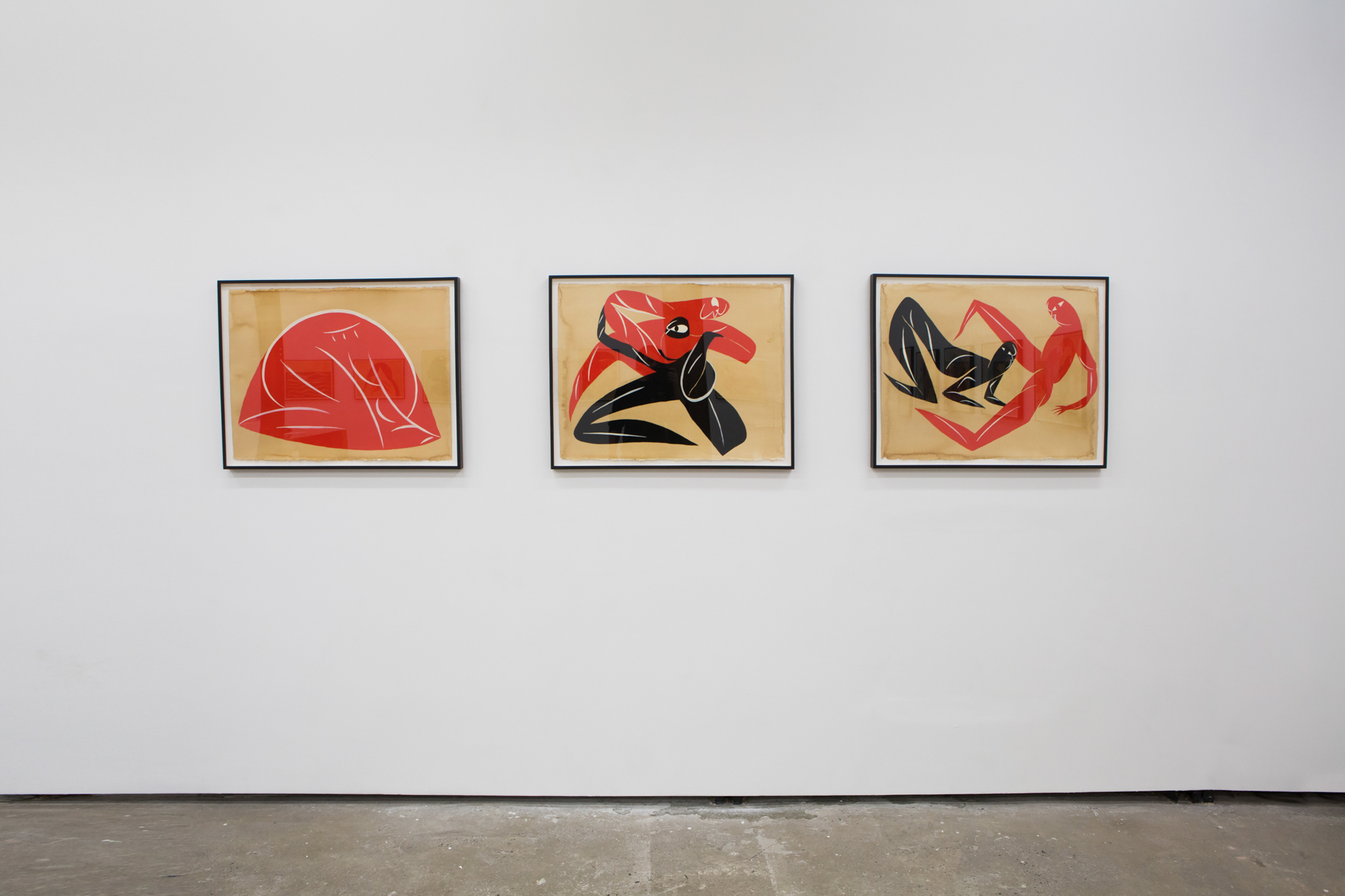 On its face, Musson’s new body of work is unabashedly old-fashioned: a series of intimate coffee-stained gouaches that tackle both the negative currents in the zeitgeist—including violence and aggression--and his own personal demons. In these drawings, the artist establishes a powerful personal lexicon; call it Haring meets Matisse. The sinuous interlocked forms in Demon All Day, done in primal black and red, resemble both ancient hieroglyphics and newly-minted alphabet letters.