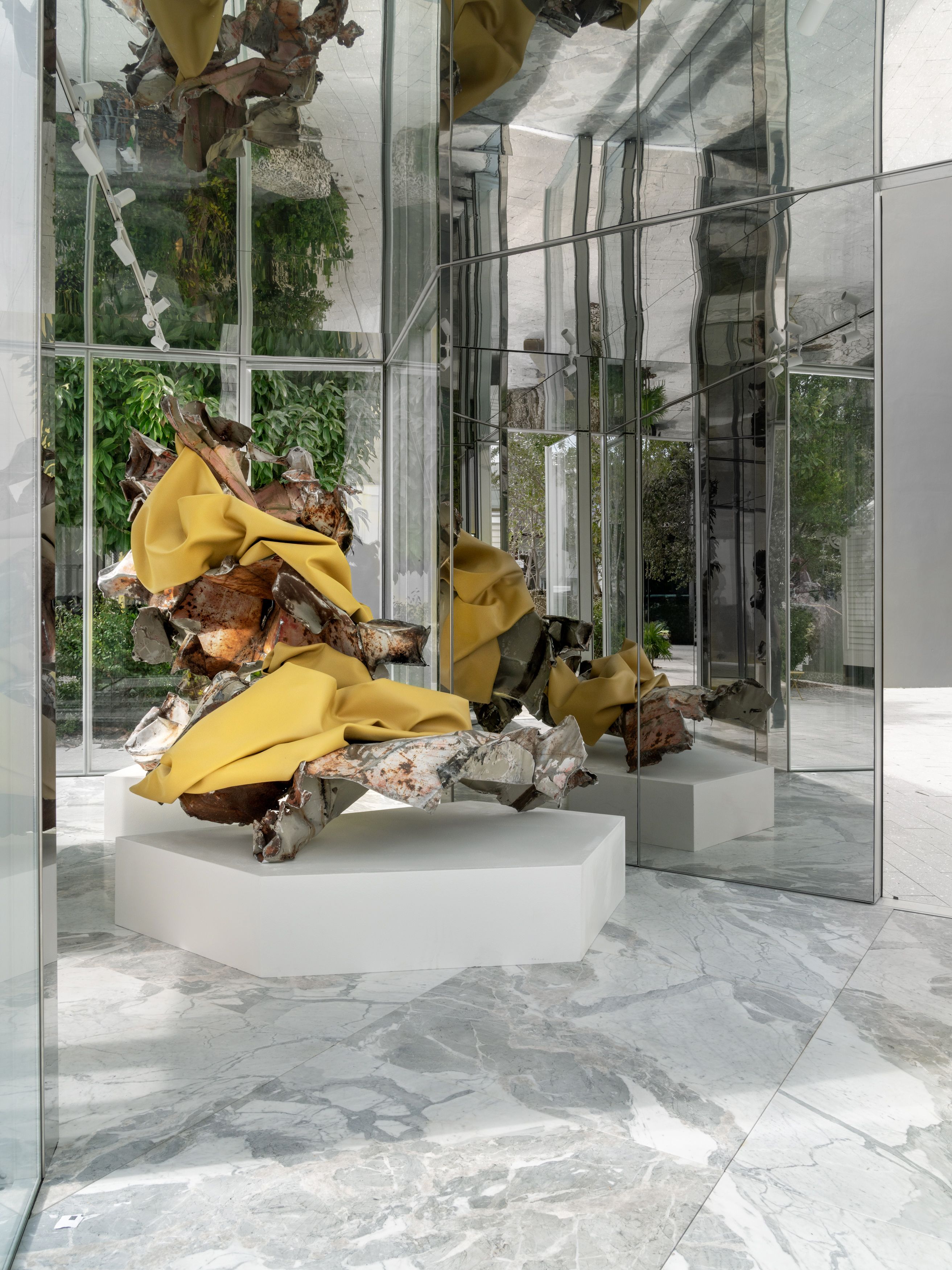 The 10-foot-long sculpture is made up of the final piece of a shipping container Yanko broke apart and used in No More Drama, her installation spanning 70 feet at The Brooklyn Museum (on view until July 2024). Here, Soul Talk is a reclining sculpture in full view, day and night, in a room of her own.