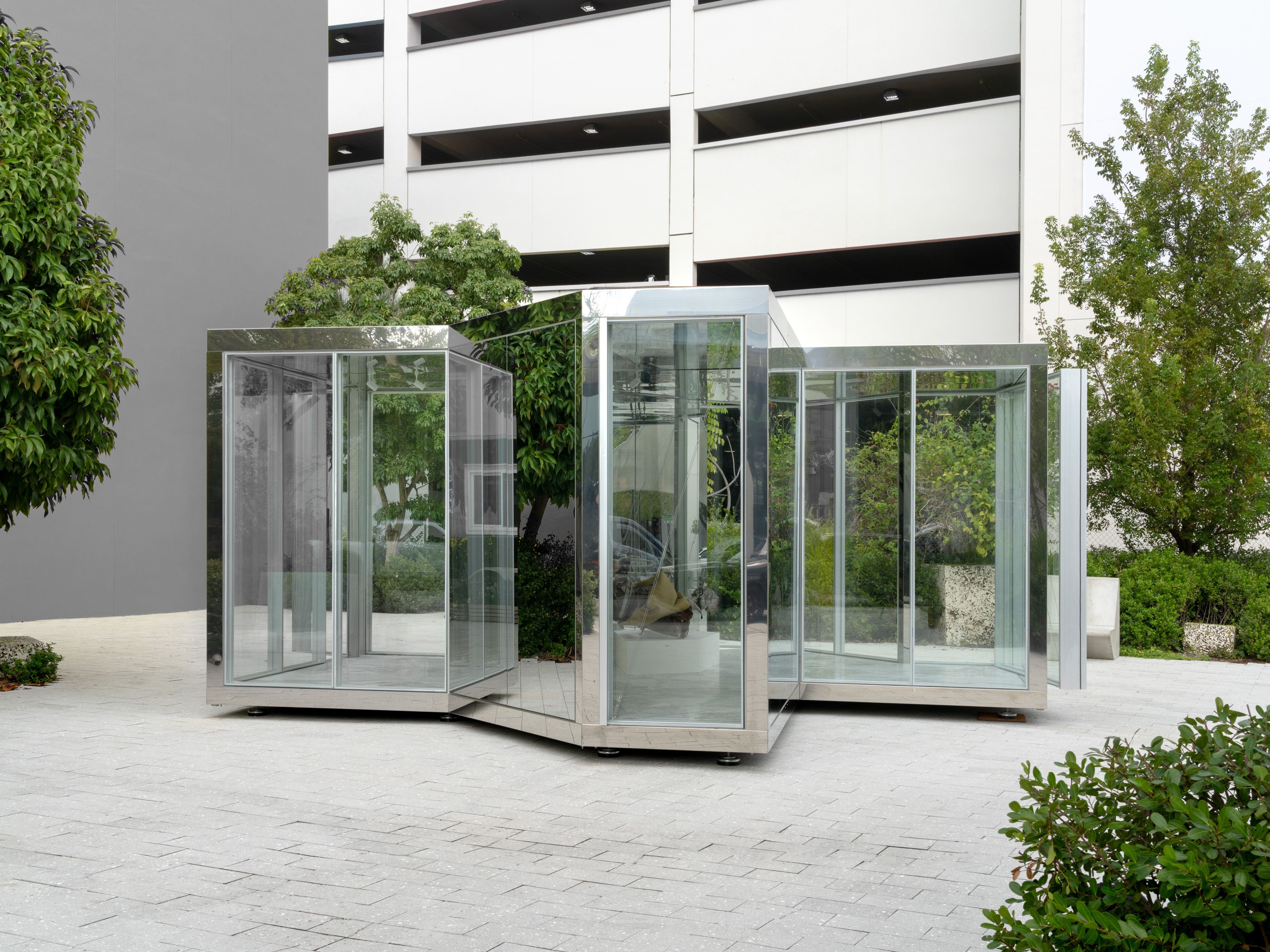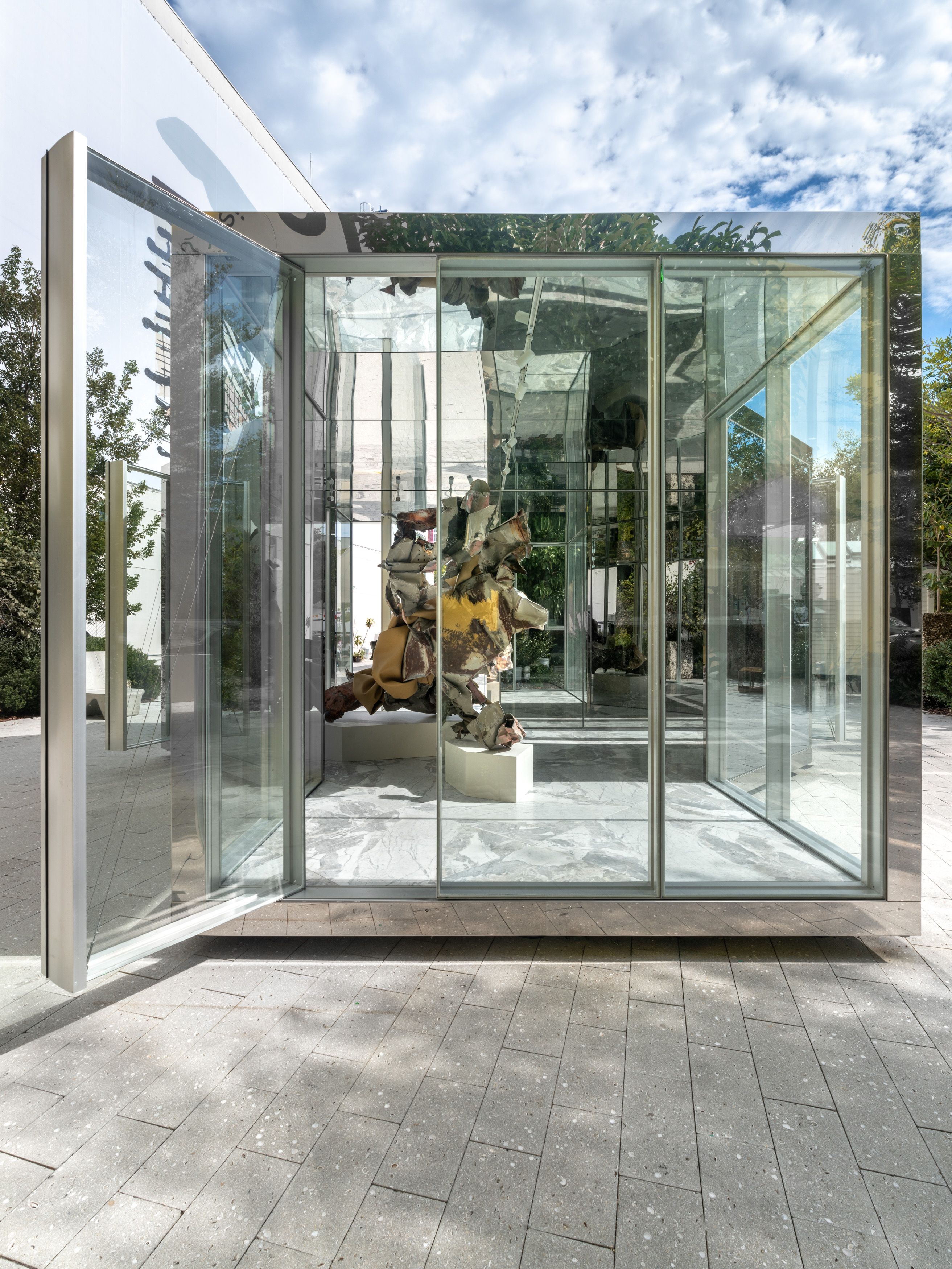 A composition of perfect geometry transcending the traditional boundaries of architecture and art, the Stardust Pavilion is an inaugural work revealed in the Miami Design District in December 2023 as a collaborative and immersive art installation. Conceived by Flare, a newly launched design studio helmed by architects Alessandra Cianchetta and Veruska Vasconez, Stardust Pavilion is the first of several bespoke, collectible pavilions of shimmering glass and steel. Merging the boundaries between art, space, experience, and architecture, the Stardust Pavilion series is a set of intimate structures designed to allow a deeply personal experience with artworks exhibited within, and their surroundings.