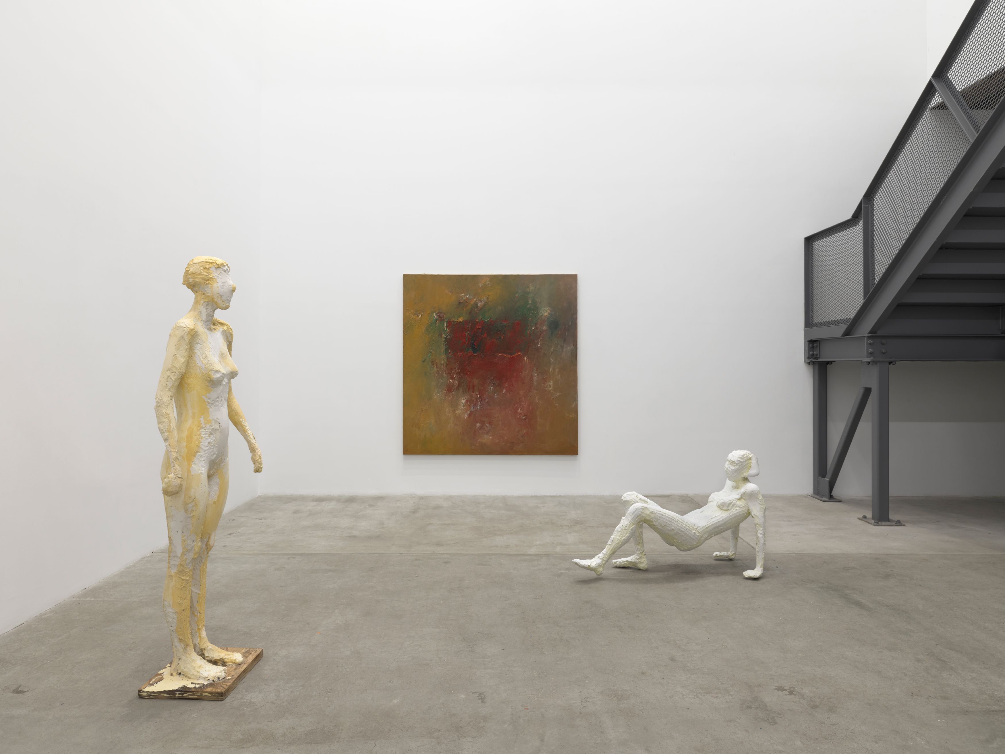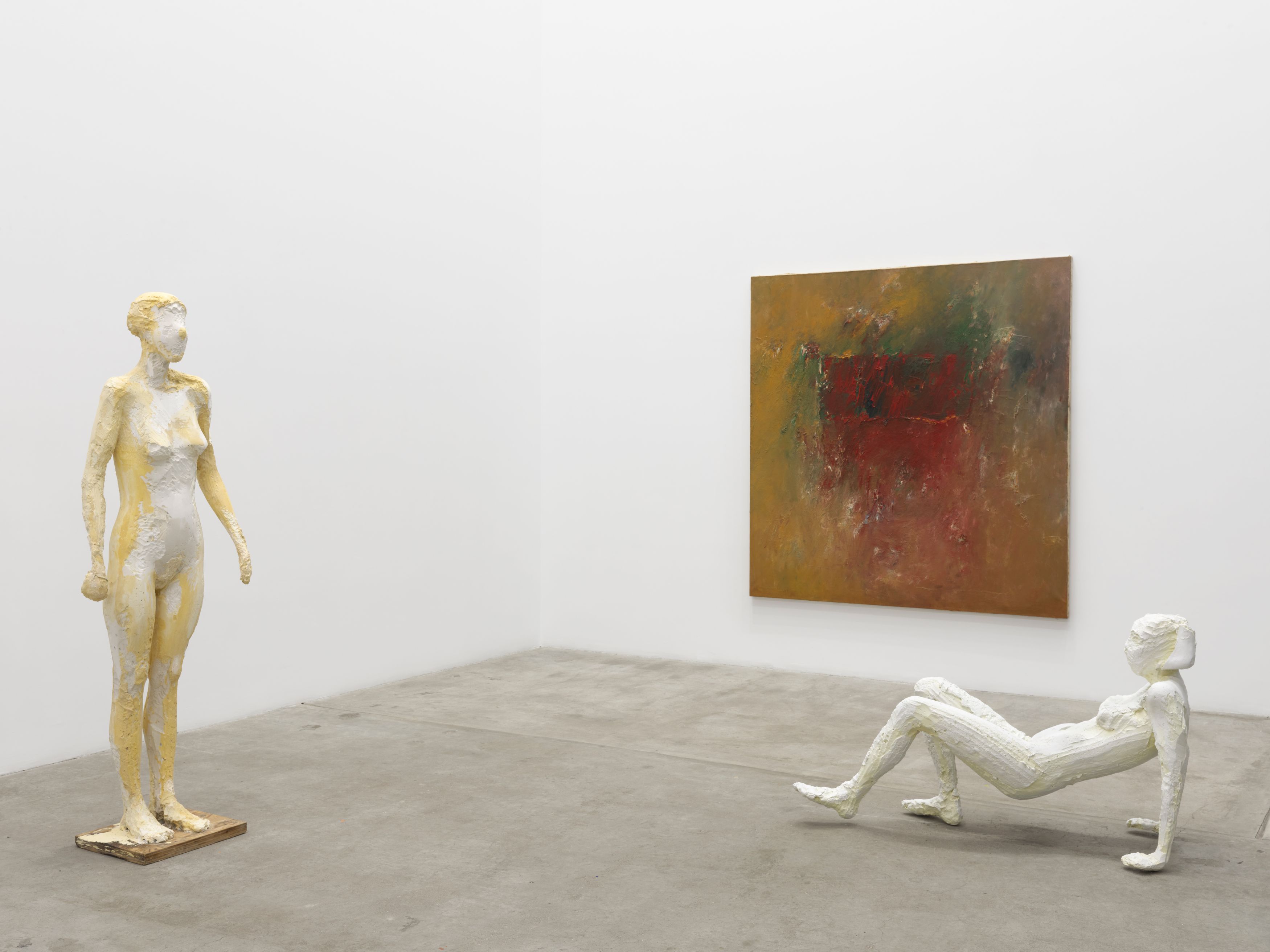 As Abstract Expressionism dominated the 1950s, Manuel Neri insisted on the figure, treating the human form as a structure similar to that of a canvas—exploring weight, gesture, and the persistence of touch—a commitment that would define his practice for the next four decades. His figures embody every scrape, gouge, and splash of paint as evidence of their own becoming. These are bodies built up and carved away, creating haptic surfaces that record Neri's hand at work. Color functions not as decoration but as structure—slashes of blue and ochre emphasize volume and movement, lending painted bronze or plaster a surface dynamism.