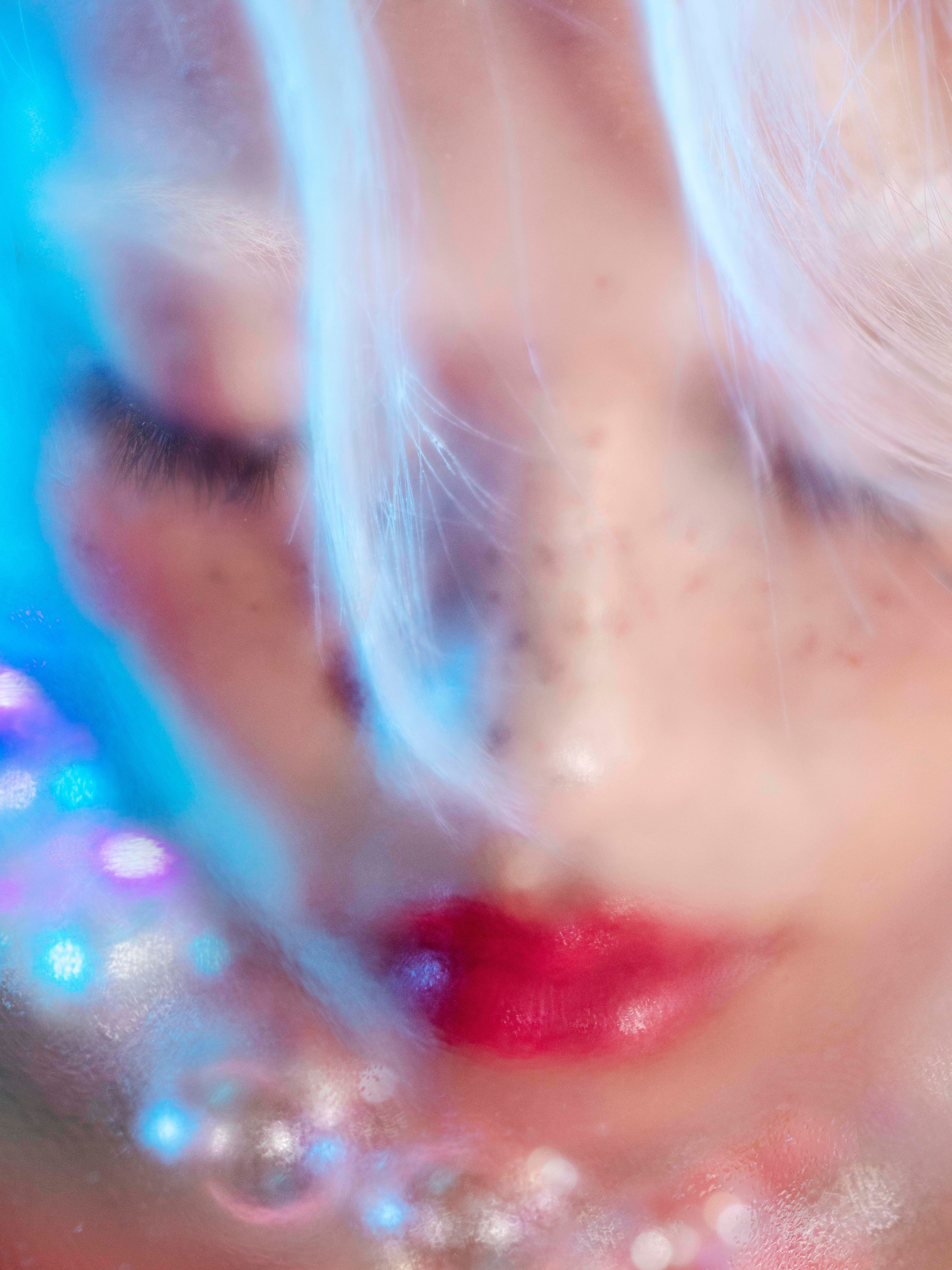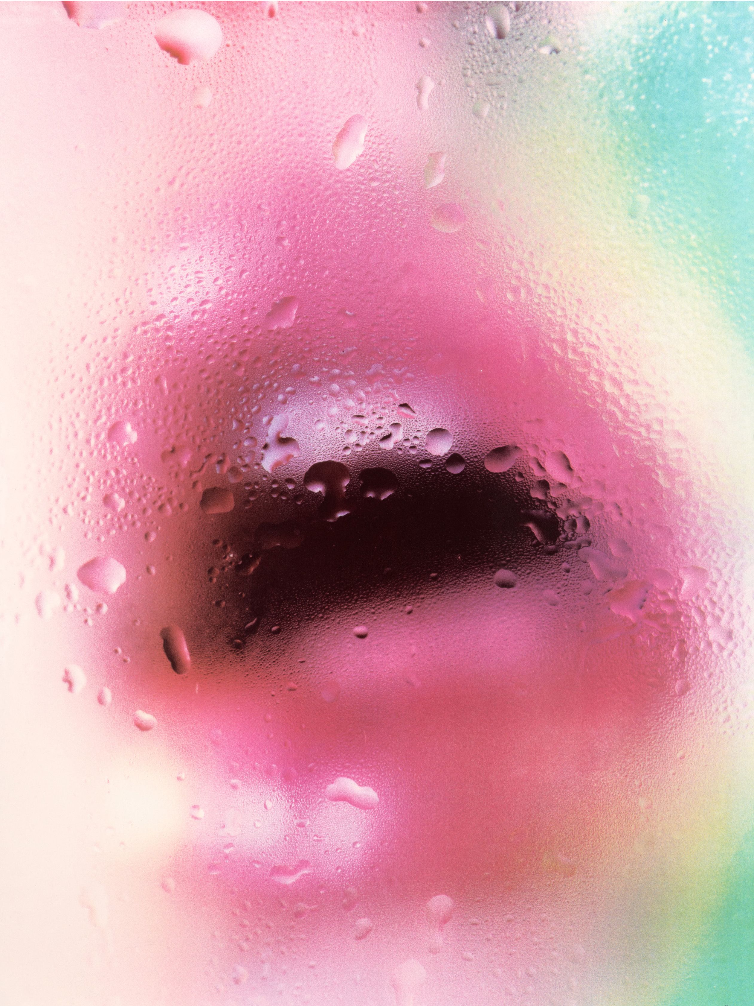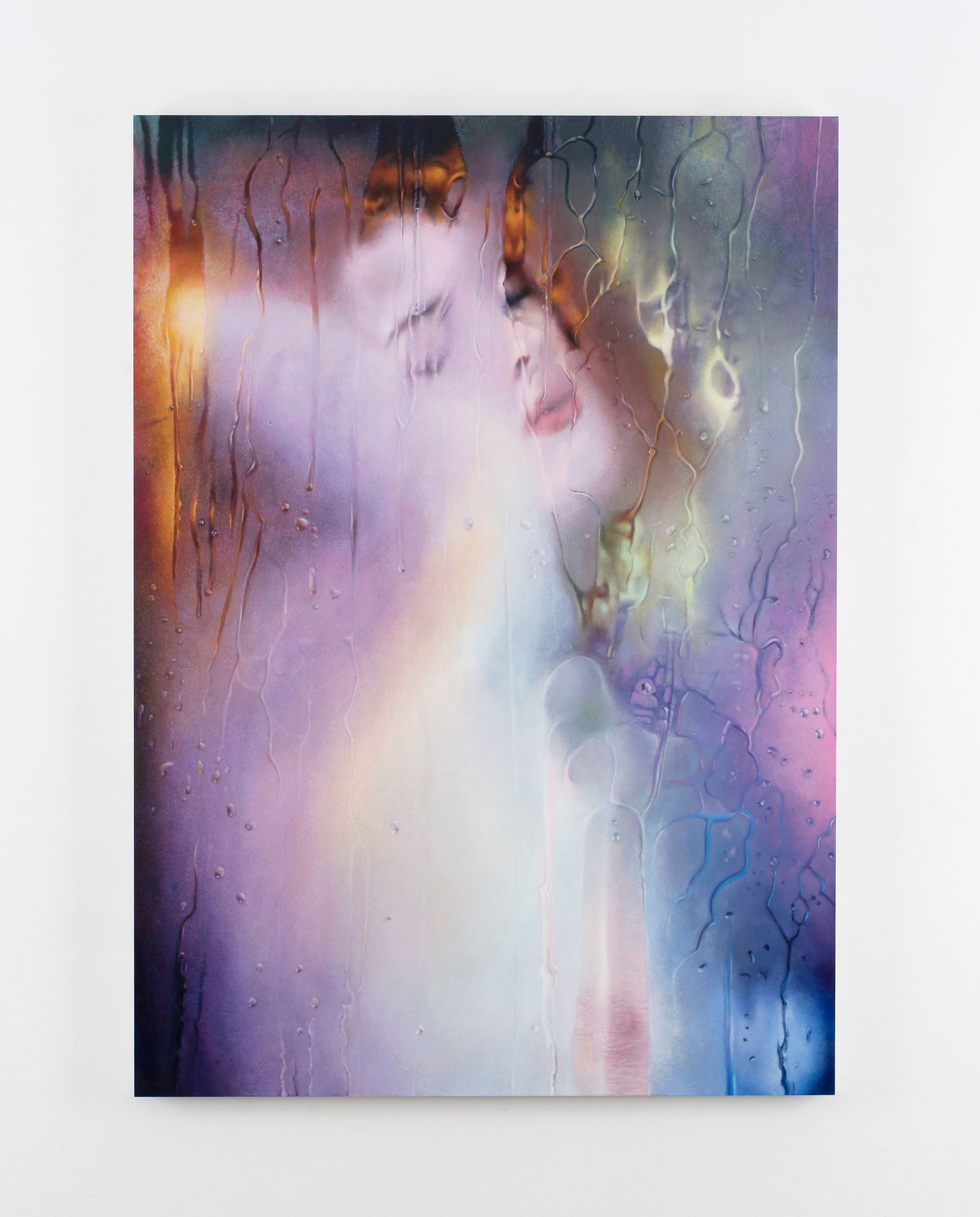 In addition to paintings and photographs, the exhibition features a series of new multimedia sculptures including Thirsty (Drinking Fountain) (2023). Custom-made from stainless steel, these drinking fountains house Minter’s recent video Thirsty (2022) in their cloudlike resin basins where closely cropped lips and tongues manipulate glitter and pearls along with spit, hair, and grime. This is Minter’s second sculpture to date following her 2017 custom-designed sculptural car made by retrofitting an AMC Pacer with surround-sound video of her now iconic Green Pink Caviar (2009). Like its predecessor, Thirsty (Drinking Fountain) marries functionality with design to create a sculpture that is operational, interactive, and otherworldly. Surrounding these sculptures will be works that elaborate on the themes suggested in Thirsty, including the monumental painting Word of Mouth (2020–22) and a new silkscreen print Hush (2023).