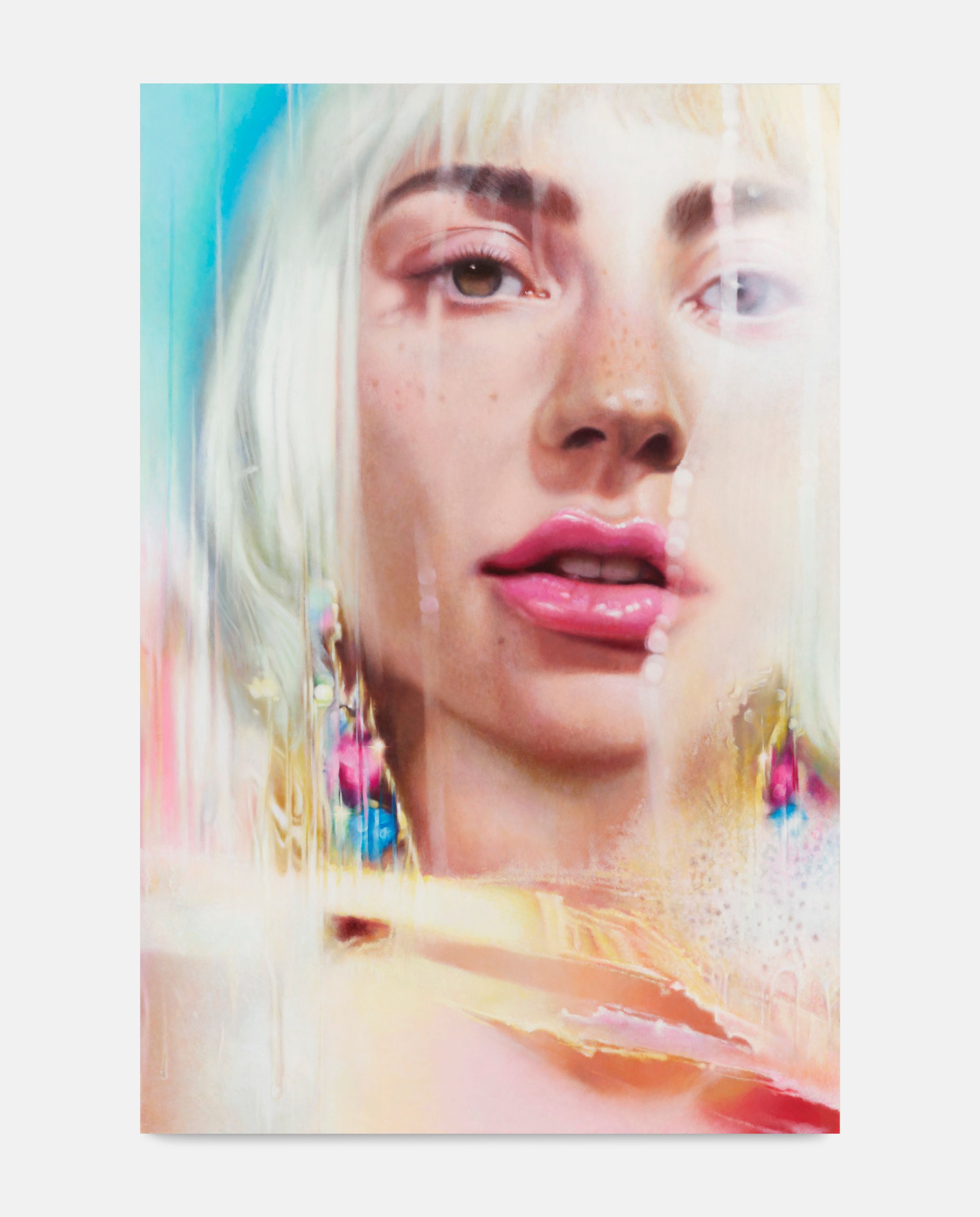 In a first for Minter’s painting practice, the exhibition debuts portraiture. For centuries, portraits have been the mainstay of the elite. Most portraits that grace the walls of museums, boardrooms, and private homes perpetuate a distorted view of history as remarkable for its absences as for its role in shaping mainstream political and civic discourse. Minter charges into this history, selecting subjects who have made impactful shifts in the cultural landscape. Previously, Minter has worked with models whose physical attributes—from freckles to body hair—celebrate unique forms of beauty and reassess what is often overlooked or erased from contemporary beauty and glamour imagery. In this first group of portraits, Minter hand-picked her subjects to include artists, social commentators, activists, and performers she admires, each of whom have contributed to our cultural conversations around feminism, race, and gender politics. These celebrated icons include Roxane Gay, Monica Lewinsky, Mickalene Thomas, Gloria Steinem, Glenn Ligon, and Lady Gaga.