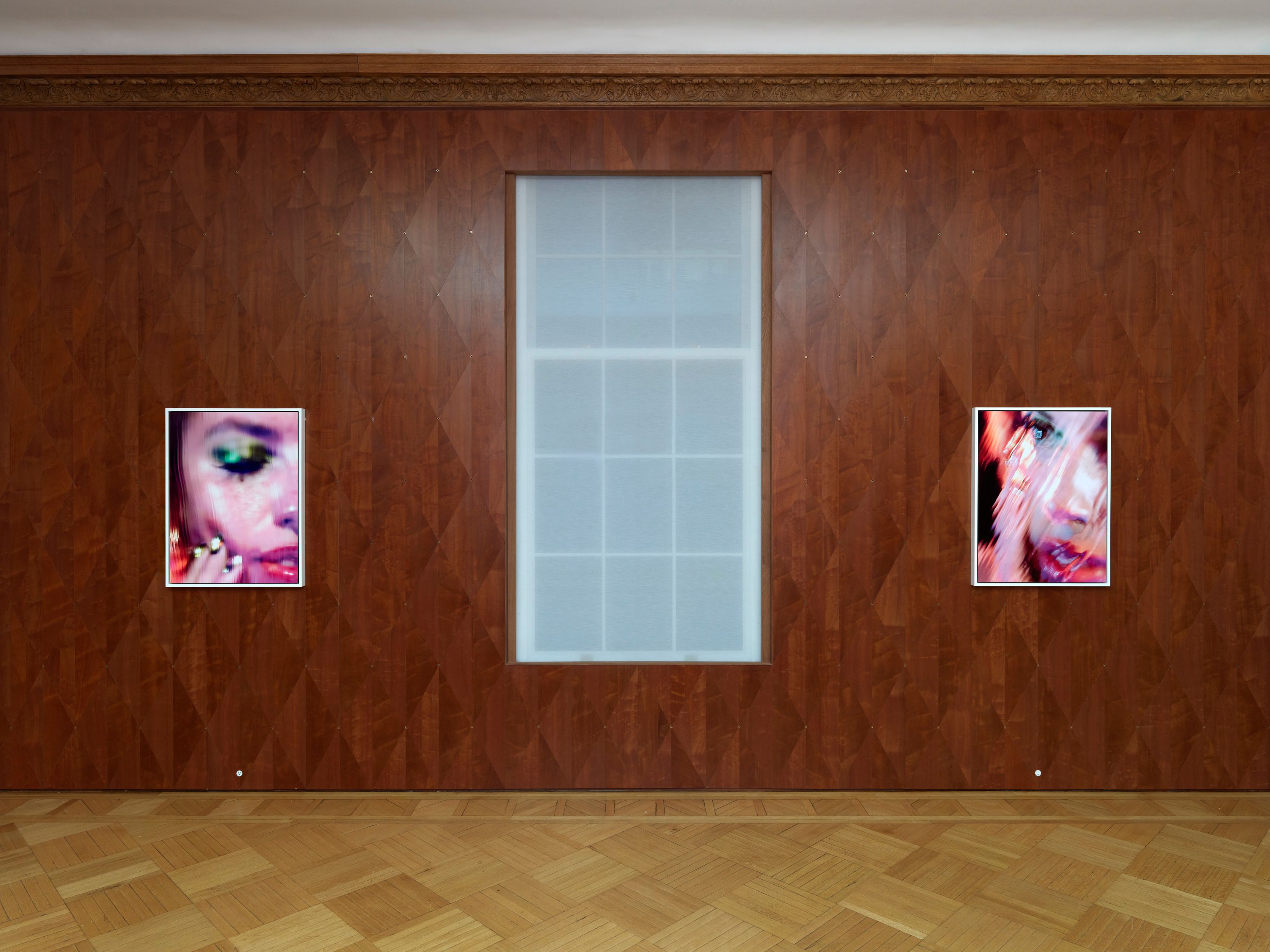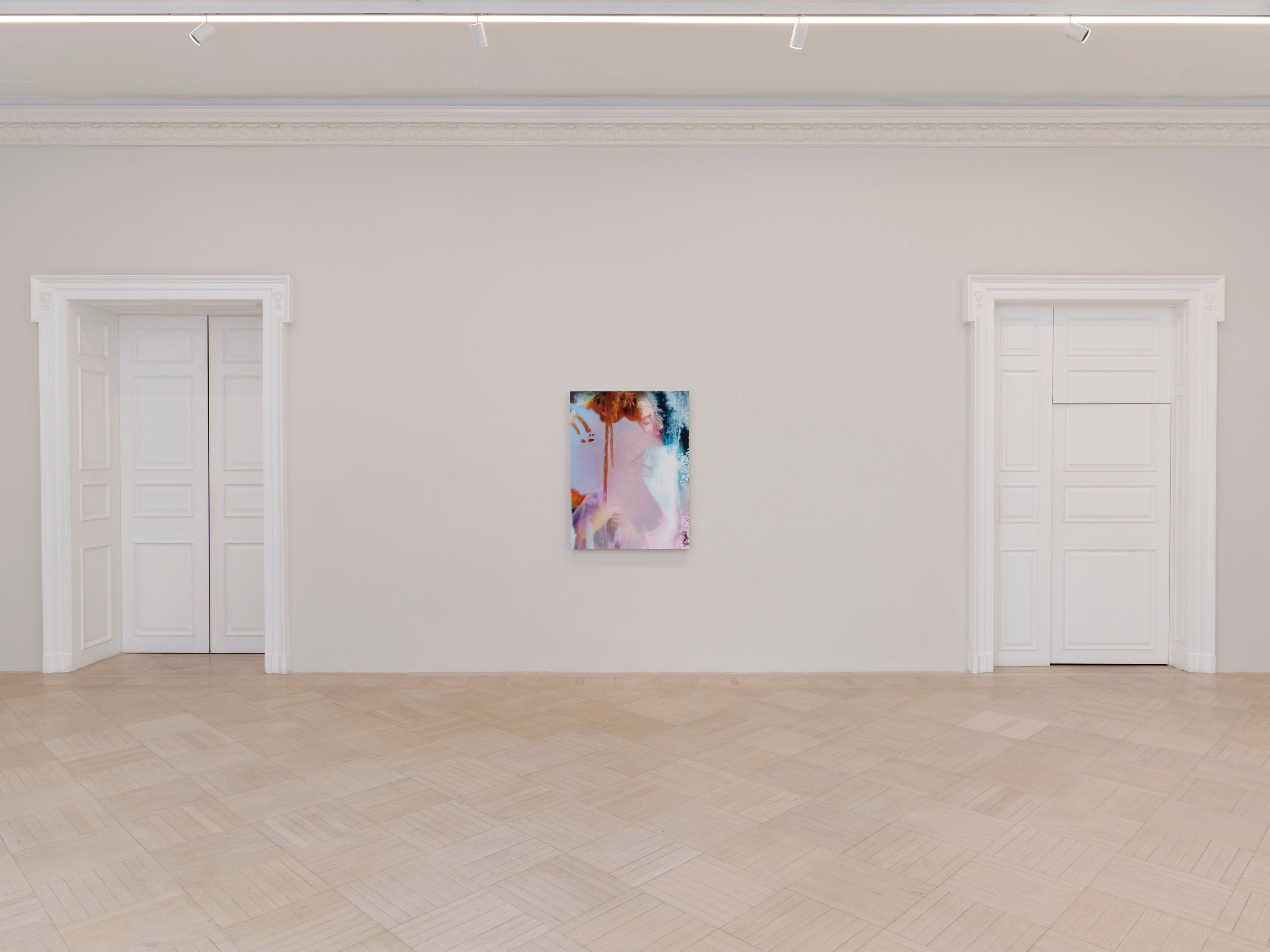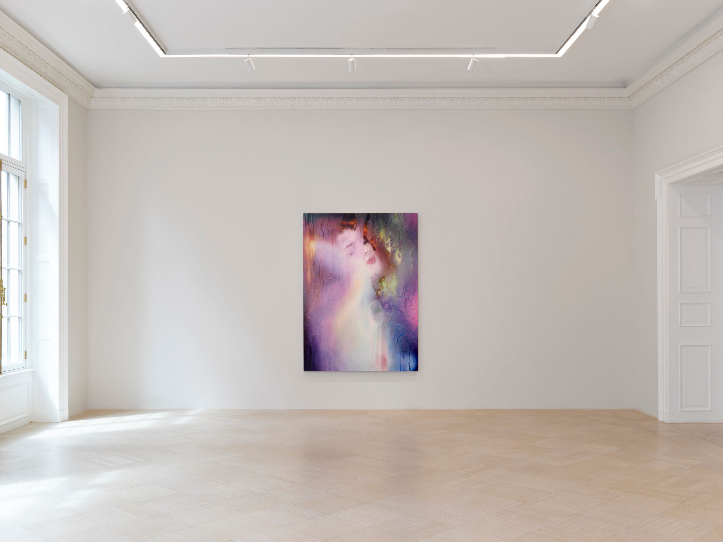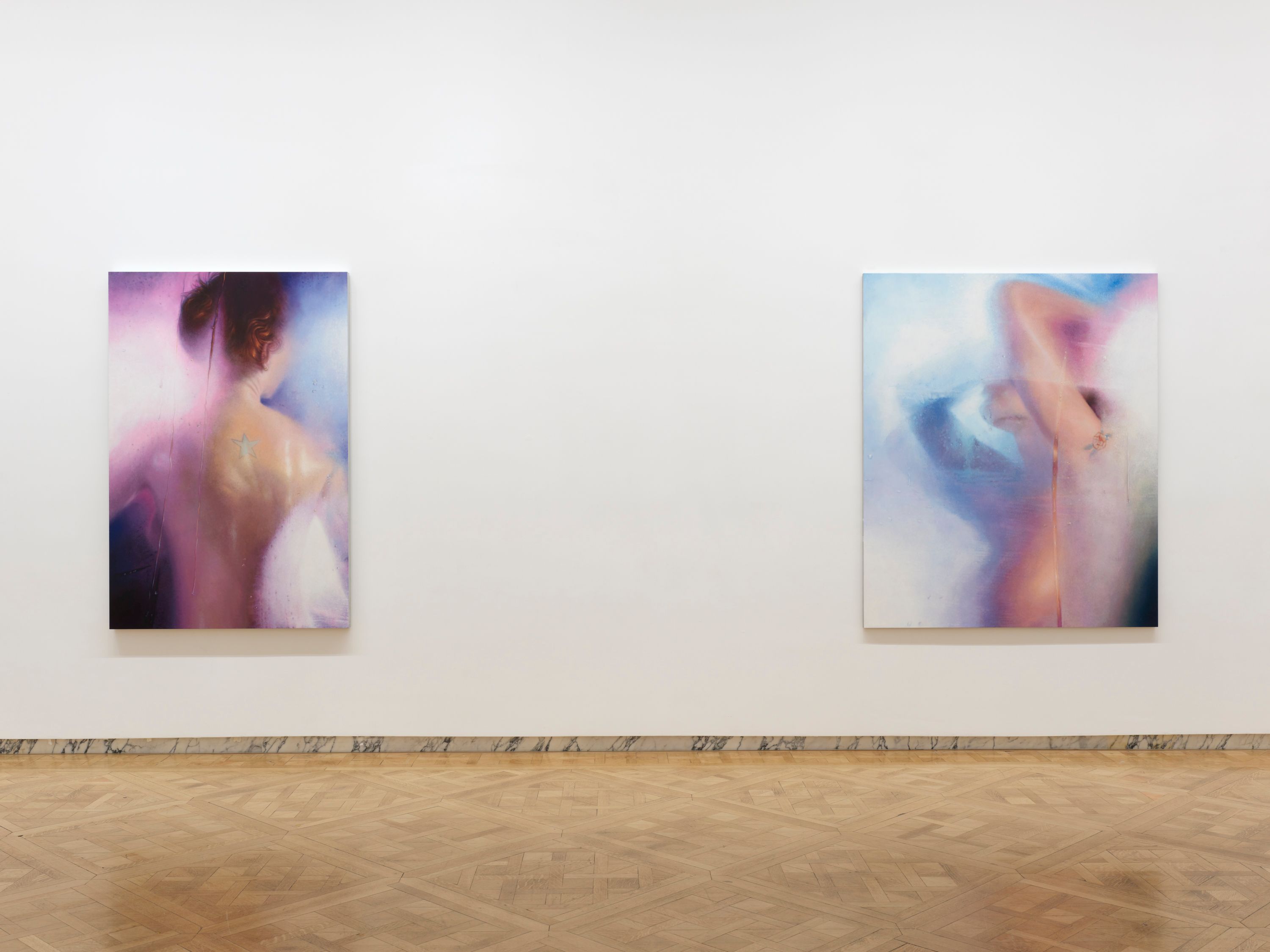 In addition to paintings and photographs, the exhibition features a series of new multimedia sculptures including Thirsty (Drinking Fountain) (2023). Custom-made from stainless steel, these drinking fountains house Minter’s recent video Thirsty (2022) in their cloudlike resin basins where closely cropped lips and tongues manipulate glitter and pearls along with spit, hair, and grime. This is Minter’s second sculpture to date following her 2017 custom-designed sculptural car made by retrofitting an AMC Pacer with surround-sound video of her now iconic Green Pink Caviar (2009). Like its predecessor, Thirsty (Drinking Fountain) marries functionality with design to create a sculpture that is operational, interactive, and otherworldly. Surrounding these sculptures will be works that elaborate on the themes suggested in Thirsty, including the monumental painting Word of Mouth (2020–22) and a new silkscreen print Hush (2023).
