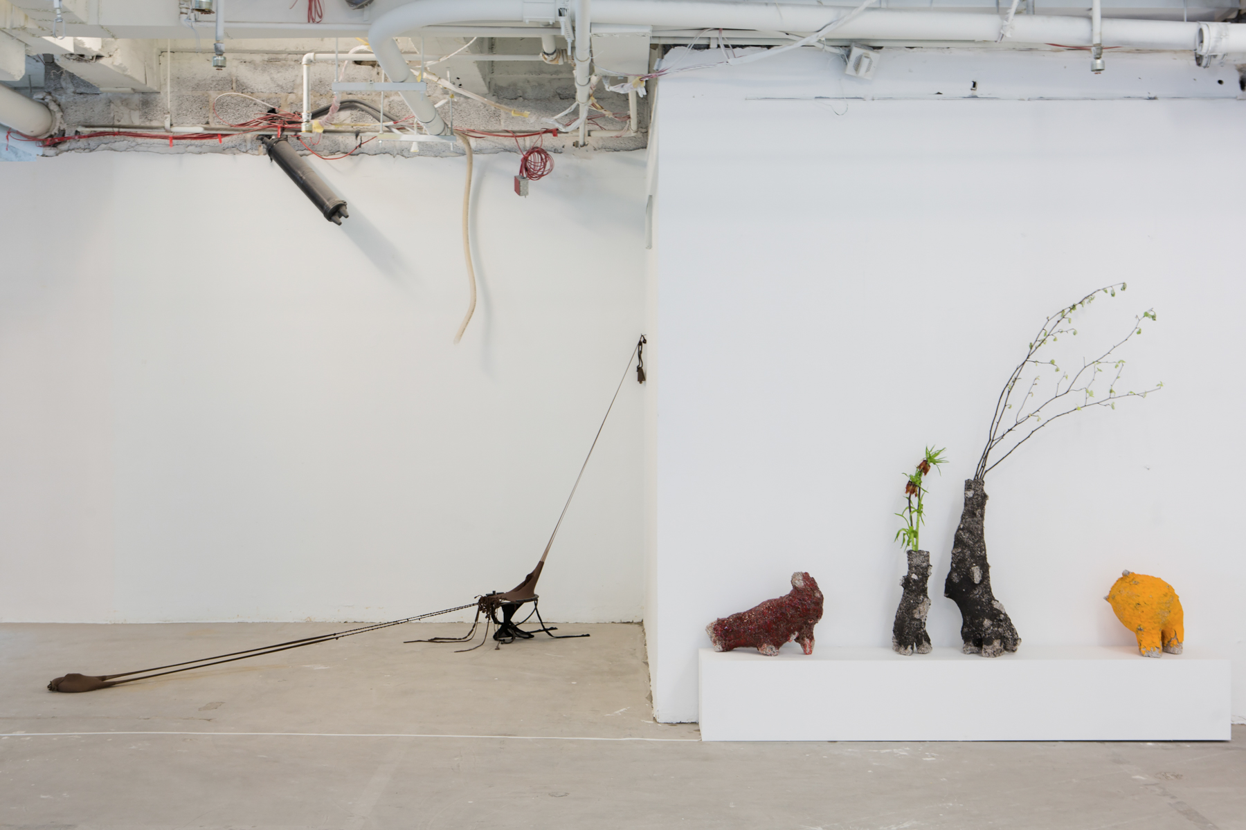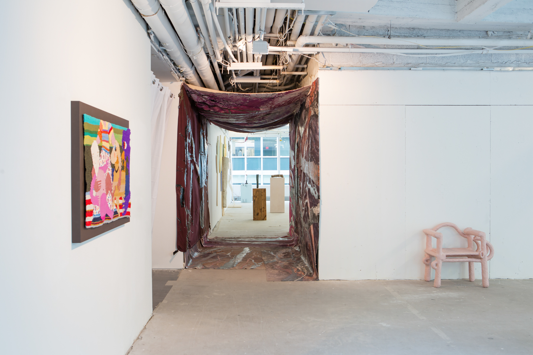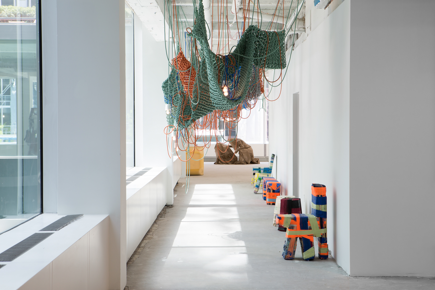 How, in this building, does one negotiate a commercial gallery exhibition about a return to the handmade, with feelings of anxiety, unease, instability, tenderness, rawness, and the restlessness of our time?