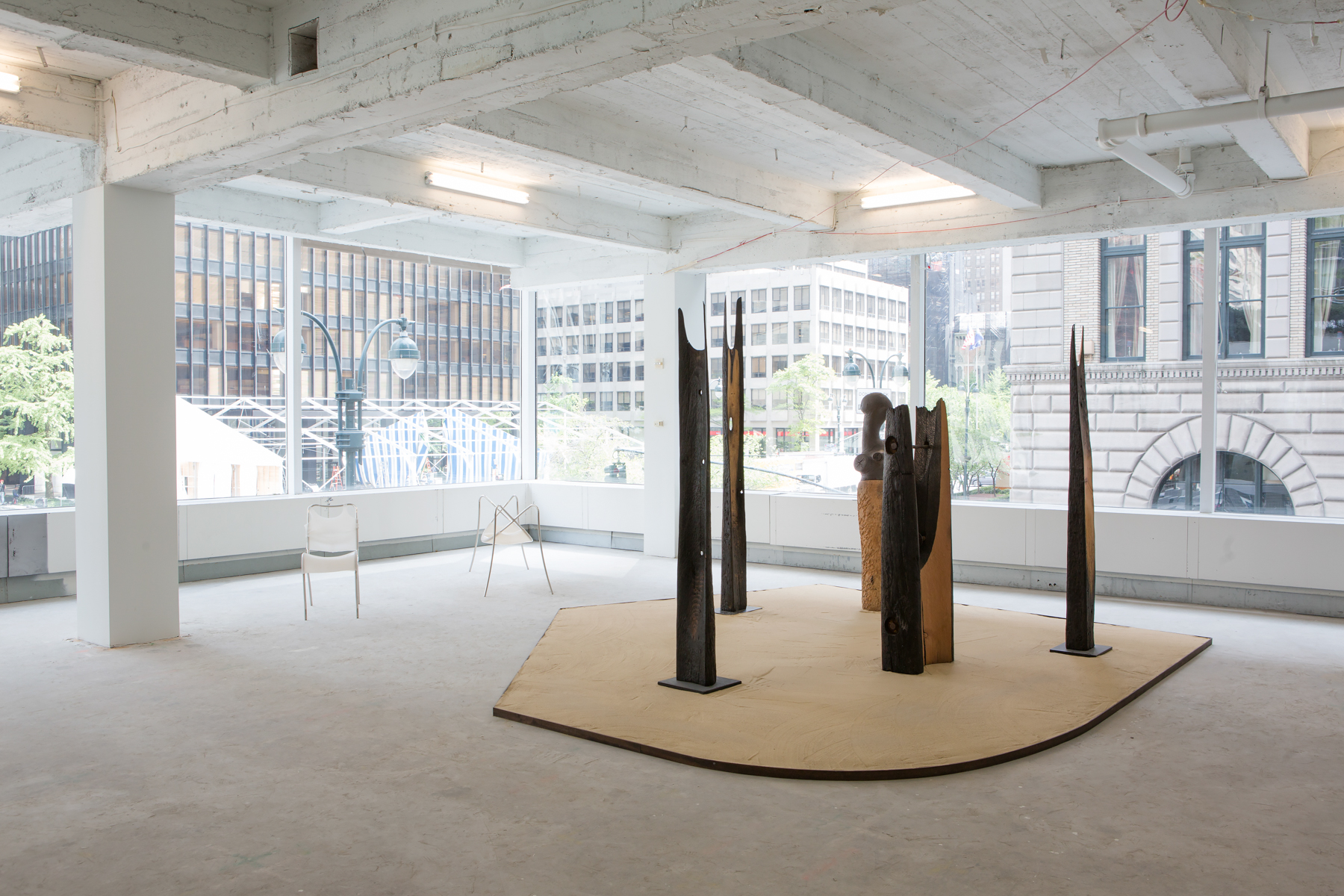 Maccarone, Salon 94 Design, and Salon 94 are pleased to announce their exhibition MIDTOWN, which will take place from May 3-June 9, 2017, at the historic Lever House, in Midtown Manhattan. The exhibition encompasses the building’s second floor office space, with its glass windows offering views inside and out. Defying the hierarchies between art and design, this show features sculpture, furniture, vessels, baskets, tapestries, and paintings, by more than 40 artists. Together these works co-mingle in the openness and emptiness of the space. MIDTOWN celebrates the dialogue and collaborative spirit of art-making practices, and posits collegial collaboration, as artists and galleries have enthusiastically allowed for the reimagining of the context of their works.