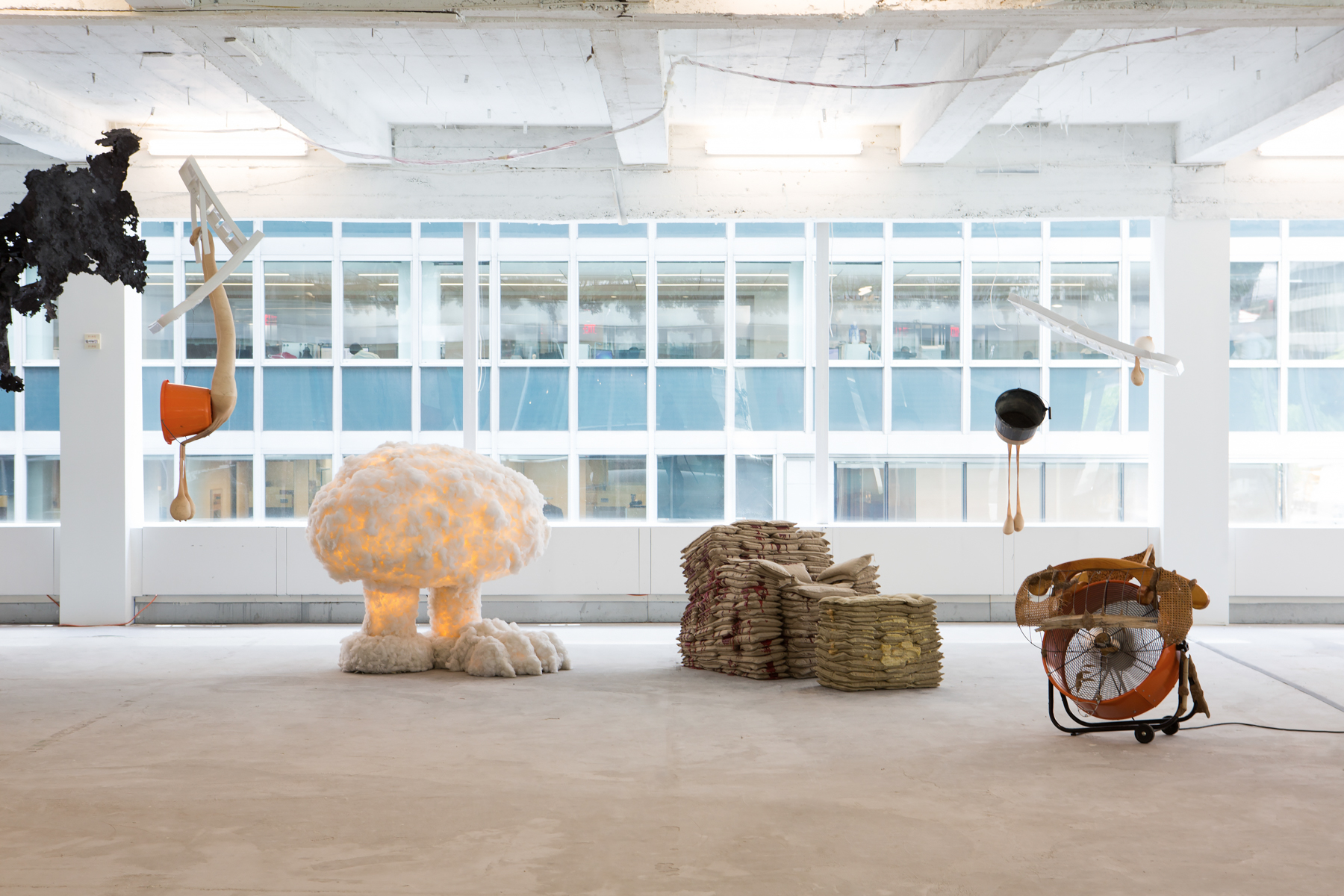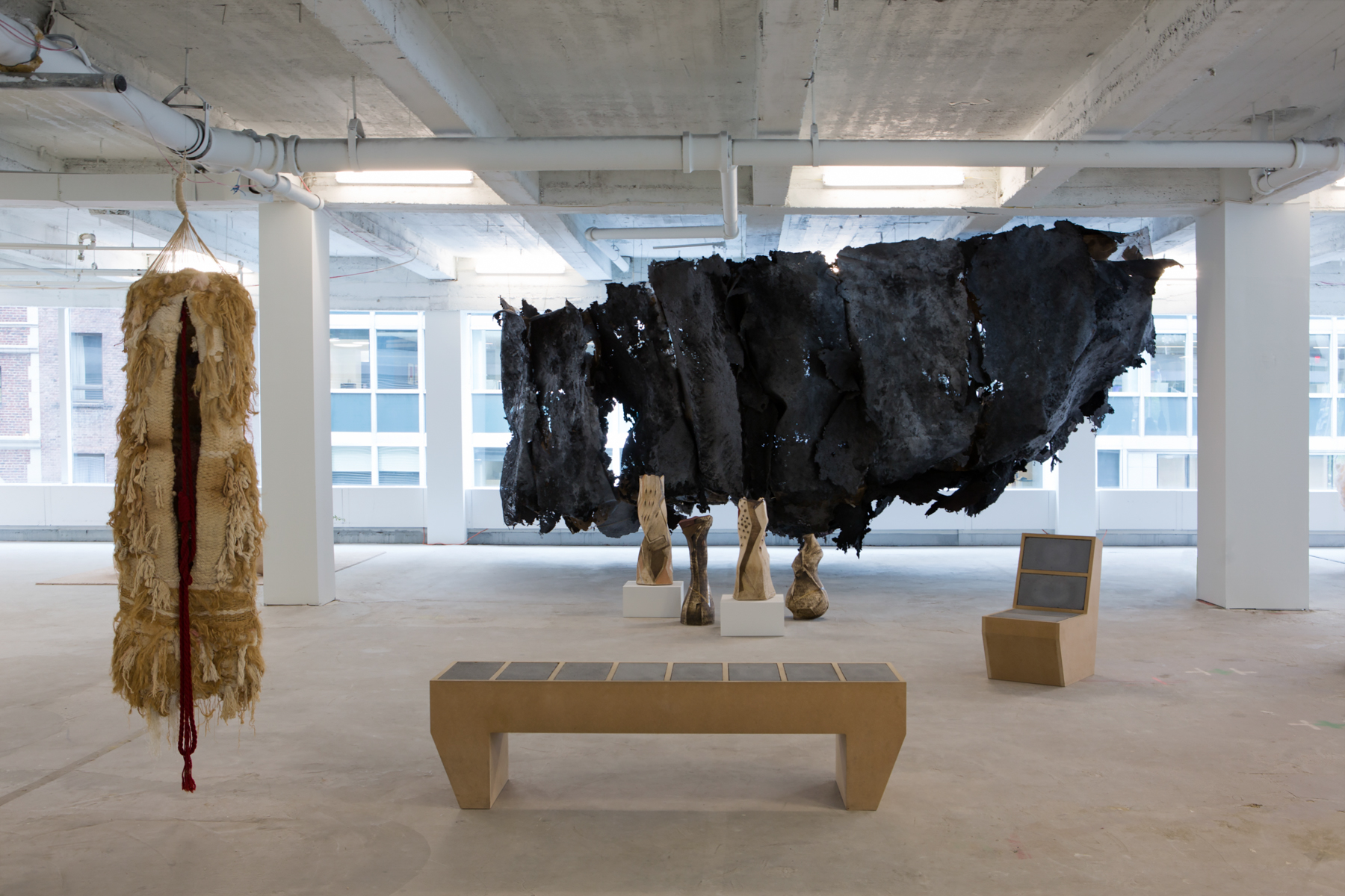 Galleries can react quickly—with a speed unmatched by institutional colleagues. The idea for this show was inspired only a few months ago by a conversation about art, design, and real estate. Thus the show is additive, formal, and intuitive. Traversing the space, from a beaded Nick Cave Soundsuit, to a silk and bronze Barbara Chase-Riboud abstracted homage portrait, to Alex Hubbard’s crumpled resin painting of cast garbage, and finally to Hannah Levy’s unusable latex lounge chair, with little shocks and pokes, this exhibition is an attempt to bring together stimulating objects made by artists on the frontline of our creative culture.