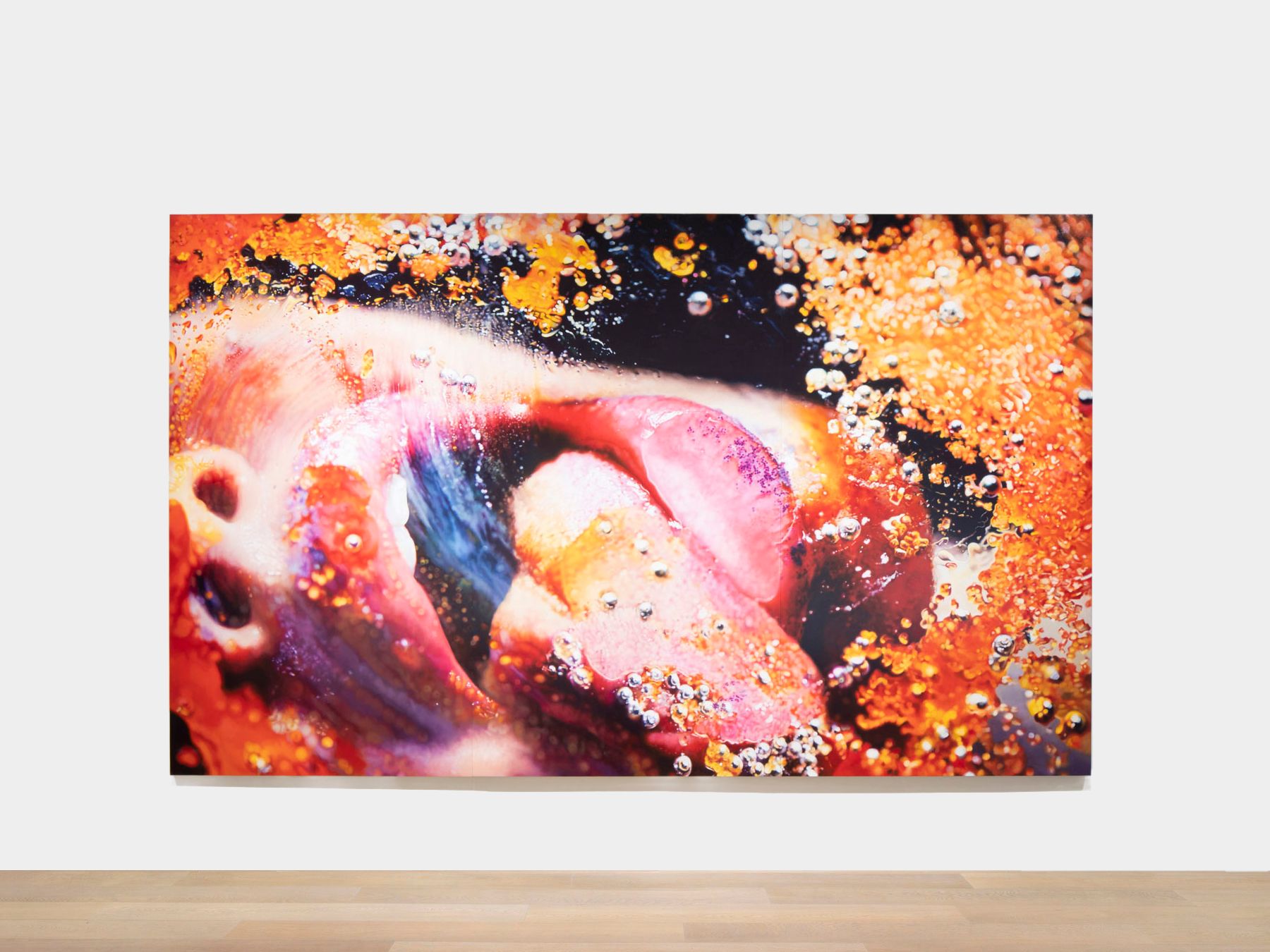 The exhibition illuminates Minter’s foray into the techniques and visual language of mass media in works from her 100 Food Porn series, in which she replicates the erotic handlings of produce in food commercials. Minter’s esteemed films, such as Green Pink Caviar and Smash, are also on view. In these works, the artist mimics the saturated tones and slow-motion pace of fashion advertising, while simultaneously subverting the illusion of flawless beauty by refusing to mask the realities of the human body.
