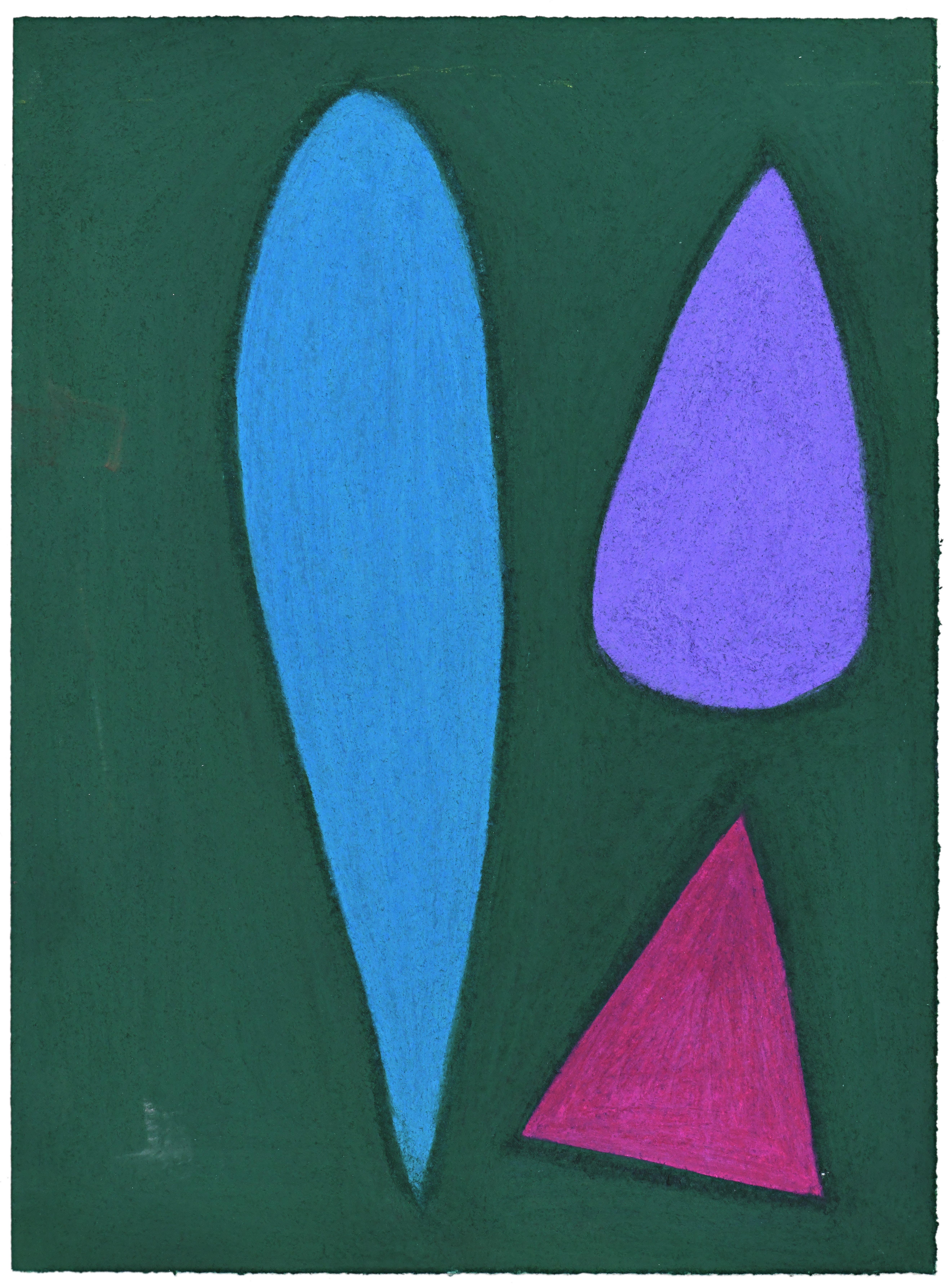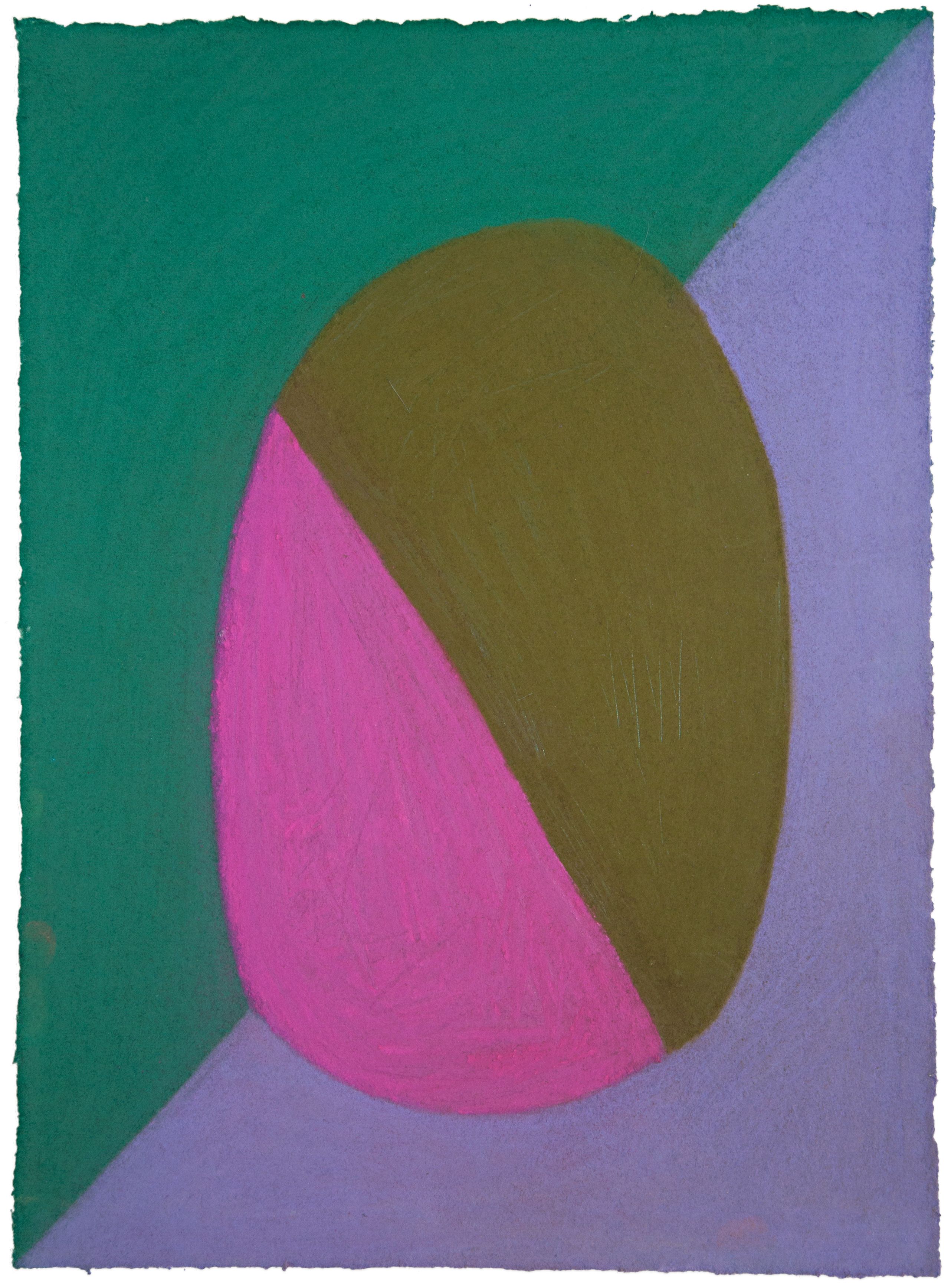 Since 1989, the self-taught artist Julian Martin has unerringly honed an idiosyncratic approach to abstraction through pastel drawings of totemic figures, jewel-like prisms and subtle variations on self-portraiture, all created through a highly selective palette. Martin’s two-dimensional compositions are cleanly edged and boast an unusually pure matt surface, as well as feature a precise handling of line, form and color which combine to produce his trademark style.