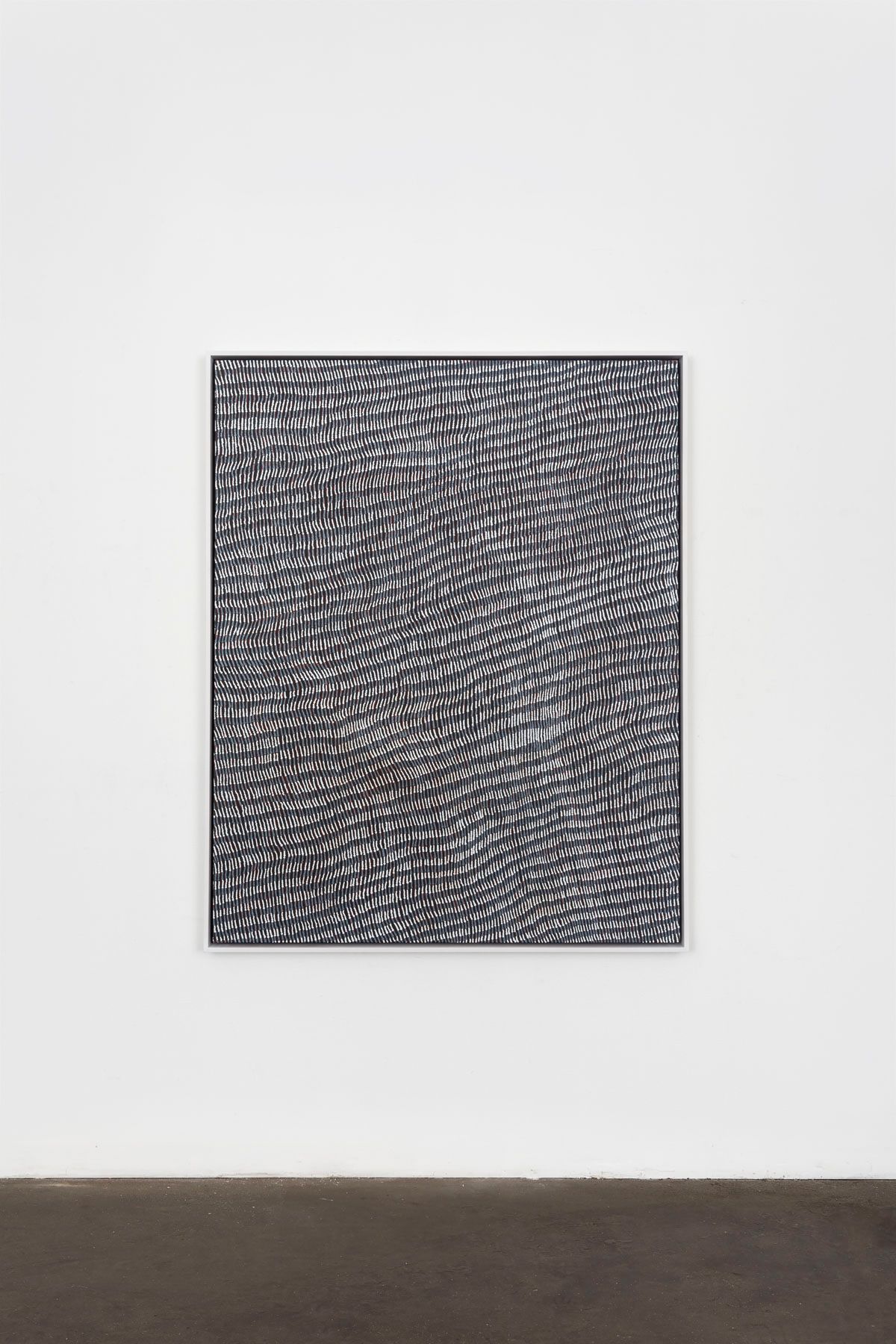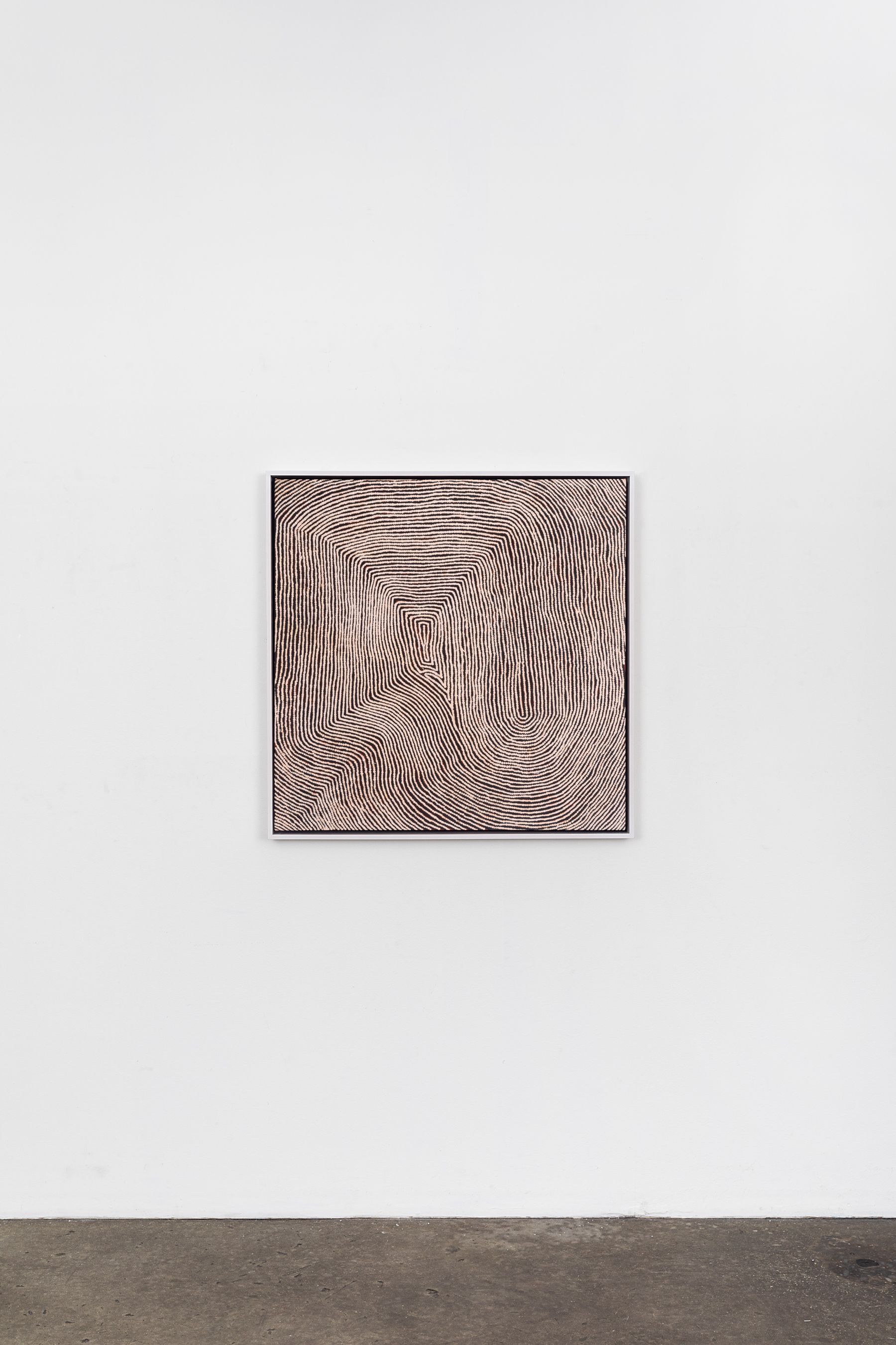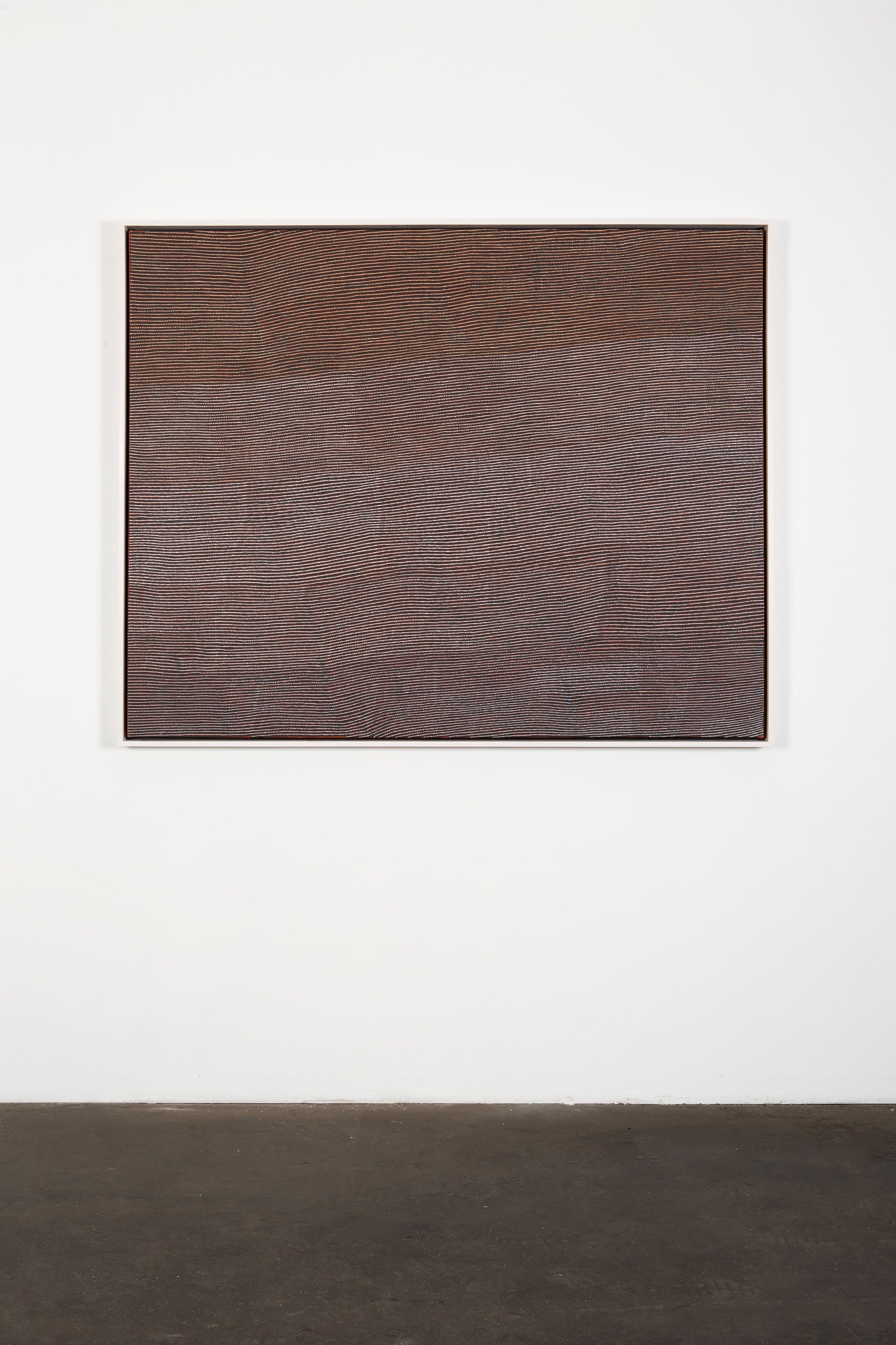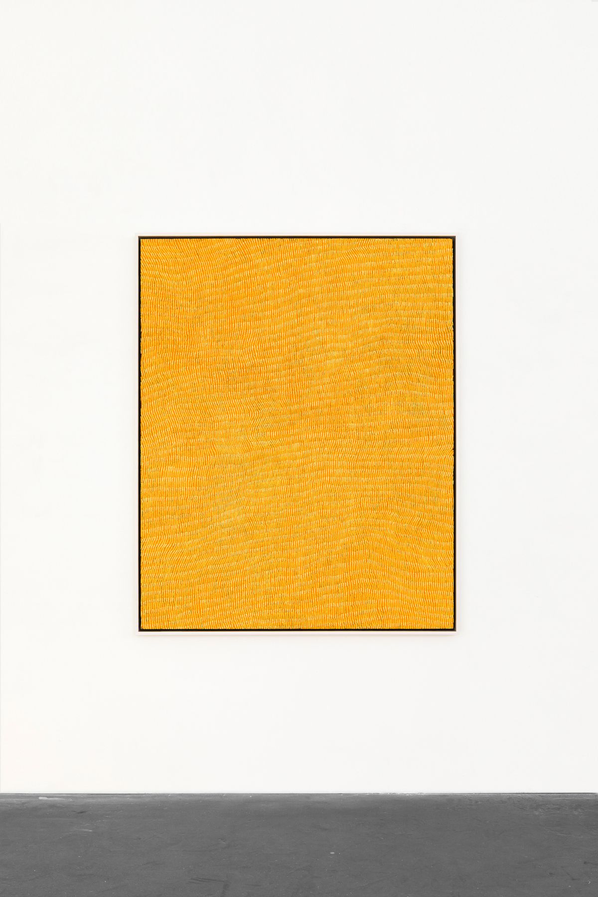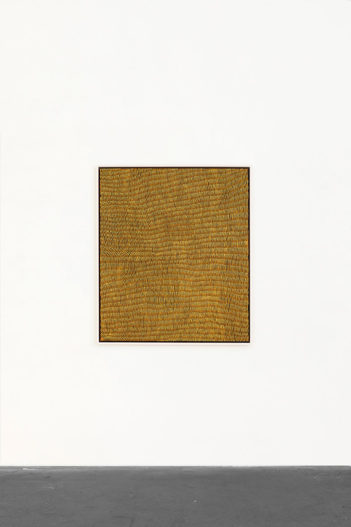In the heart of the Western desert in Kiwirrkurra, Australia, siblings Yukultji Napangati and Warlimpirrnga Tjapaltjarri depict the land and sacred sites that their ancestors have traversed for millennia. Yukultji Napangati paints the land in association with her mother’s and grandmother’s Dreamings–oral histories, teachings, and philosophies passed on from generation to generation. Her pieces transpose nature into sinuous, undulating lines, sometimes interrupted by amoeba-like forms which alter the rhythmic totality of the composition.