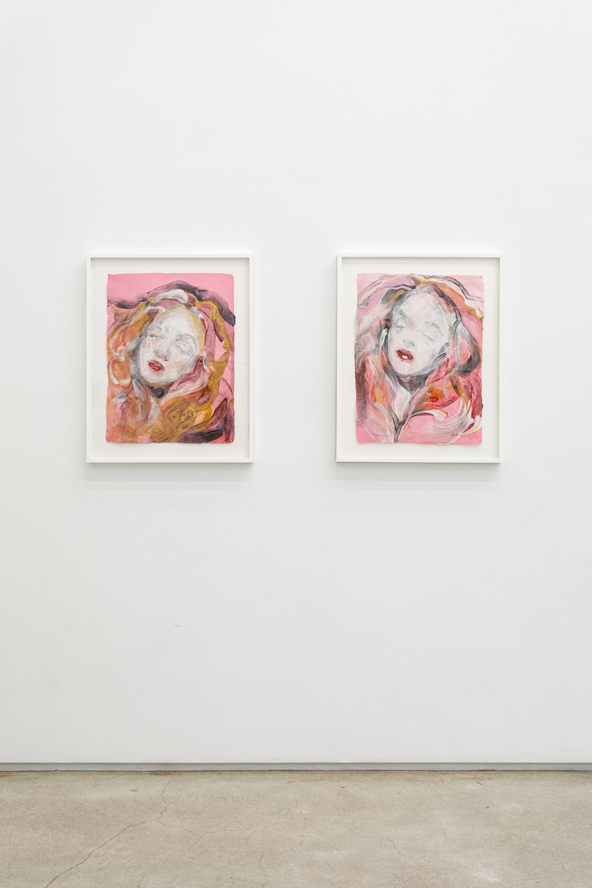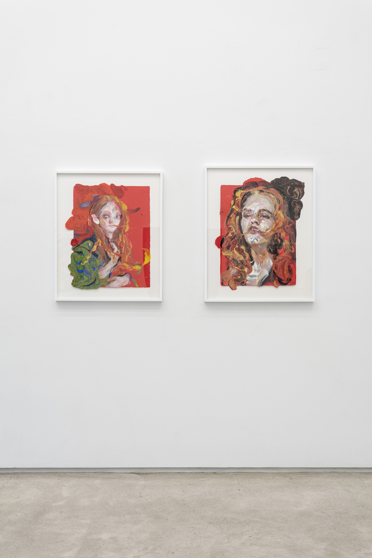 For Natalie Frank, drawing and painting are both intimate and expansive. She began her professional career as a figurative painter: large-scale works on canvas portrayed domestic scenes and power dynamics, particularly within sexuality, gender identity, history and religion. She continues to hone a unique practice focusing on feminist tales and fables using vibrantly charged figuration to reveal powerful voices of resistance in iconic literary works. In paper pulp painting, Frank fuses her layered approach to drawing and its intense color with her paintings’ gestural and rendered hand. By pouring, moving, dividing, or combining viscous hand-pigmented paper pulp with brushes, spoons, and sticks, and using it as paint, Frank sculpts intimate portraits of anxious females, some eating their hair, others closing their eyes in anguish or peace. Frank’s approach is painterly, working against the natural tendency of paper pulp to settle, she agitates these surfaces with bravura brushwork. These paper pulp paintings were made at Dieu Donné through their illustrious Sponsorship Program.
