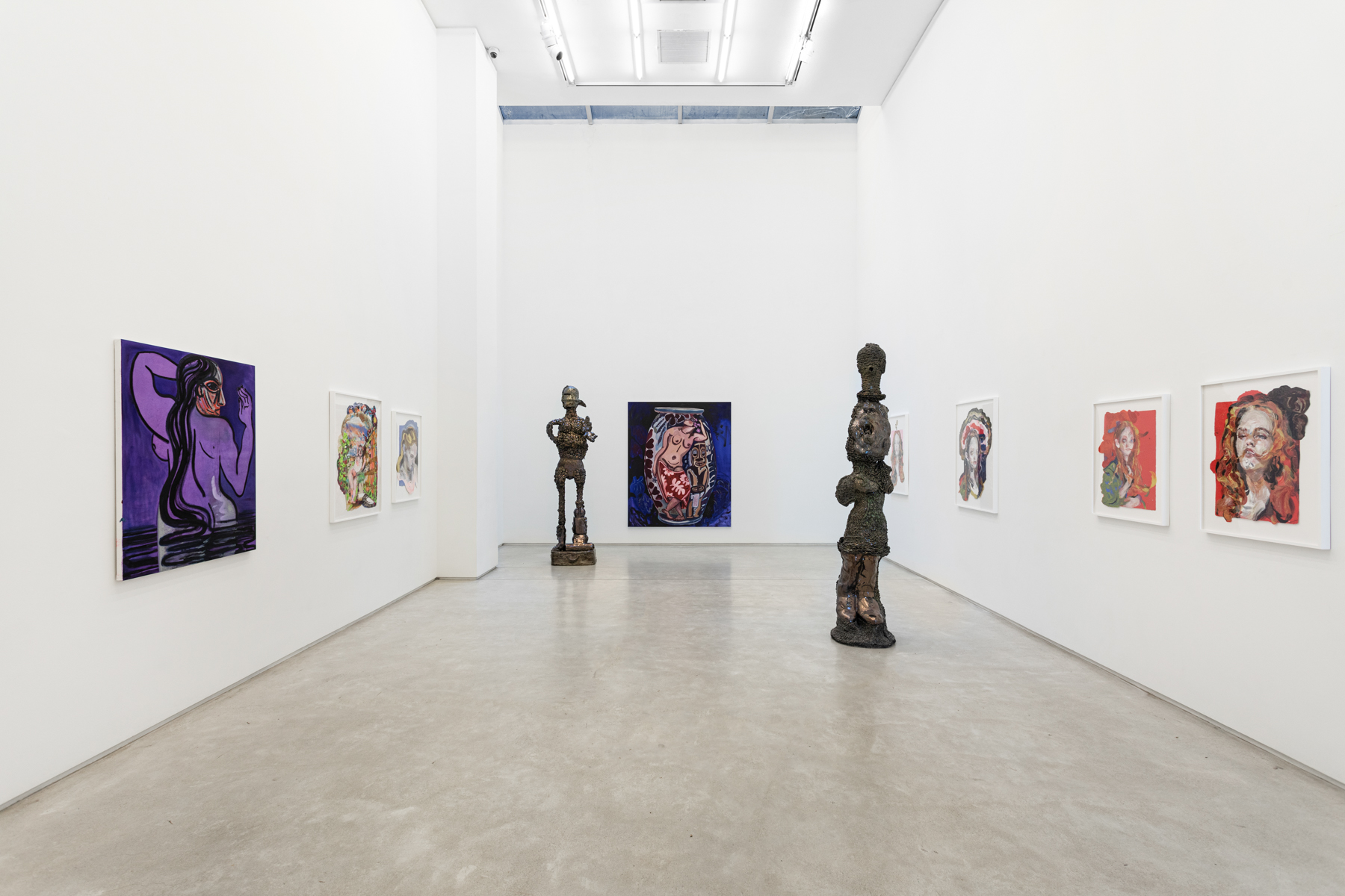Pushing the boundaries of painting and sculpture, these three artists are revisionists who turn up the volume. Their bold, utterly singular styles reimagine art history, fairy tales, folklore and popular culture. Shared between them is a common subject matter: the female form, rendered in twisting and torquing dynamism, vivid colors and oozing with attitude. In all three bodies of work, raw brushstrokes and meticulous handwork convey a world of women who oscillate between anxiety and autonomy, aggression and vulnerability, kitsch and class.