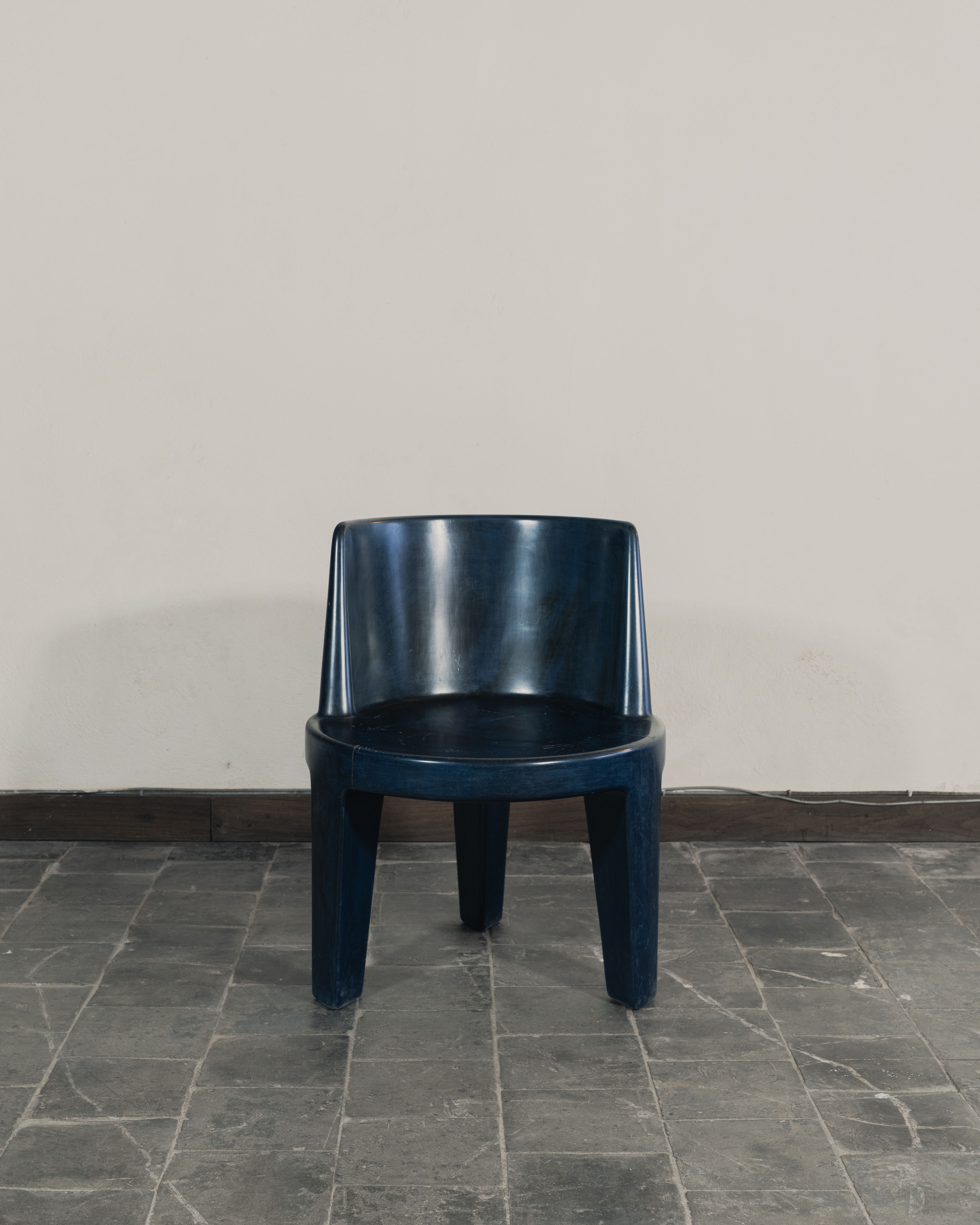 Like Asakura, architect and designer Bijoy Jain transforms traditions with innovation. Jain works with elemental, raw materials—bamboo, stone, clay, indigo, urushi, and silk—that carry long histories and come directly from the natural environment. Organic materials abound as Jain presents a hand-carved and indigo-dyed wooden chair, a bamboo bench finished with urushi lacquer and bound with muga silk, and a trestle table composed of marble, lime, rice husk, marble dust, and lapis lazuli.