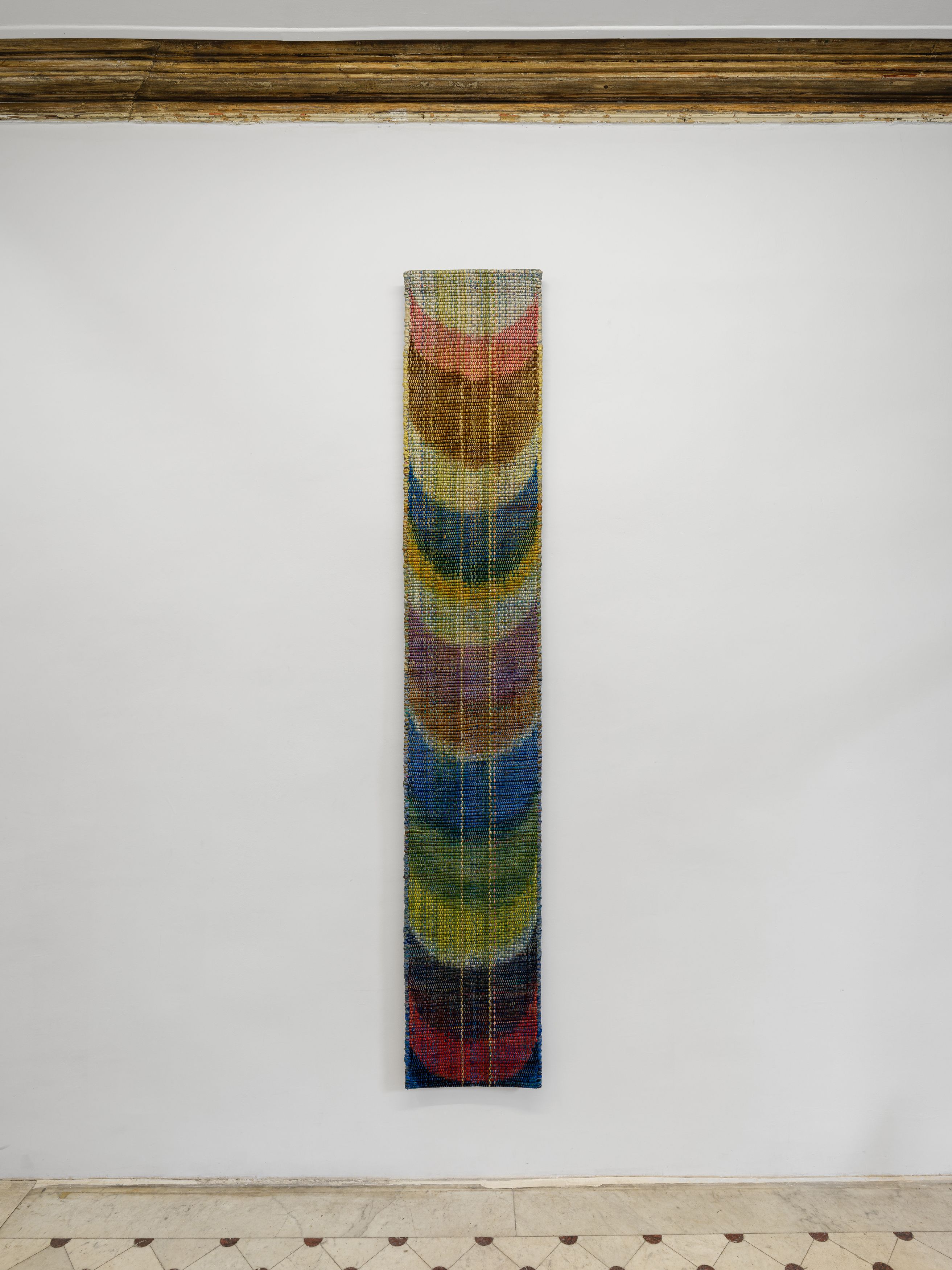 Mitsuko Asakura is a contemporary Japanese textile artist renowned for her shimmering ombré silk tapestries that evoke rhythm and movement, and the Japanese landscape, moon and sky. Rooted in the kimono traditions of Kyoto, her work fuses meticulous craftsmanship with the material presence of color—indigo, among other natural and modern dyes—linking her contemporary practice to a centuries-old craft. We will feature her coveted Waltz series, started in the 1970’s— sweeping colorful horizontal forms of intricate weavings paused with dipping unbounded threads, she miraculously adds motion with intervals of rest, within a conventionally static medium.