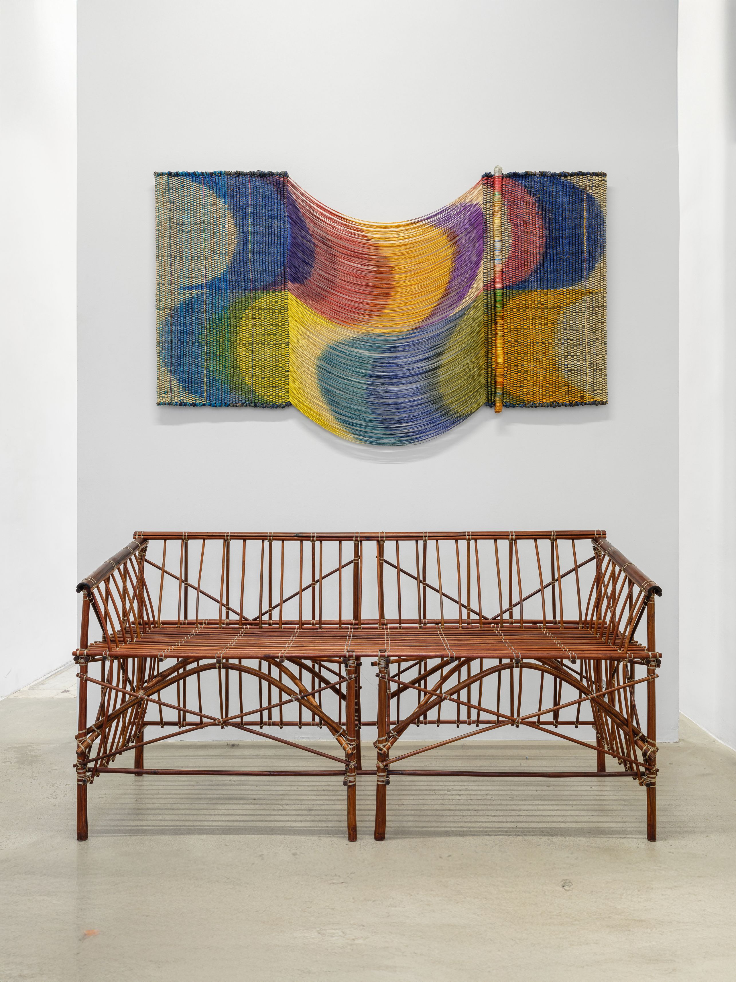 Together, Mitsuko Asakura’s refined weavings and Bijoy Jain’s meticulously-hand built furniture create a dialogue in which materials are vessels of atmosphere and mark time. Their works move fluidly between utility and contemplation, drawing the viewer into spaces where color and texture resonate like breath. Together, the exhibition highlights inherited techniques transformed into contemporary forms— opening onto new ways of sensing space, time, and presence.