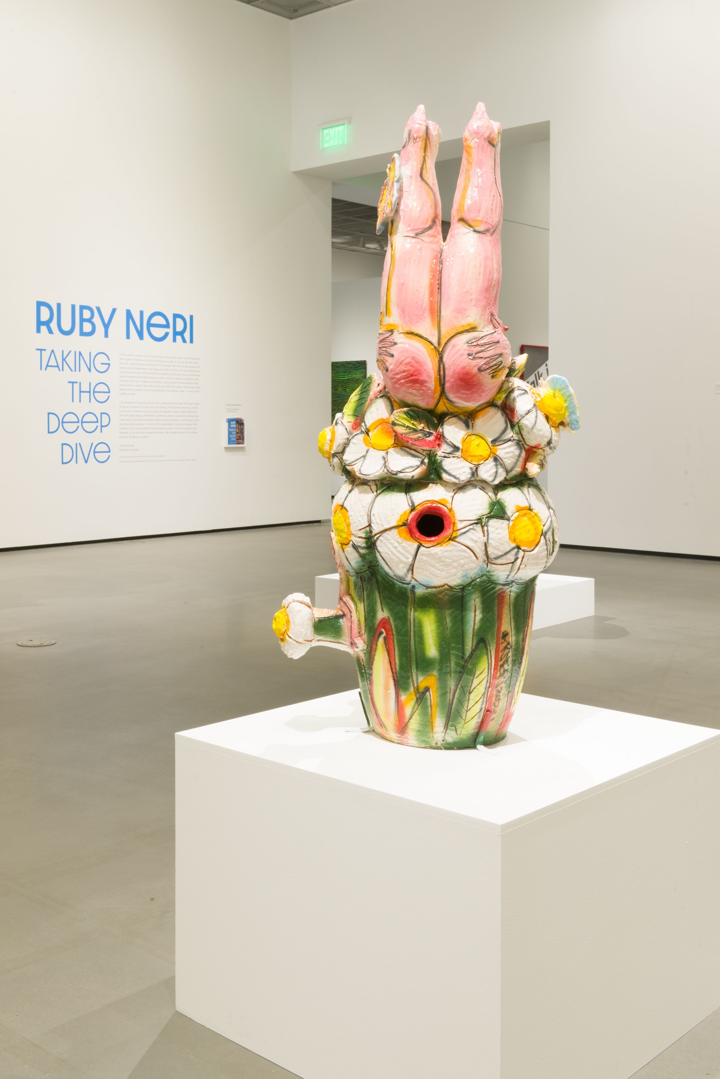 Ruby Neri: Taking the Deep Dive is the first solo museum exhibition of the artist’s work. An established voice in contemporary ceramics, Neri sculpts brightly colored personal motifs and uninhibited female nudes — playing with familiar forms and monumental scale to challenge our expectations.